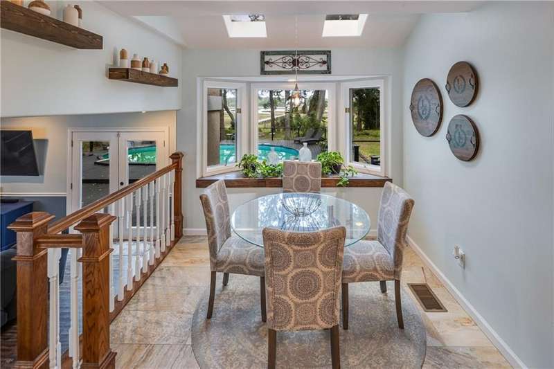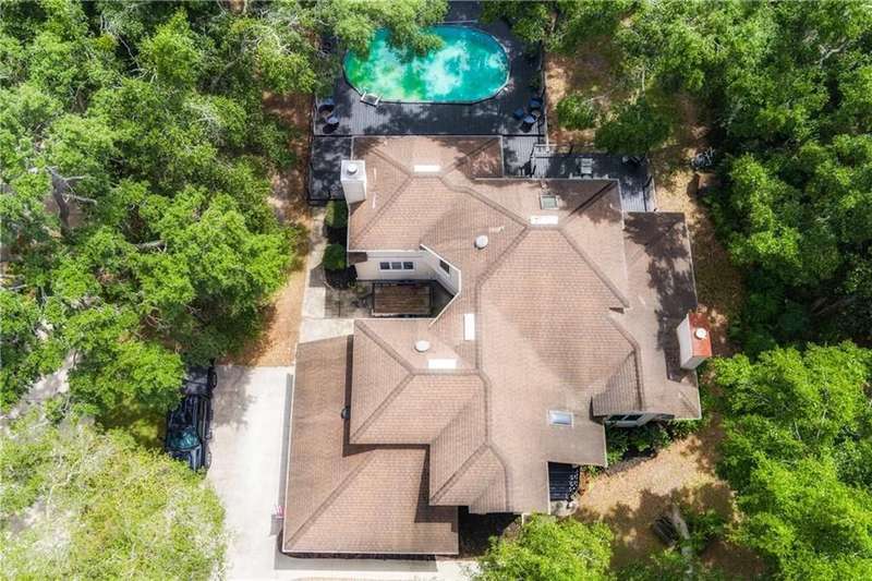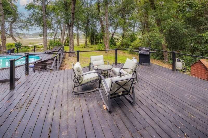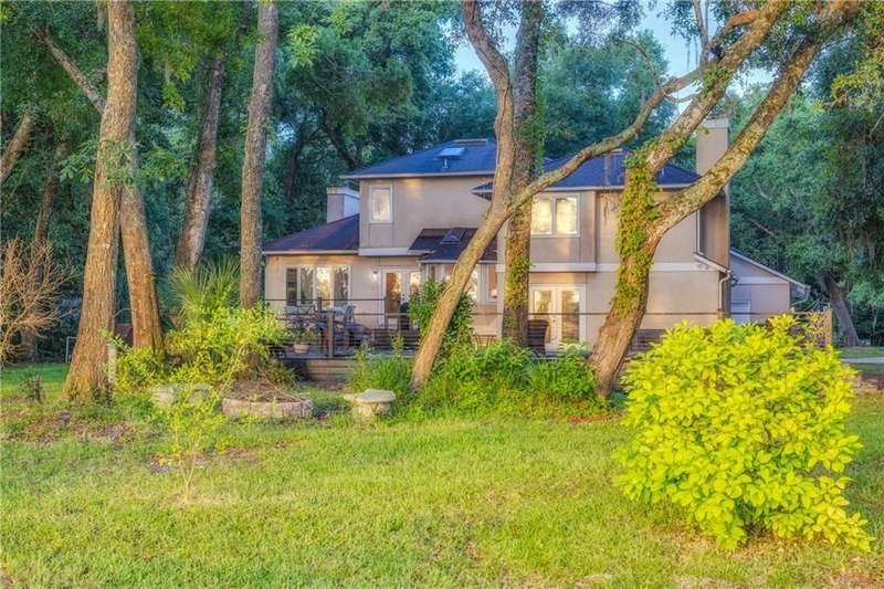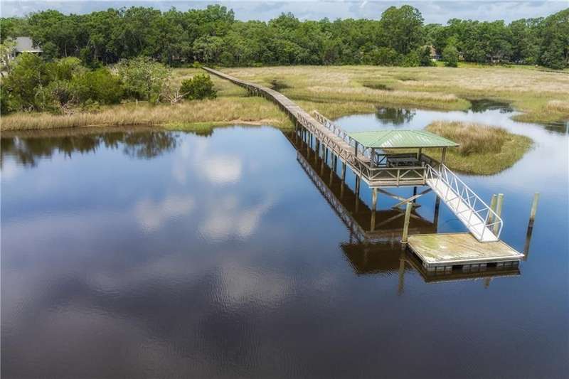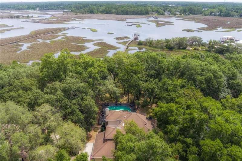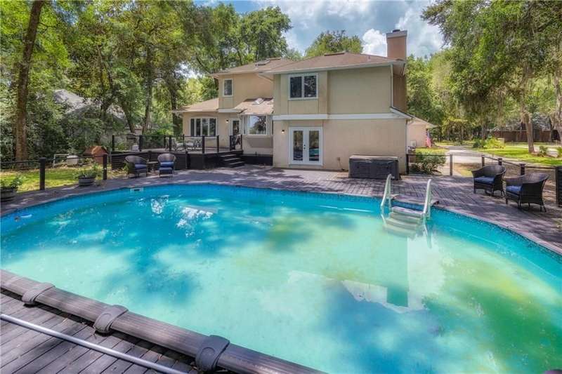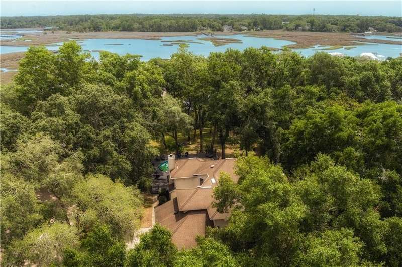 Exquisite Deepwater Retreat on the Saint Marys River! Nestled along the serene Saint Marys River, this exquisite deepwater property offers a rare blend of luxury and tranquility. Situated on a sprawling 1.33-acre lot adorned with majestic live oak trees draped in Spanish moss, this 4-bedroom, 3-bathroom home boasts a private covered and floating dock, providing direct access to the river. Outdoor Features: The backyard is a private oasis, featuring a sunken pool set within an expansive composite deck, complete with a hot tub for ultimate relaxation. Additional decking off the kitchen invites outdoor culinary adventures, while a charming veranda off the downstairs den and the main pool deck enhance the outdoor living experience. Construction and Amenities: Constructed with durable tabby and topped with a composition roof, this residence includes a generous 21/2 car garage. A water filtration system ensures clean water, and a sprinkler system with an irrigation well maintains the lush landscape. Interior Highlights: The massive upstairs master suite offers breathtaking river views and a spa-like bathroom with dual vanities, a wet room featuring a soaking tub, and a tiled stand-up shower illuminated by skylights. His and hers closets, along with two linen closets, provide ample storage. All bathrooms are elegantly appointed with solid surface vanities and separate tiled showers, one with a tiled tub/shower. The indoor laundry room includes a deep sink for added convenience. Two fireplaces add warmth and charm, while beamed and vaulted ceilings create a sense of grandeur. Double wooden front doors open to a stunning 2-story foyer, setting the tone for the homes elegance. A separate dining room comfortably seats 12, perfect for entertaining. Large format windows throughout the home flood the interiors with natural light and offer picturesque views. Kitchen and Breakfast Room: The gourmet kitchen features an island, beautiful cabinetry, granite countertops, a stylish backsplash, a double wall and convection oven, an oversized refrigerator, and stainless steel appliances. The breakfast room, with its bay window and skylights, overlooks the pool, creating a bright and inviting space. Location and Lifestyle: Conveniently located just 10 minutes from Kings Bay Submarine Base, 30 minutes to Jacksonville International Airport, and 35 minutes to Brunswick, GA, this home offers both seclusion and accessibility. A short 15-minute boat ride takes you to downtown Saint Marys, with another 15 minutes to Cumberland Isl