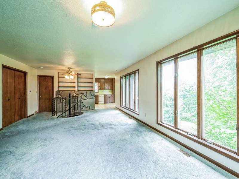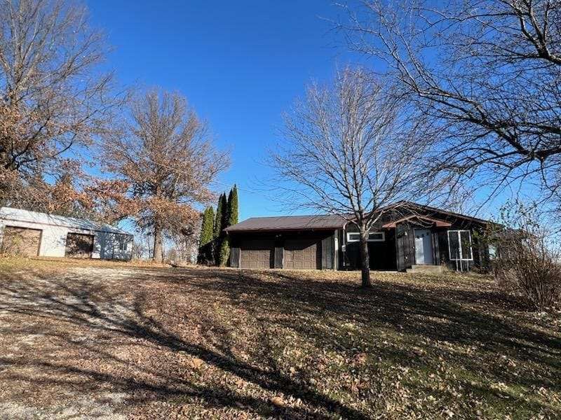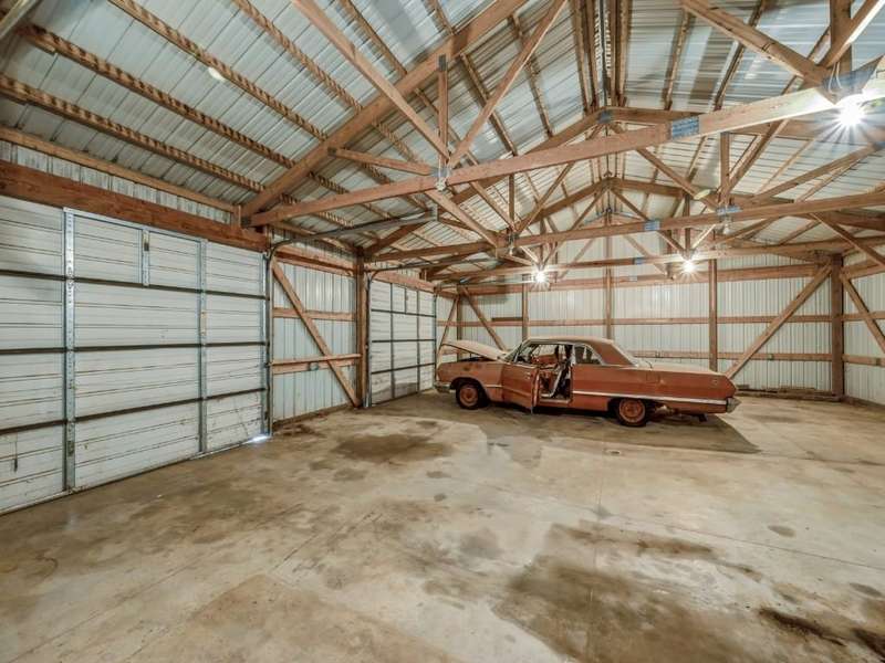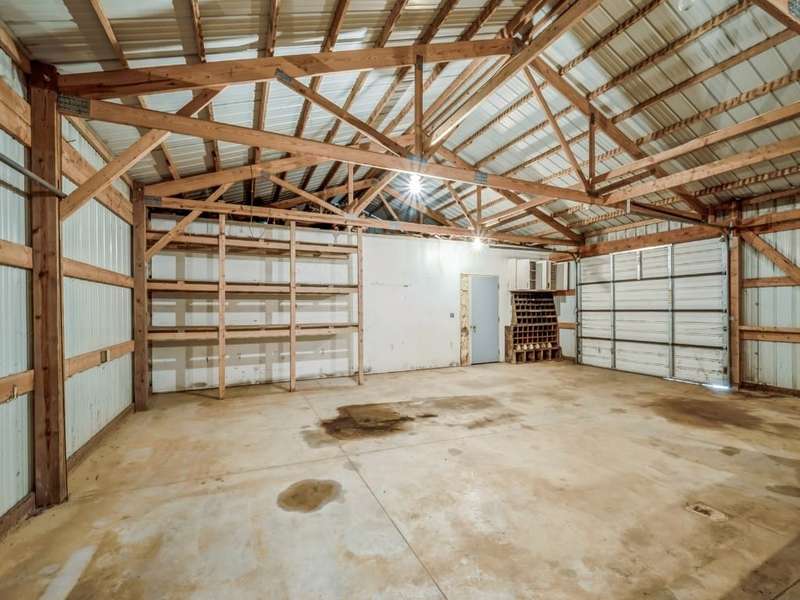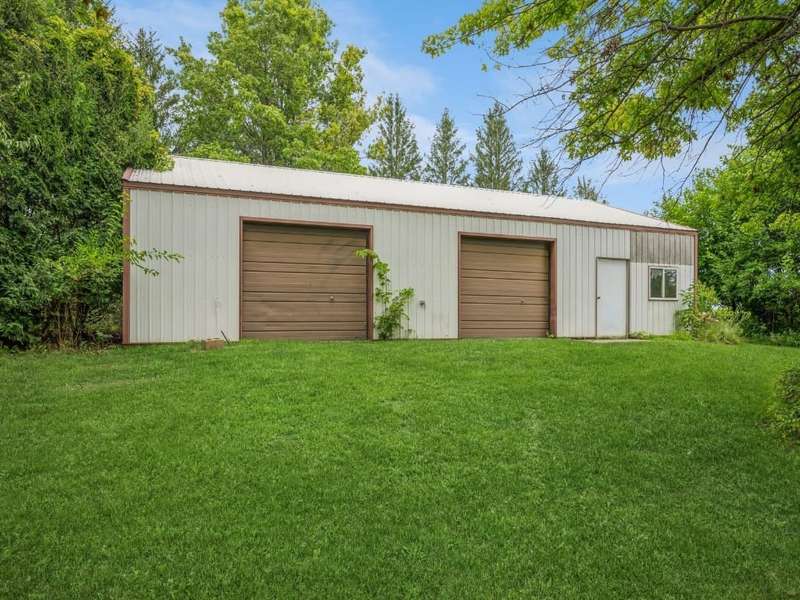 Hard surface acreage on treed lot. 54x 32 shed for all your country toys and storage. 2 car attached garage to ranch home boasting of the 4 season room to enjoy all year long. 1st floor laundry. Metal roof, spacious kitchen with numerous cabinets, build in desk and numerous built in shelves throughout home. Walkout lower level with family room and fireplace and bedroom. Private well water, central air and lovely yard.