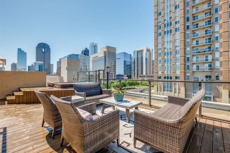Experience luxury living in this immaculate 2-bedroom, 3.5-bath condo spanning 2,150 square feet of beautifully designed space offering 12 ceilings and dramatic details and lighting found only in the finest homes. Perched on the top floor of the iconic Hotel ZaZa, this residence offers breathtaking, unobstructed views of downtown Dallas and the Crescent from your own private cabana and the brand-new rooftop entertainment deck. Enjoy direct access to the hotels world-class amenities, including the spa, fine dining, and vibrant nightlife, perfect for entertaining out-of-town guests or indulging in a quick getaway without ever leaving home. Located with quick access to I-75, the Tollway, and I-35, this property is just steps from premier restaurants, museums, and boutiques. Its also a short drive to Highland Park and Preston Hollow. Live in one of Dallas' most coveted neighborhoods with unmatched style, comfort, and convenience.