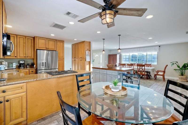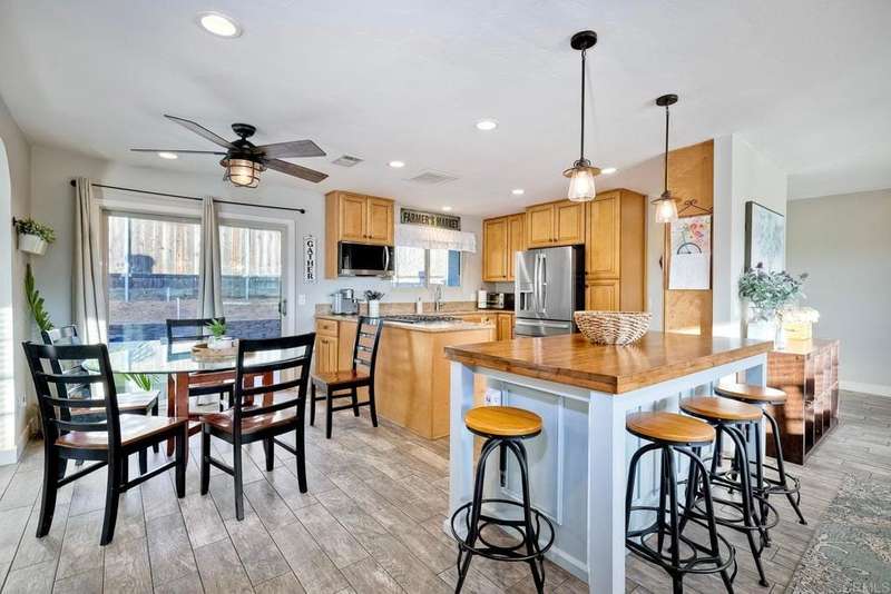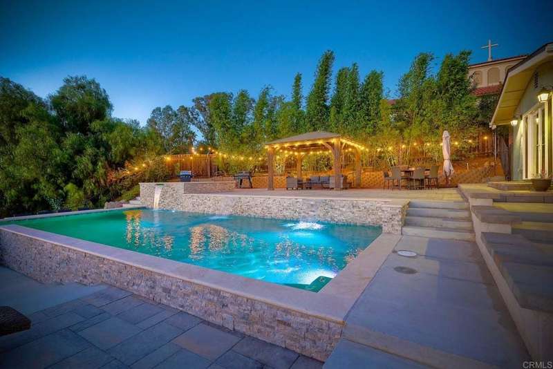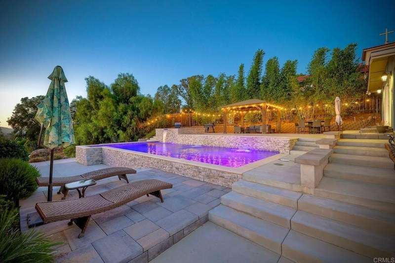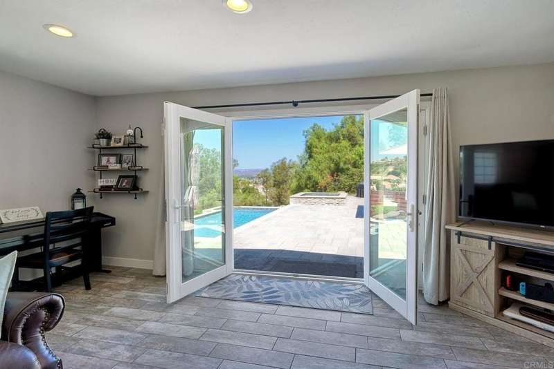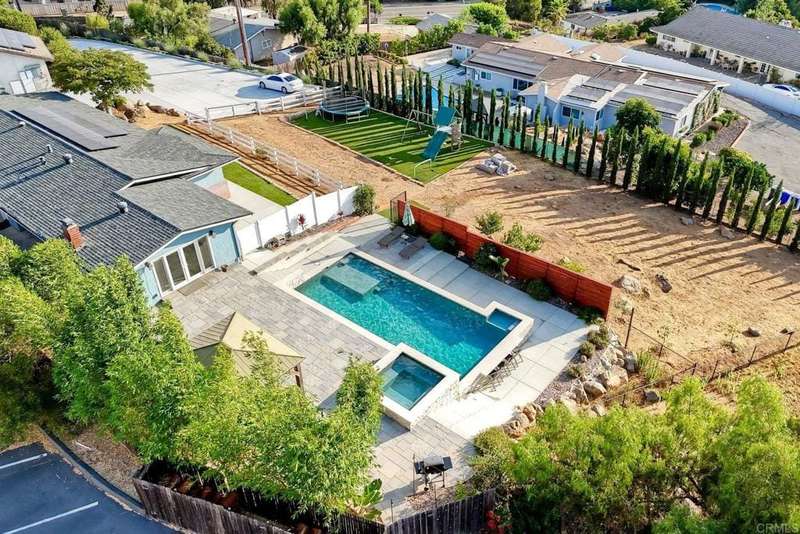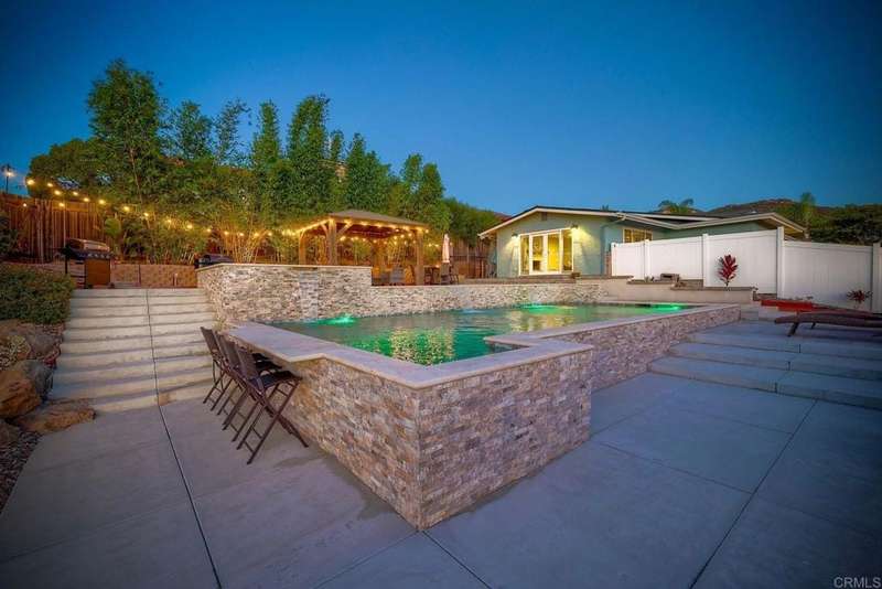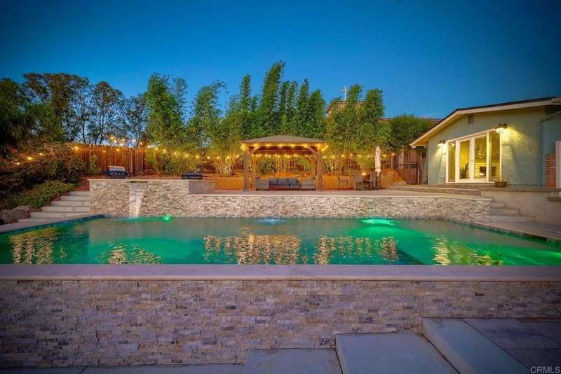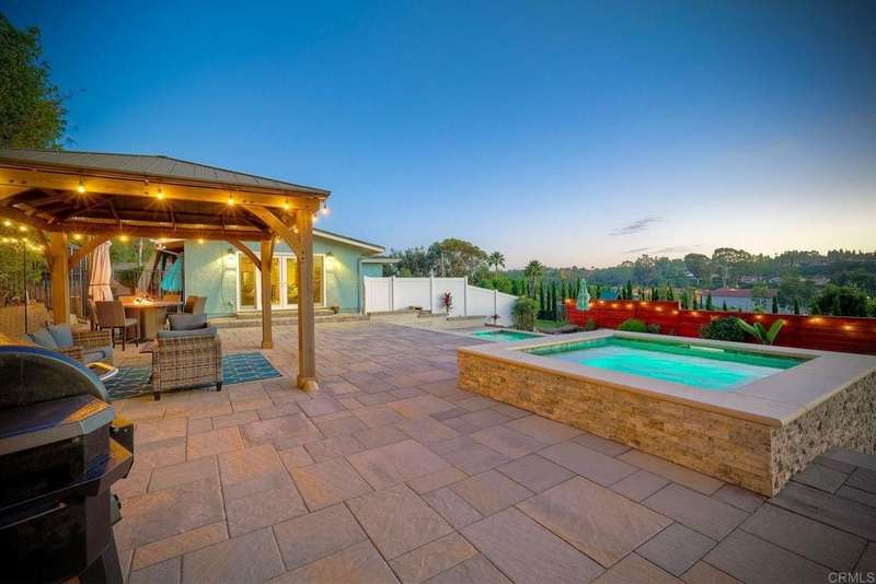 Ranch style spacious 4-bed, 2-bath home offers light-filled living spaces, upgraded kitchen and bathrooms, and a primary suite with en-suite bath. The backyard is an entertainers dream, featuring a sparkling pool and spa with smart controls, expansive patios, a play lawn, and plenty of room for gatherings. With owned solar, energy-efficient systems, and a location in the award-winning Poway Unified School District, this property is move-in ready and designed for modern living.