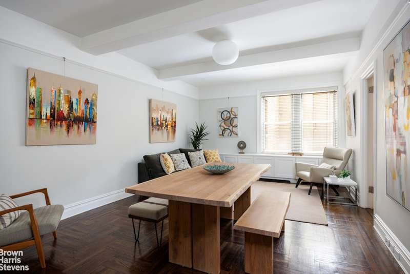 Step into a gracious entry foyer with a large coat closet and immediately you are impressed by charming pre-war details including high, beamed ceilings and beautiful hardwood floors. The foyer leads to the spacious and wide living room, which gets wonderful light from the three windows facing over double wide 96th Street. The massive dining room is an entertainer's dream, large enough to host huge dinners or use the space as both a dining room and a den. The wonderfully renovated, windowed eat-in chef's kitchen boasts a large eating area, a 6 burner Wolf range, Subzero refrigerator, Miele dishwasher, washer/dryer, and tons of storage space. It gets great Eastern light too!