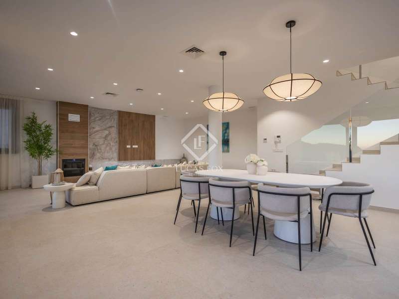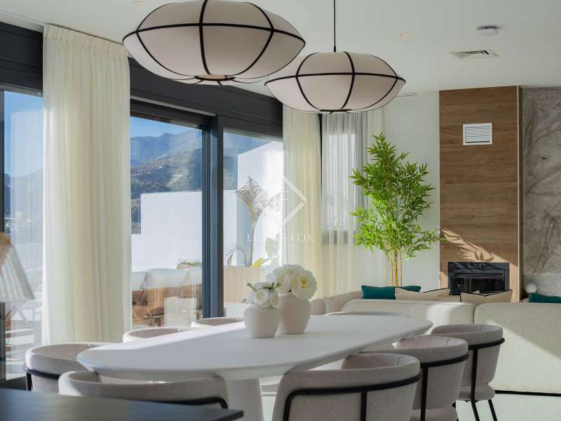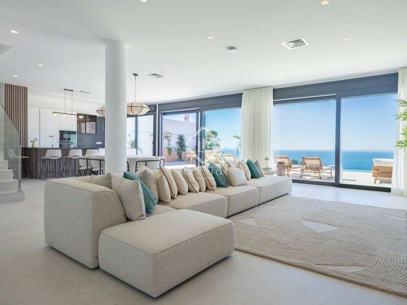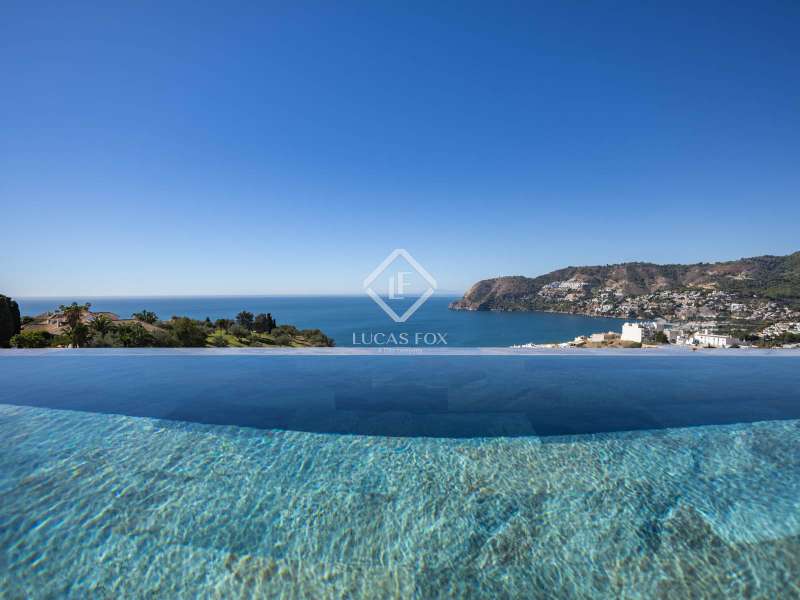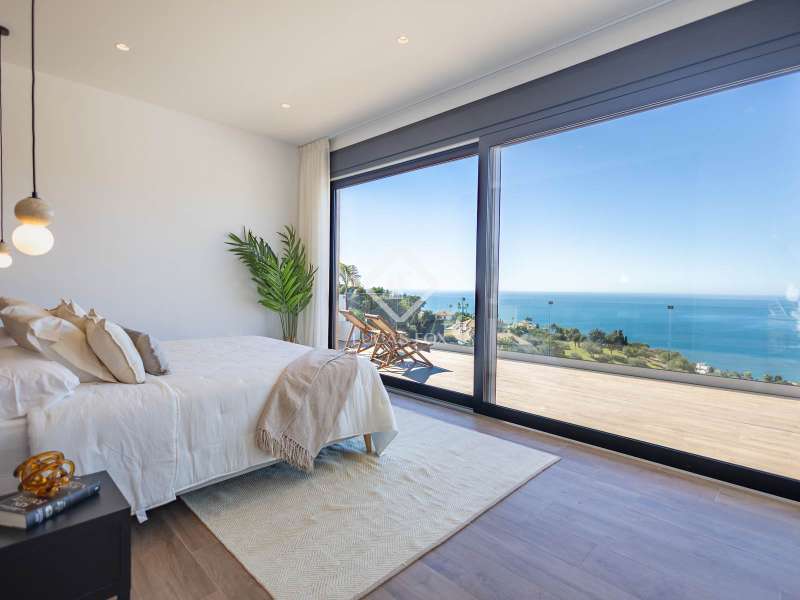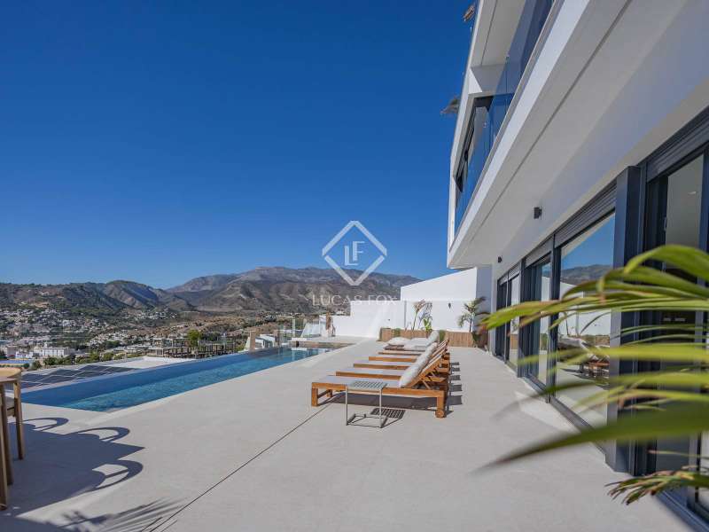 Lucas Fox presents this spectacular new build villa in the exclusive Valdemar development . Renovated in 2025, the property comes fully furnished and ready to move into, boasting exquisite taste and a modern design incorporating the latest technology. This is the developer's show home, arguably the finest unit in the entire development, thanks to its high-end features and superior finishes. On the ground floor, we find a large, contemporary living room with expansive windows that flood the space with natural light and open directly onto the main terrace. The modern and functional open-plan kitchen is equipped with state-of-the-art appliances and seamlessly integrates with the living and dining room area. In addition, there is a designer wine cellar and a convenient guest toilet with a shower for visitors or those enjoying the pool without needing to enter the property. The first floor houses three elegant bedrooms, each with en-suite bathrooms, built-in wardrobes , and private balconies offering stunning sea and mountain views. Every room has been designed for privacy, using the highest quality materials and finishes. The upper floor is entirely dedicated to the magnificent main bedroom with dressing room, designer private bathroom and an exclusive terrace from which you can contemplate the best panoramic views of the bay of La Herradura. The basement floor , with its 290 m², offers unlimited potential to adapt the space to the future owner's needs and lifestyle. It can be used as a gym, spa, home theater, games room , or even a combination of several options. It also features a closed garage for four cars and a private parking space on the entrance porch. Furthermore, this level has an elevator to the ground floor for added convenience and accessibility. Exterior , the spacious terrace offers outdoor seating and dining room areas next to a heated pool with a solar cover, perfect for enjoying all year round. The property features integrated home automation and Wi-Fi. It is also equipped with electric shutters in every room, aerothermics air conditioning/heating, and solar panels for high energy efficiency and reduced consumption. Every detail has been carefully selected to offer a modern, functional, and sustainable property . A unique villa , ready to move into, with high specification, impeccable design, and unparalleled views of the Mediterranean. Contact us to arrange a private viewing.