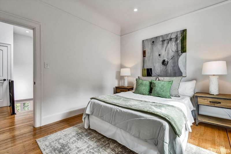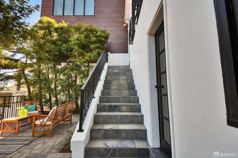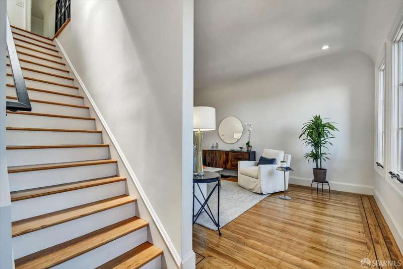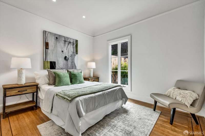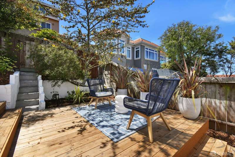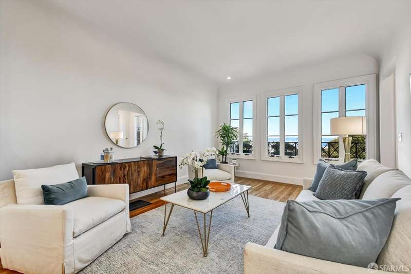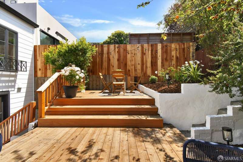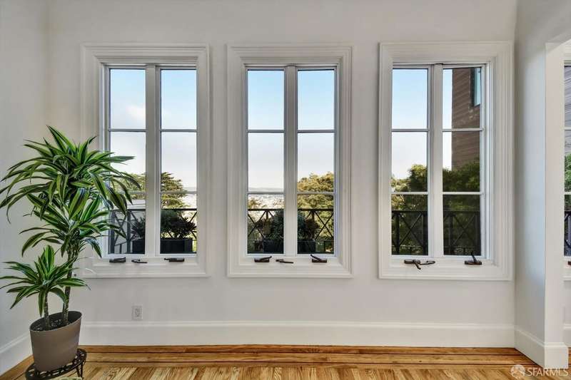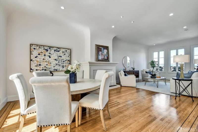 Behind a rose-lined entrance and gated garden patio, this beautifully updated home in prestigious Clarendon Heights offers stunning views from the Bay to Downtown San Francisco, Mount Diablo, and beyond. Blending classic Neo-Edwardian architecture with modern finishes, the open floor plan features coved ceilings, a powder room, spacious living and dining areas, and a gourmet kitchen that flows into a terraced backyardperfect for entertaining or morning coffee. The sunlit living room boasts sweeping Bay views and a cozy wood-burning fireplace. Upstairs, two guest bedrooms overlook a serene garden, while the primary suite includes iconic views, a walk-in closet, and a luxurious en suite bath. Includes a large two-car garage and easy access to shopping, dining, and city conveniences.