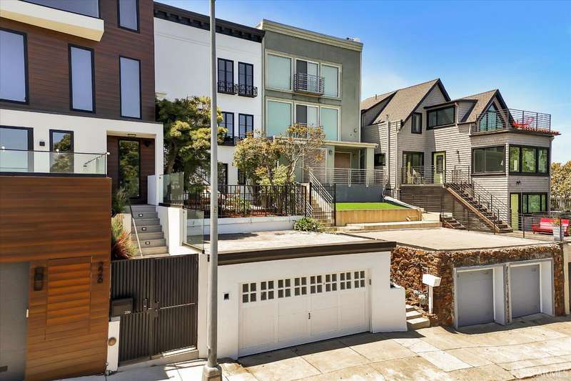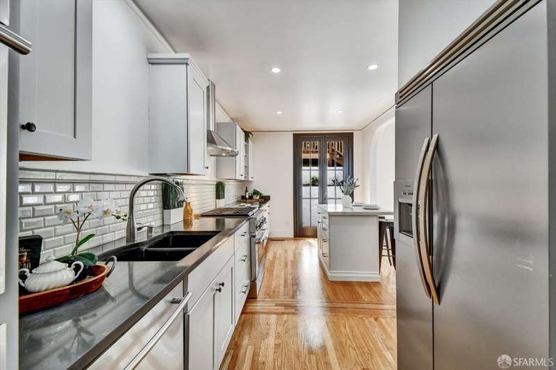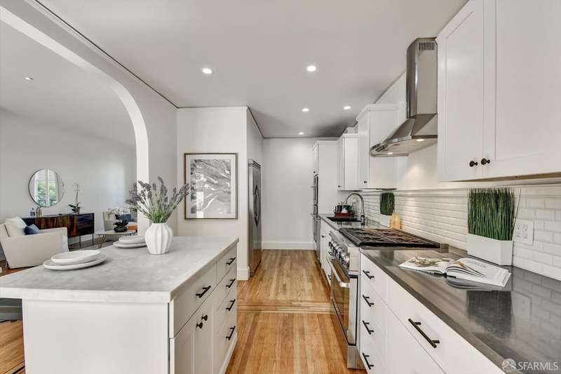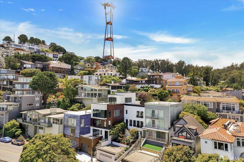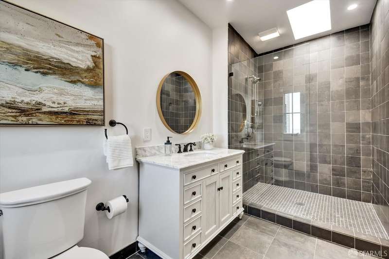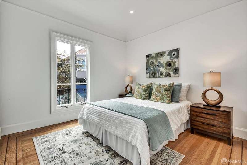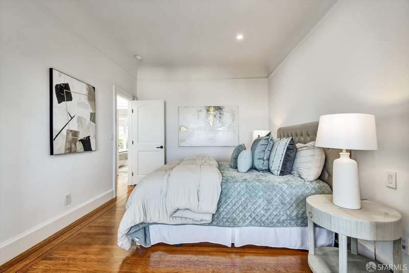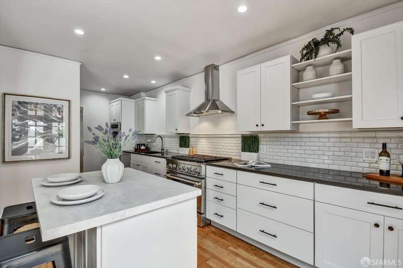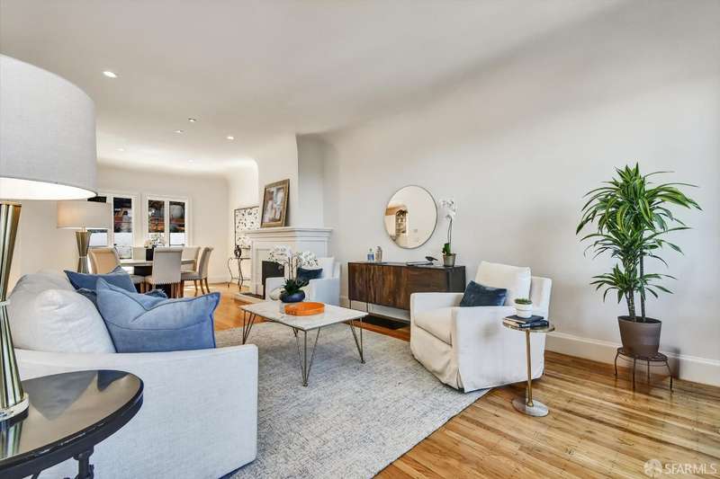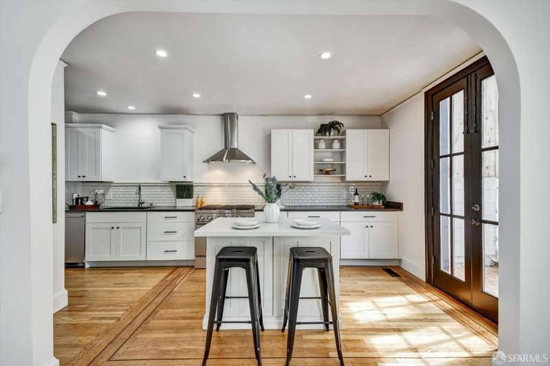 Behind a rose-lined entrance and gated garden patio, this beautifully updated home in prestigious Clarendon Heights offers stunning views from the Bay to Downtown San Francisco, Mount Diablo, and beyond. Blending classic Neo-Edwardian architecture with modern finishes, the open floor plan features coved ceilings, a powder room, spacious living and dining areas, and a gourmet kitchen that flows into a terraced backyardperfect for entertaining or morning coffee. The sunlit living room boasts sweeping Bay views and a cozy wood-burning fireplace. Upstairs, two guest bedrooms overlook a serene garden, while the primary suite includes iconic views, a walk-in closet, and a luxurious en suite bath. Includes a large two-car garage and easy access to shopping, dining, and city conveniences.