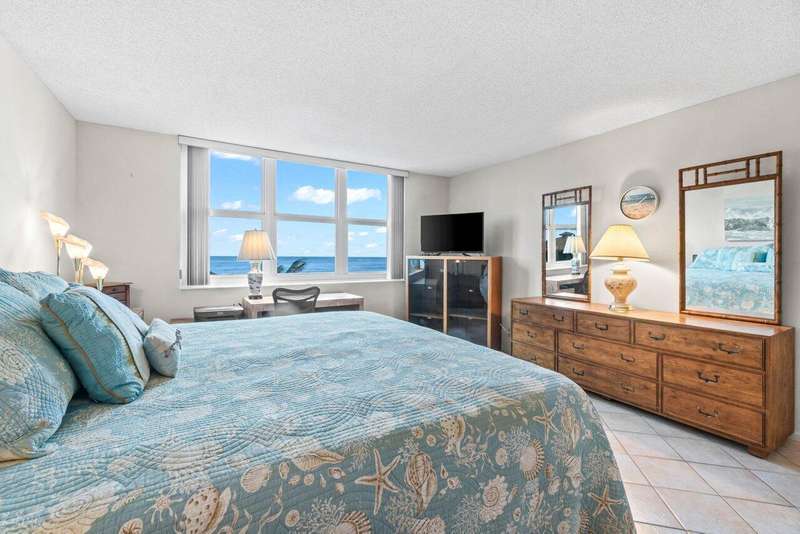 Direct oceanfront 2 BR, 2BA condo, corner unit w/wrap around balcony & impact glass, ocean view from all living areas & bedrooms! Easy access to private beach Beautifully remodeled kitchen 3 yrs ago w, quartz, Italian marble backsplash, dishwasher only used twice, Frigidaire appliances, walk-in pantry. Light & bright, tile thru-out, blinds, stackable w/d (not shown on floor plan) plus community laundry on each floor. Aug 2024 commercial grade ac (outside unit). Available furnished, 3 new TVs. Assigned covered parking spot. Heated community pool, social room w/kitchen, gym w/ sauna & his/her showers, grill, seawall, bike storage, paddle board storage, garbage shoot. 5 miles of beach w park access. New roof installation to begin April 2025, seller already paid $2,000 assessment due 5/2025!