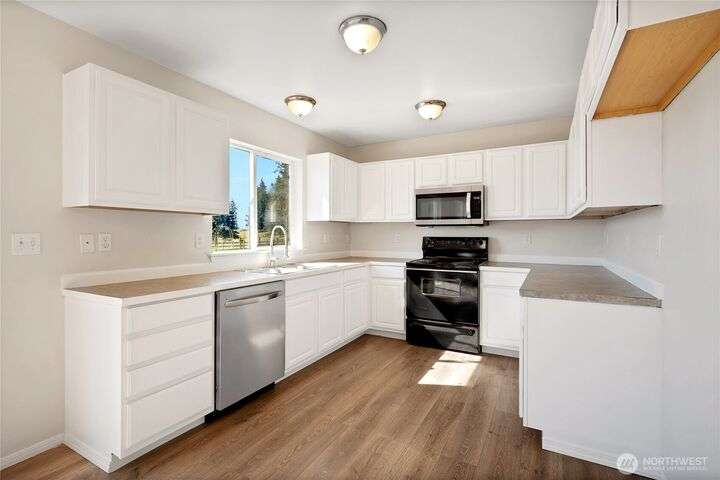 Perfect Timing! Spacious 2 story home on 1 acre, built in 2007 with New 2025 upgrades including exterior & interior paint, new stove/oven & dishwasher, PVF Flooring, new carpeting. Well designed floor plan. Living room on entry, through to kitchen. Gas propane fireplace in family room. 1/2 bath off family room. Upper floor features large open Bonus room, 3 bedrooms including Primary. Primary bedroom features vaulted ceilings, walk-in closet, 5 piece bath and private deck. Utility room upper floor. 2 car fully finished. Expansive yard is ready for your landscaping vision. Storage Shed, Well House. Located down a short gravel road, please drive slowly. One of 4 homes on shared well. Near JBLM, Roy, McKenna, Yelm.