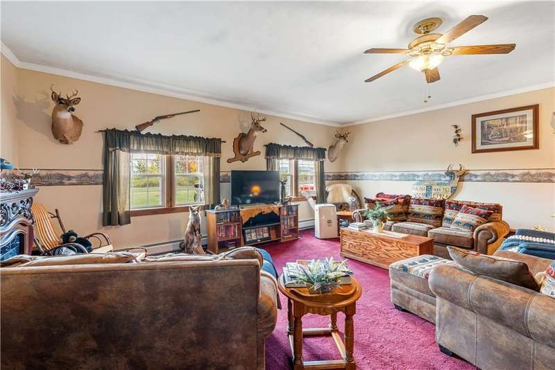 Welcome to this inviting ranch home that sets on just over two acres, offering breathtaking views for miles down the valley. Enjoy the ease of one-floor living with a spacious family room - perfect for hosting holiday and gatherings with family and friends. The updated kitchen includes all appliances, while the combined living room and dining area features a newer pellet stove for cozy evenings. Two bedrooms and a full bath complete the main level. The partially finished lower level provides additional living space, including a third bedroom, with a walkout to the beautiful, covered patio - an ideal spot to unwind after a long day at work or a place to read a great book. Outside, an oversized garage offers plenty of storage for recreational equipment, while the shed with electric is a great workshop, craft room, or hobby space. Beautiful gardens surround this country home - extremely well cared for through the years. Enjoy everything that this place has to offer - it is ready for you to call it home! Open house on Saturday, October 4th from 2:00 PM until 4:00 PM with delayed negotiations to take place on Monday, October 6th at 12:00 PM.