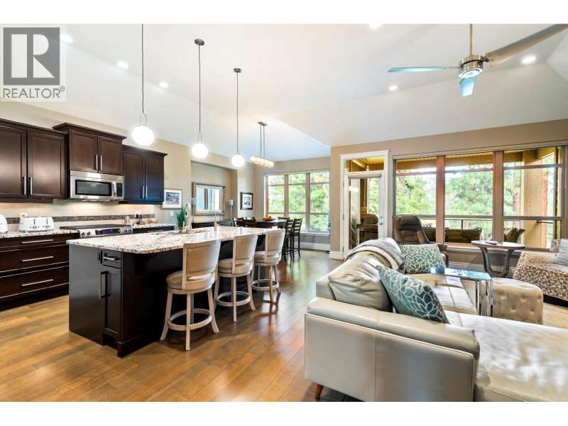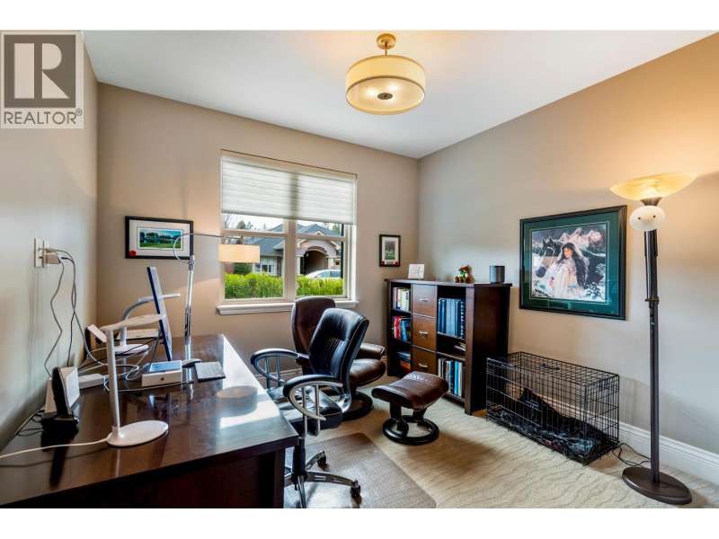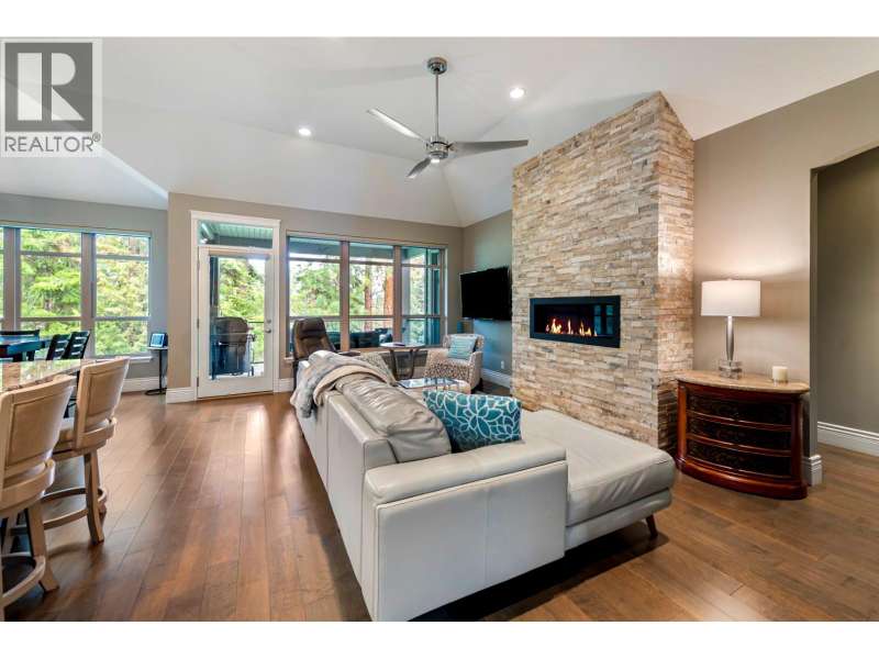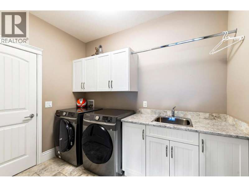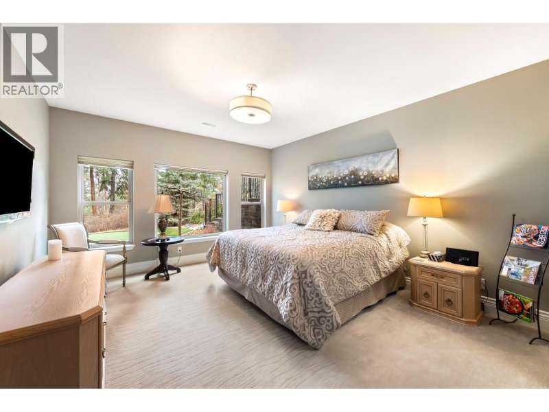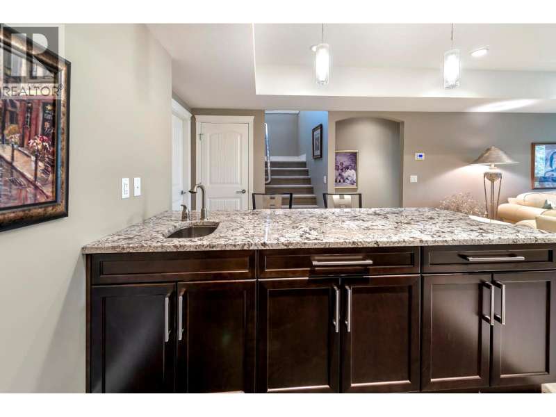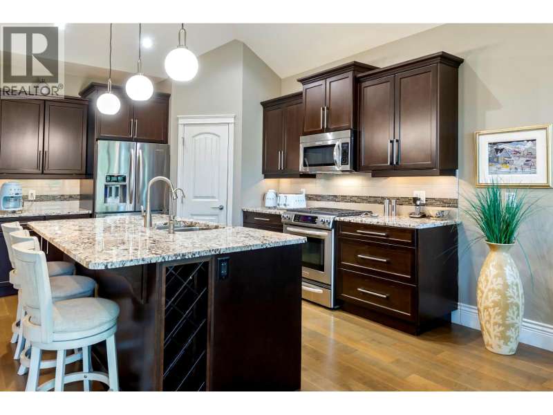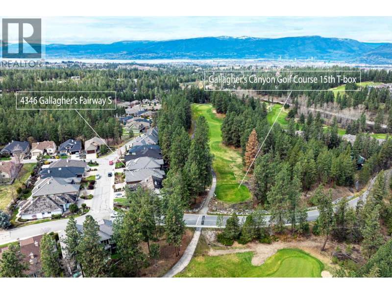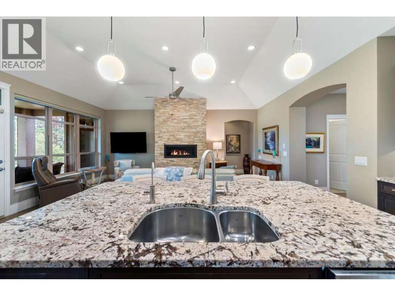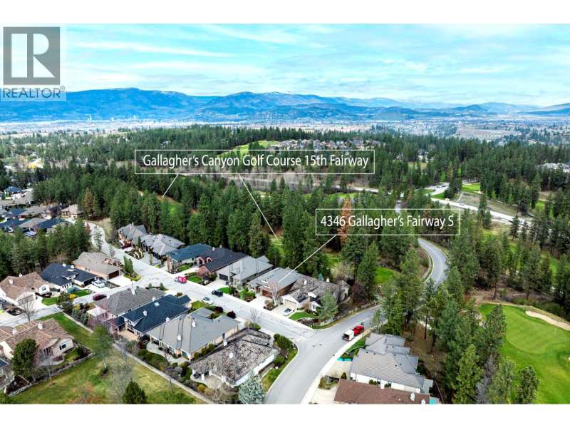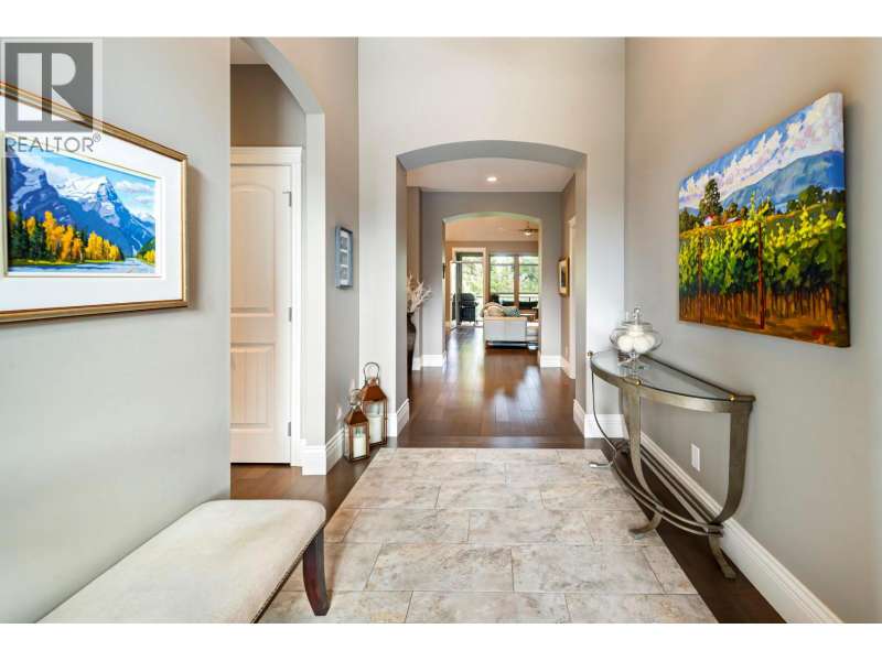 Welcome to this gorgeous custom-built home positioned on the 15th hole in the prestigious Gallaghers Canyon community. Set in a peaceful and private retreat-like setting, this beautifully appointed home features an entertainer’s kitchen with rich maple cabinetry, KitchenAid Architect Series appliances, a walk-in pantry, and a large sit-up granite island. The open-concept design is enhanced by soaring 11-foot ceilings on the main floor and flows seamlessly to the outdoor patio, perfect for summer entertaining. The main floor primary suite includes deck access, a spa-inspired ensuite with heated tile floors, a large soaker tub with handheld shower, a beautifully tiled walk-in shower, separate toilet with washlet and a spacious walk-in closet. A flex room on the main floor offers versatility as a guest bedroom or home office. Downstairs, you’ll find a warm and inviting entertainment area featuring a wet bar, walk-in wine room, another full bathroom, two additional bedrooms, and walk-out access to your private hot tub and putting green—perfect for unwinding or practicing your short game. Additional highlights include engineered hardwood floors, stylish lighting, Front-load washer/dryer, High Efficiency Lennox furnace and A/C system, massive lower-level storage room and an oversized garage with durable acrylic flooring. Enjoy all that Gallaghers Canyon has to offer: a clubhouse, indoor pool and spa, fitness centre, workshop, and two spectacular golf courses. (id:7434)