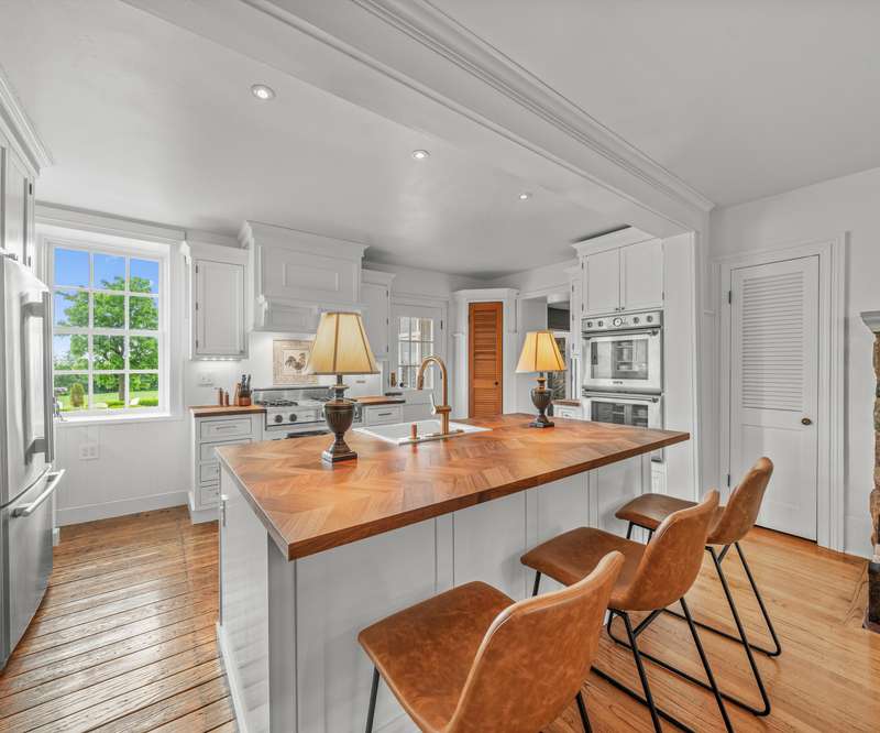 On 15.62 acres of prairie & farmland, this 1856 Cobblestone Farmhouse in Scio Twp has almost 4,000 sq. ft. of up-to-the-minute renovations. Its sophisticated design respects the classic nature of the Four-Square floor plan. It features formal living & dining rooms w/ fireplaces, a home office, updated bath & a chef's kitchen w/ custom cabinets, butcher block counters & stainless. A thoughtful addition that almost doubles the first-floor living space. It has a family room w/ impressive wet bar area, an additional bedroom or den, full bath & laundry. Upstairs is the large Primary bedroom, 3 additional bedrooms, & a renovated hallway bath. The oversized 3-season room w/ fireplace opens to an expansive outdoor living area with multiple patios & firepit area, all overlooking the expansive acreage, w/ regular visits from deer, turkeys & Sandhill cranes. Important updates include windows (2025), French doors to 3-season room (2023), garage doors (2023), well (2018) & 8-zone boiler (2018).
