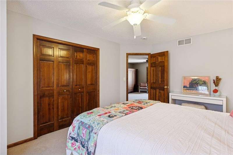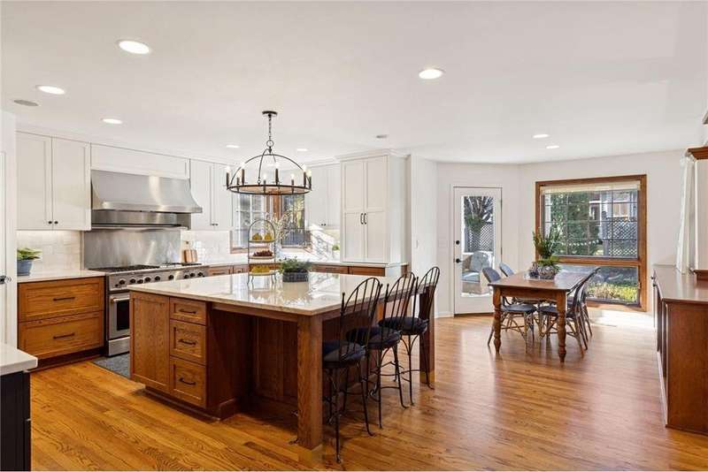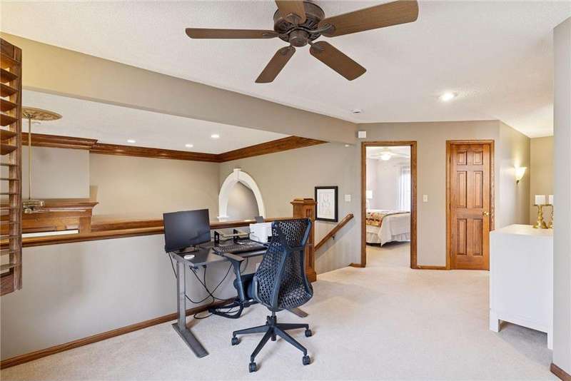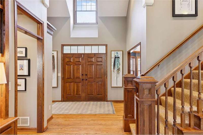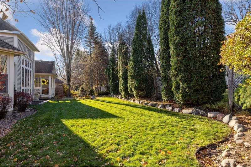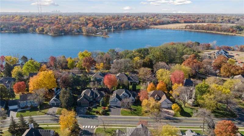 Welcome to this exceptional Pratt Homes two-story in the highly desirable Harbor Place - one of Shoreview’s most convenient & sought-after neighborhoods! Designed for comfort, versatility, and timeless elegance, this residence offers dramatic 17-ft ceilings in the Foyer and Great Room, rich wood floors, and abundant natural light. The main level features a spacious Great Room with fireplace & built-ins, a formal Dining Room, and an inviting eat-in Kitchen that’s ideal for entertaining. The luxurious Primary Suite on the main floor includes a spa-inspired private Bath with in-floor heat, while a dedicated Office/Study provides a perfect work-from-home space. Enjoy seamless indoor/outdoor living with a covered Deck featuring a vaulted ceiling with fan, plus a beautiful paver Patio surrounded by mature landscaping. The upper level offers three generous Bedrooms, a Loft overlooking the Great Room, and a thoughtfully designed Bath with dual vanities and a separate tub/toilet area. The finished lower level includes a 2nd Kitchen, 5th Bedroom, Family Room & Flex/Play Room - perfect for multi-generational living, guests, or entertaining, with room to expand further. Energy-efficient solar panels, an invisible fence, and an EV charging station add modern convenience & sustainability. Near Snail Lake beach and park, this beautifully maintained home combines warmth, function, and sophistication in a prime setting.