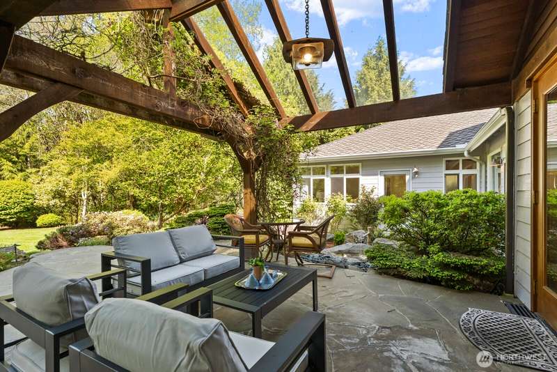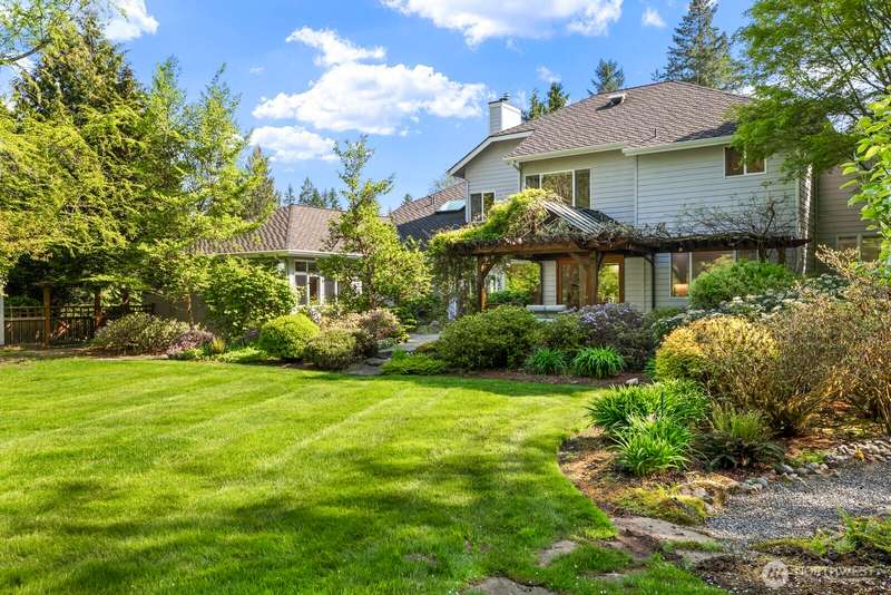 Multigenerational living in desirable Lake of the Woods! Updated home w/attached approx 1100* sf ADU w/a private entrance, great room w/vaulted ceiling, hardwood floors, kitchenette w/quartz counters, bedrm w/walk-in closet, bthrm w/soaking tub, tiled shower, dual vanities. Main house w/soaring ceilings, crisp white millwork, fresh paint & flowing, open floor plan sets the stage for this versatile home. Newly updated kitchen w/white cabinetry, quartz counters, walk-in pantry & brushed gold hardware. French drs to the Pennsylvania blue stone covered patio, water feature, fully fenced serene setting in a cul-de-sac. 2 stairways lead to lrg bonus rm, separate mud rm, updated hall & powder baths, primary suite. Newer 50 yr roof, AC, generator.