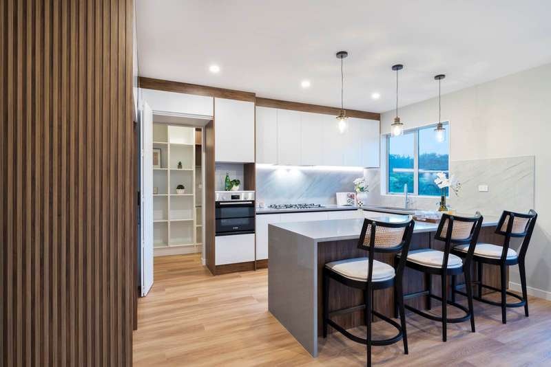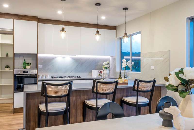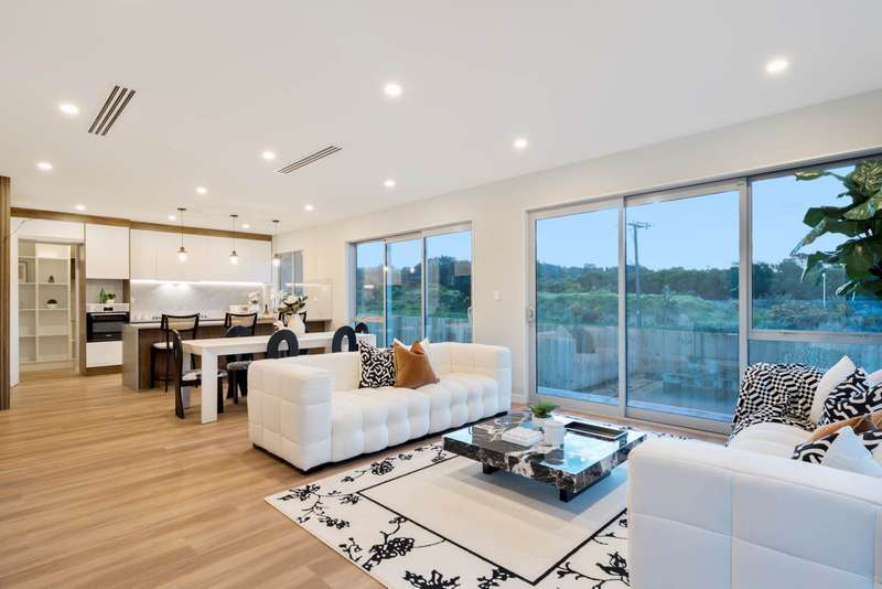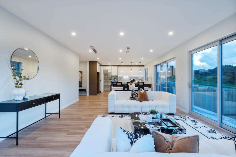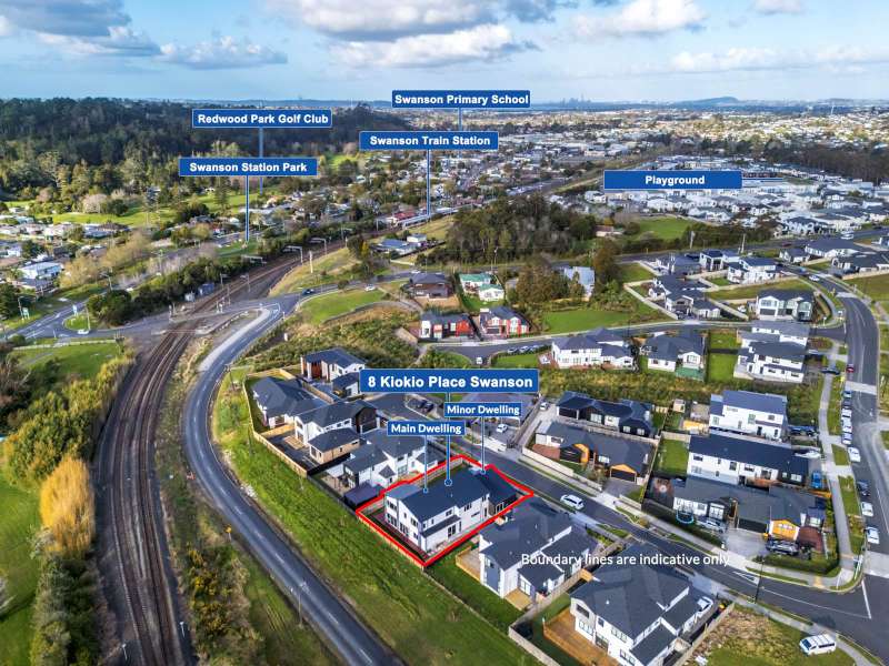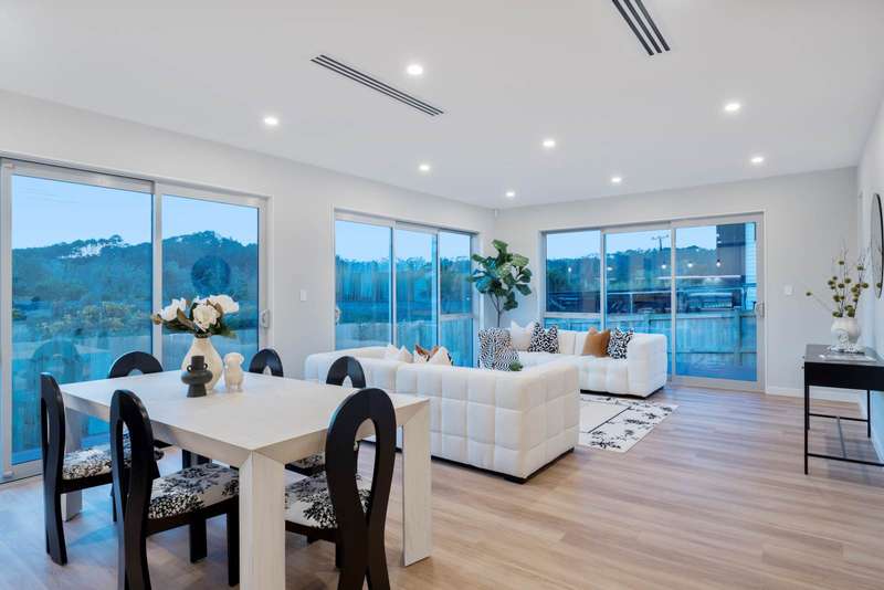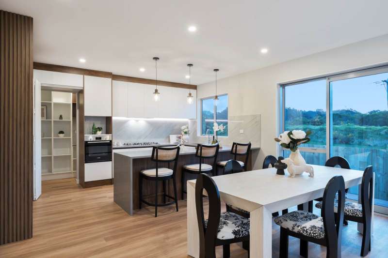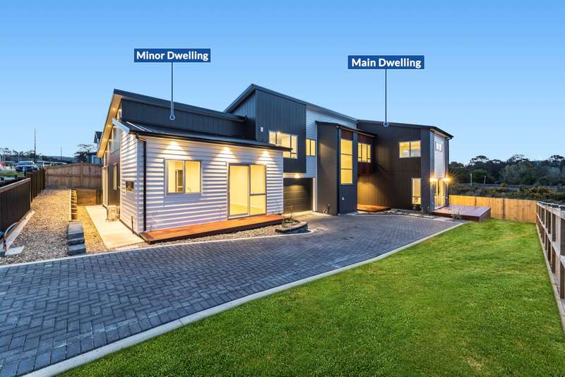 Experience the perfect balance of modern luxury, family comfort, and smart investment. Set on a section of around 600sqm with an interior space of approximately 337sqm, this stunning residence offers a lifestyle designed to impress. Main Residence (No. 8): Five bedrooms in total: One master suite on the ground floor – perfect for grandparents or guests Two master suites upstairs, each offering elegance and privacy Two additional bedrooms plus a dedicated study upstairs Two expansive living areas, creating seamless flow for family gatherings A large designer kitchen, combining functionality and style Double garage providing convenience and secure parking Excellent outdoor living and entertaining spaces, perfect for family enjoyment Legal Home Income (No. 8A): A self-contained two-bedroom unit with one living area Modern open-plan kitchen and comfortable layout Fully independent – ideal for generating income or housing extended family Prime Location – Swanson: Within walking distance to Swanson Train Station for easy city commuting Close to Swanson Golf Course, cafés, and local shops A community surrounded by nature, yet conveniently connected At 8 & 8A Kiokio, you’re not just buying a home, you’re investing in a prestigious lifestyle with a legal income stream. A rare find for families who value space, elegance, and future growth.
