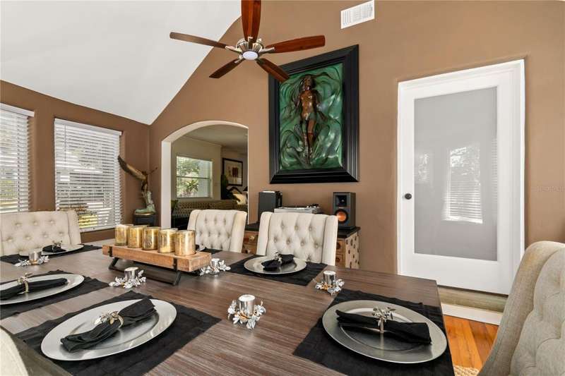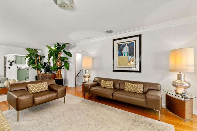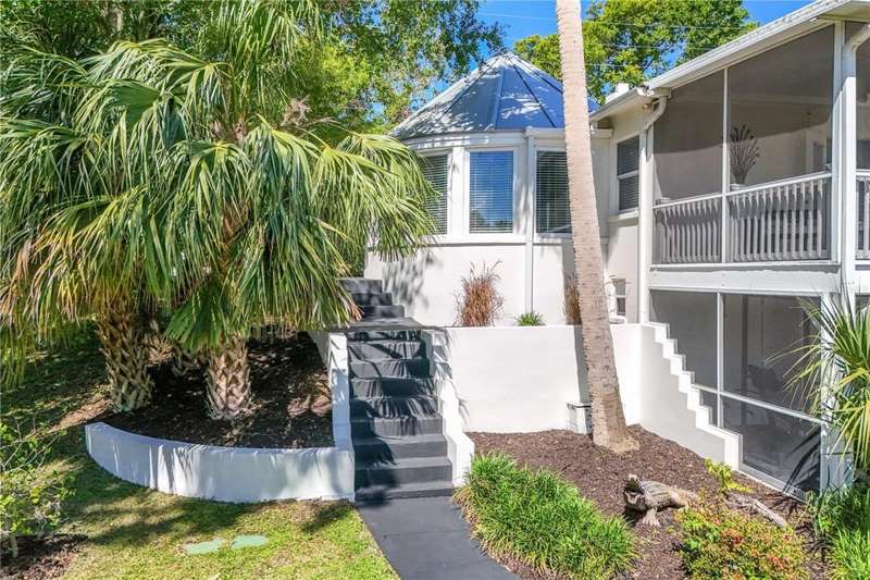 With just a peaceful and breezy 5-minute walk to Historical District Downtown Mount Dora - with its renowned restaurants, boutique shops, and lakeside charm. We welcome you to this stunning 4-bedroom, 2-bathroom home offering 2,796 sq. ft. of beautifully updated living space. Originally built in 1947, this home effortlessly blends classic character with modern upgrades. Completely updated in 2014 with a new electrical and plumbing system, and topped with a brand-new roof in 2019, this property offers peace of mind and lasting value. Energy-efficient hurricane impact windows and doors and spray foam insulation in the roof provide optimal comfort and energy savings year-round. As you arrive, you'll be captivated by the lush, professionally landscaped yard, showcasing a variety of mature trees and vibrant plantings, all meticulously maintained. Step inside to a warm, spacious living room that opens into a fully updated kitchen featuring a new Samsung gas range oven and Samsung fridge/freezer. Just beyond, a breathtaking formal dining room awaits, surrounded by windows and crowned with a stunning turret-style ceiling that echoes the home's historic charm. The main floor boasts two comfortable bedrooms and a beautifully remodeled full bathroom, along with a conveniently located washer and dryer. From all of the main floor bedrooms there is access to the large screened in terrace that gives a tranquil and calming view of luscious trees and garden. Downstairs, the home offers private, flexible living space with a separate entrance-ideal for guests, multigenerational living, or potential rental income. Here you'll find two additional bedroom, another fully renovated bathroom, and a second full kitchen with eat-in space, that opens up to your SECOND screened in terrace perfect for morning coffee - and a second washer and dryer set up in the garage right off the downstairs living area. Entertainment lovers will be drawn to the custom-designed cinema room, outfitted with a Sony OLED TV, Dolby ATMOS 7-speaker surround sound system, soundproofing, and acoustic panels-plus luxurious seating including an. Italian six-seater leather sofa, beanbags, and cinema-themed d?cor. Additional upgrades include fresh paint throughout, a new fence, and a state-of-the-art alarm system on all windows and doors, complete with glass-break sensors. With its prime location, historic charm, and modern amenities, this one-of-a-kind Mount Dora home offers unmatched character, comfort, and convenience. Downtown Tavares and Eustis nearby. 45 minutes away from Orlando International Airport and Walt Disney World theme parks. 15 minutes from the SR 429. Don't miss your opportunity to own a piece of paradise just steps from everything downtown has to offer.