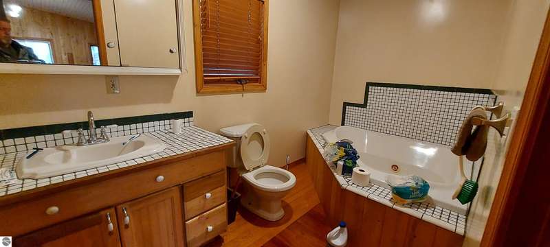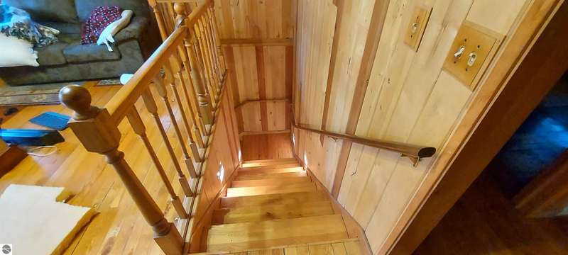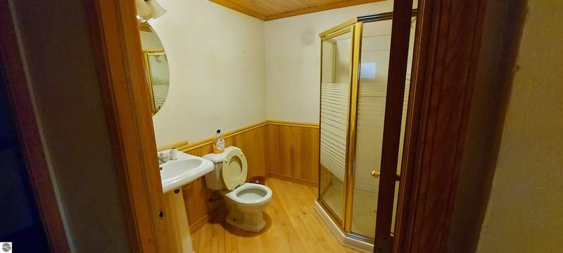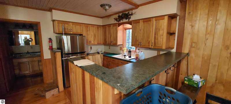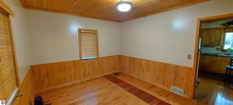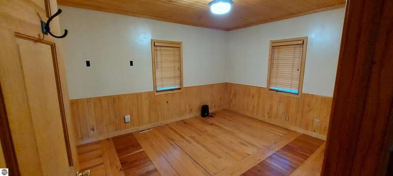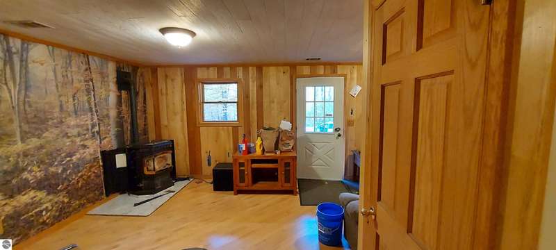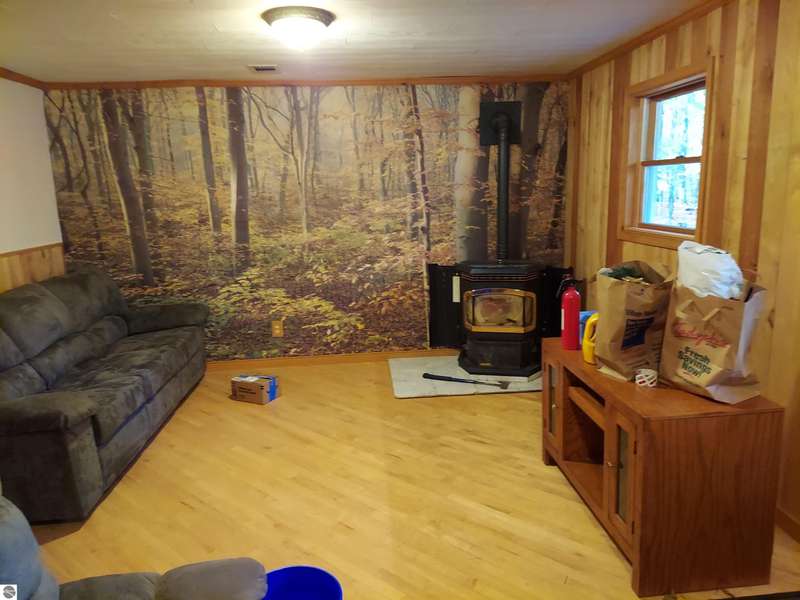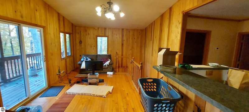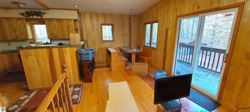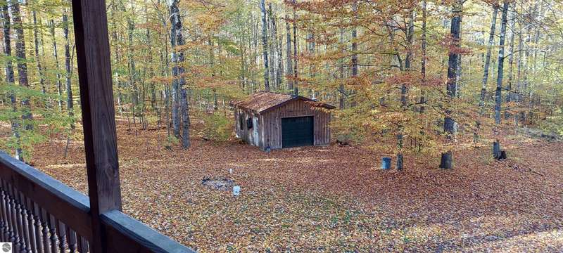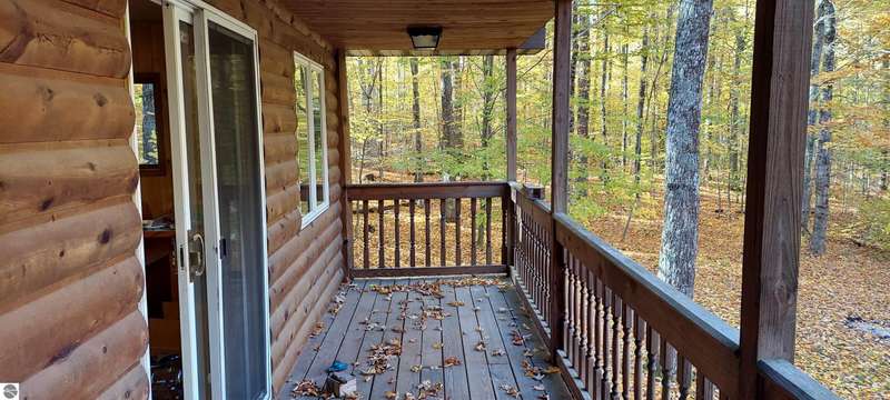 2 bedroom 2 bath log sided home nestled on 10 beautiful acres of hardwoods in northern Michigan. Hardwood floors and vaulted ceilings give it the cabin feel. The covered deck allows you the opportunity to enjoy the sounds and wildlife. The detached garage is insulated and finished. Conveniently located close to shanty creek resort and all the lakes in the area. New well in 25 and the roof was replaced in 21.
