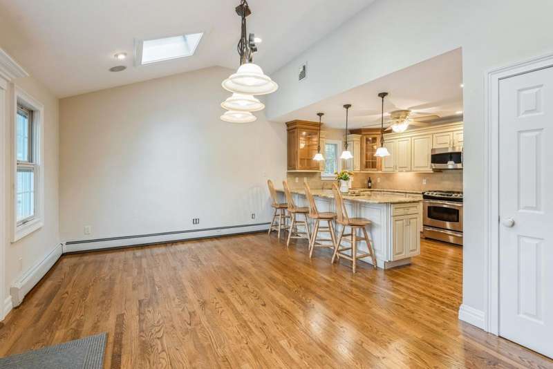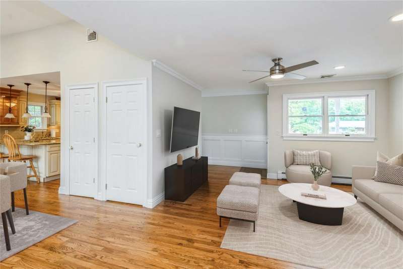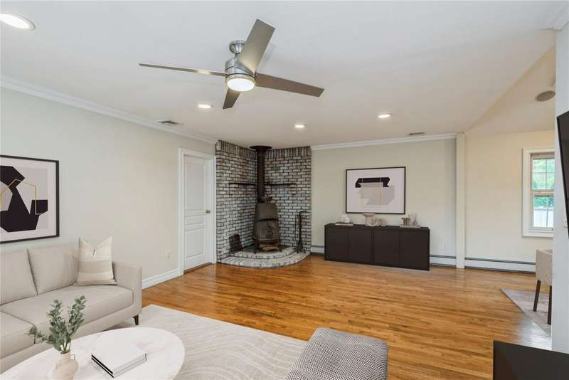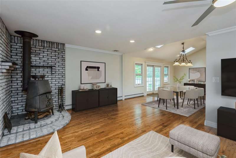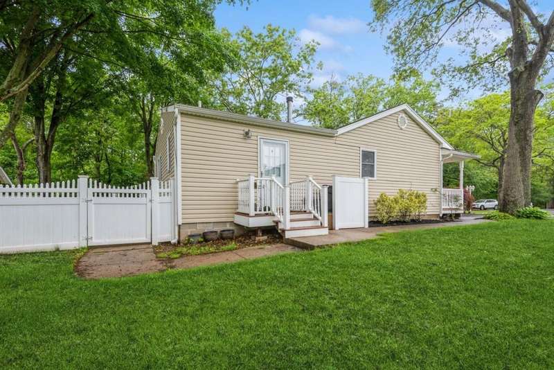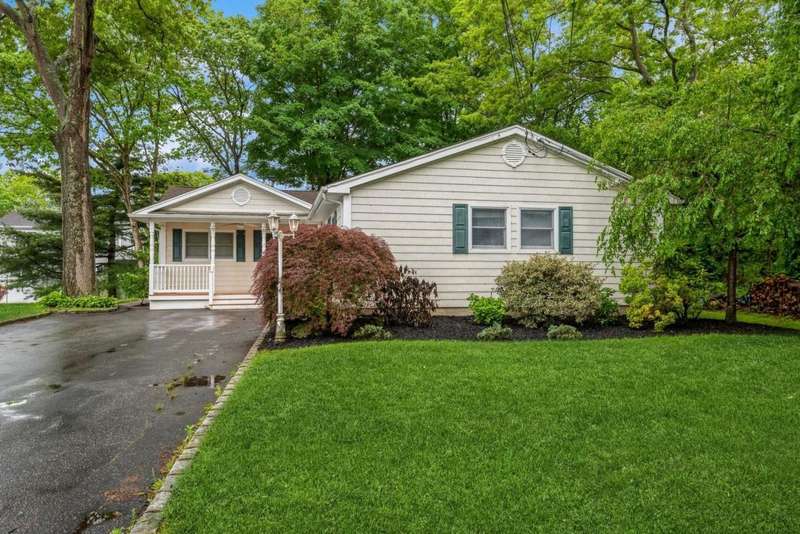 Home awaits in this stunning Lake Hills Ranch! Pride in ownership radiates throughout this fully updated, turn-key home with options and opportunity with flexible floorplan. Featuring a charming front porch, updated granite kitchen with high-end appliances and custom finishes, updated bathrooms, newly refinished hardwood floors, custom millwork and moldings, full partially finished basement, Living room with wood-burning stove, a bright dining room with cathedral ceilings and 2 skylights, large composite deck looking out to the yard and adjacent serene greenbelt land, cul-de-sac location, central air conditioning, room for extended family (main floor separate entrance), vinyl siding and so much more! In the Connetquot school district, this convenient location provides easy access to area highways and the Long Island railroad. You will instantly fall in love with all that this home has to offer!