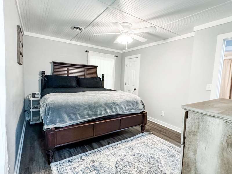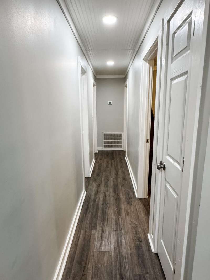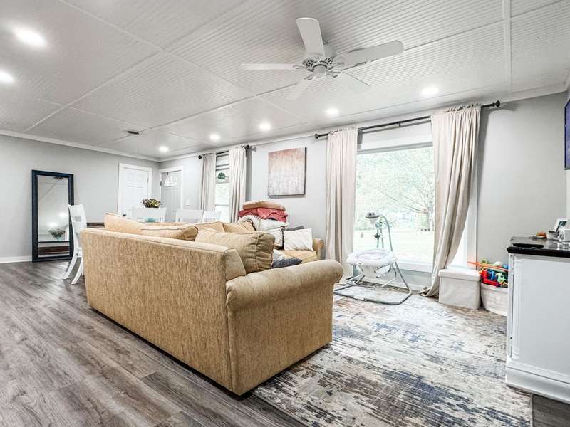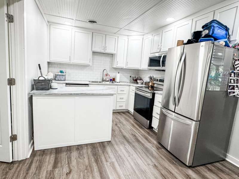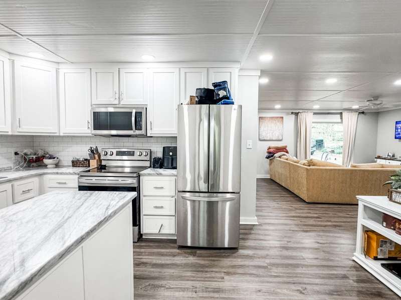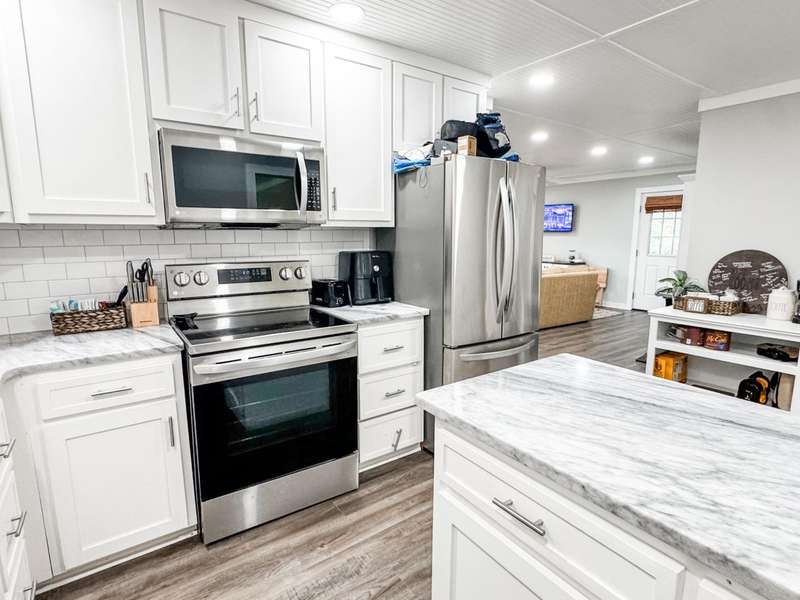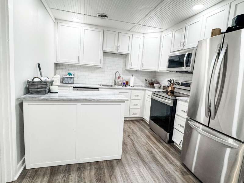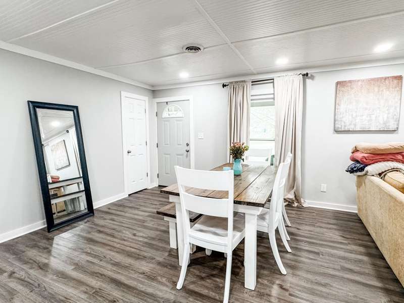 New Albany! This 4-bedroom, 2-bath brick home is situated in a quiet cul-de-sac. It offers a spacious open floor plan with beautiful updates throughout. The kitchen features granite countertops, stainless steel appliances, and a movable island for added flexibility. Both bathrooms have been tastefully renovated, with the primary suite showcasing a walk-in tiled shower. Neutral paint colors throughout create a clean, modern feel. Outside, you'll find two attached single carports with an adjoining storage room, a patio and a shed that remains with the property. Stylish, functional, and full of charm -- this one checks all the boxes! Information is deemed to be reliable but is not guaranteed.