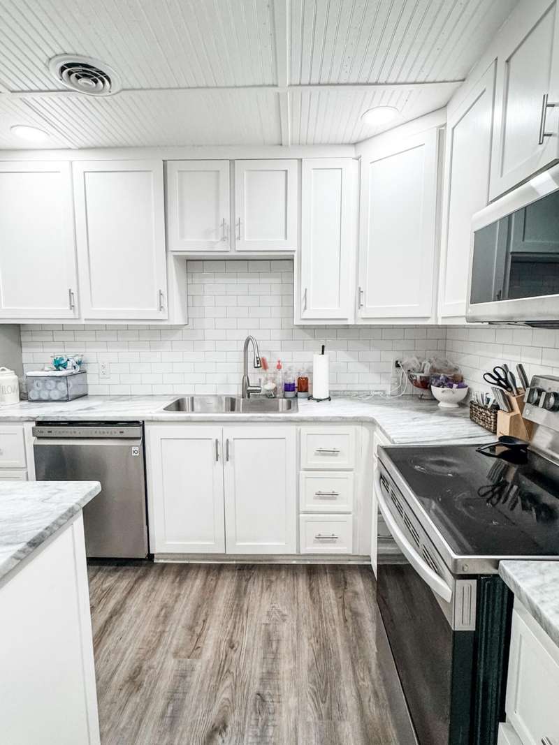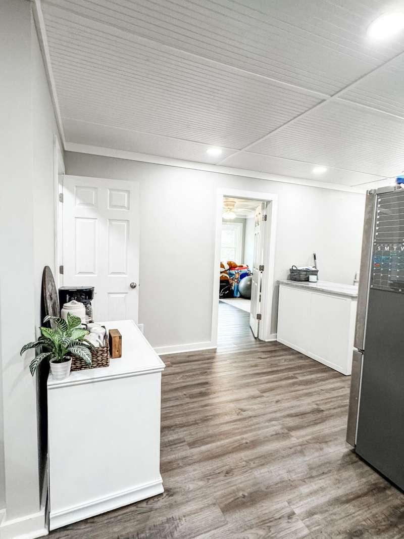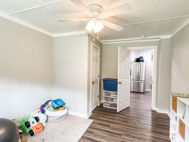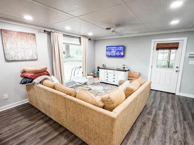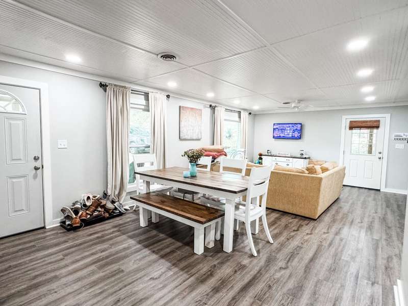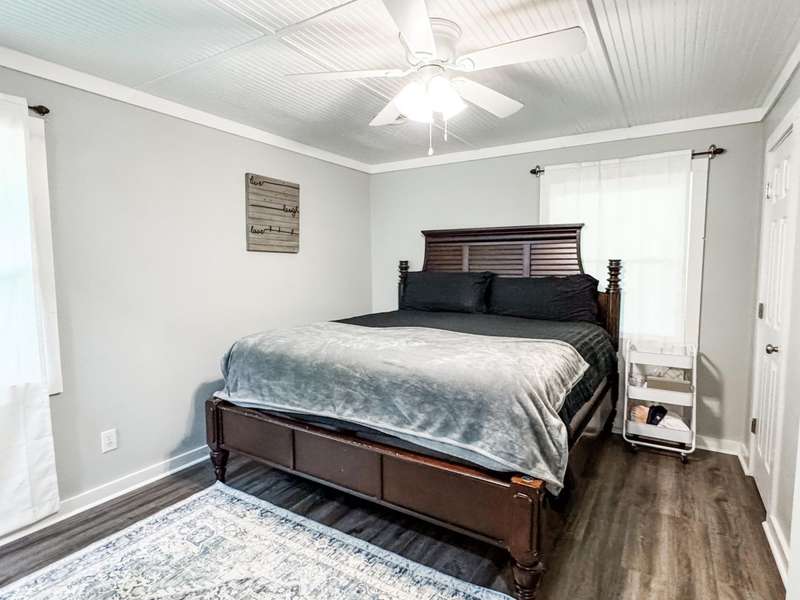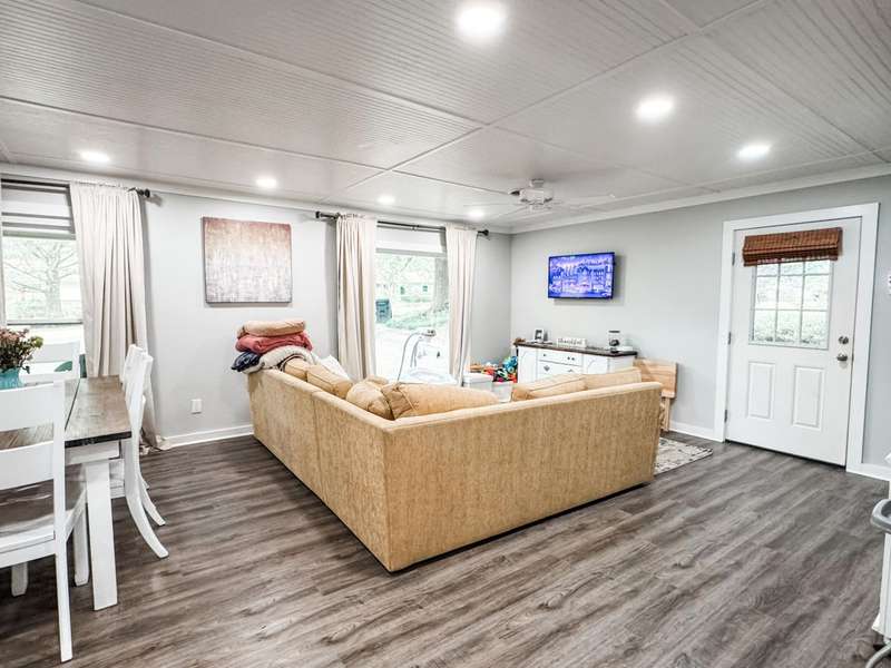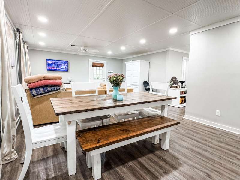 New Albany! This 4-bedroom, 2-bath brick home is situated in a quiet cul-de-sac. It offers a spacious open floor plan with beautiful updates throughout. The kitchen features granite countertops, stainless steel appliances, and a movable island for added flexibility. Both bathrooms have been tastefully renovated, with the primary suite showcasing a walk-in tiled shower. Neutral paint colors throughout create a clean, modern feel. Outside, you'll find two attached single carports with an adjoining storage room, a patio and a shed that remains with the property. Stylish, functional, and full of charm -- this one checks all the boxes! Information is deemed to be reliable but is not guaranteed.