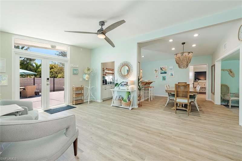 2025: OCT/NOV $4500/mo, DEC 1-25th $4500, 2026: MAR/APR $9000/mo, MAY/JUN/JUL/AUG/SEPT/OCT/NOV: $4500/mo. Available on short term basis for periods of less than 1 month if desired, please inquire for specific pricing. Completely renovated coastal bungalow in Naples charming Brookside neighborhood located only a short bike ride from downtown Old Naples white sand beaches, shopping and dining of 5th Avenue South and the up-and-coming Bayshore Arts District. Offering 1,864 square feet of living space with 4 bedrooms (2 kings and 2 queens + twin blow up), 2 bathrooms, an additional kitchenette, 1,604 square feet of outdoor patio area and lush mature landscaping. 2 outdoor seating areas with ample entertaining space, BBQ grill, outdoor games, 2 bikes to ride to downtown Old Naples & beach equipment for 8. If looking for a pool, access to 6+ area resort pools is available via ResortPass.com (extra fees apply). Significant recent capital improvements in addition to a complete renovatio