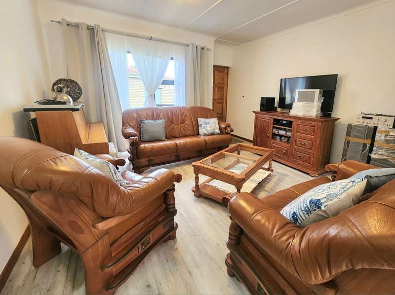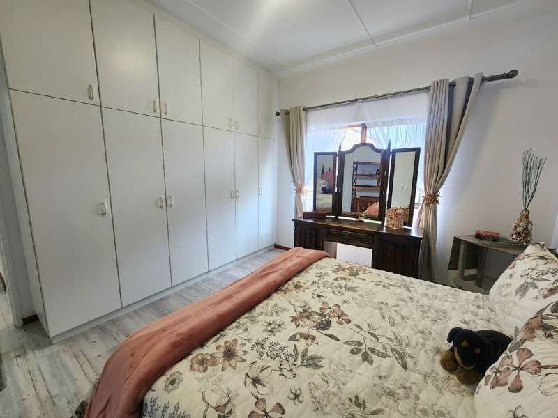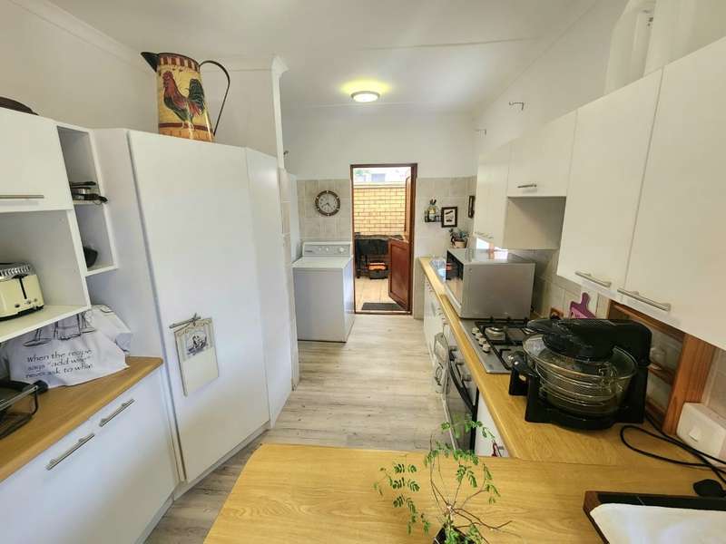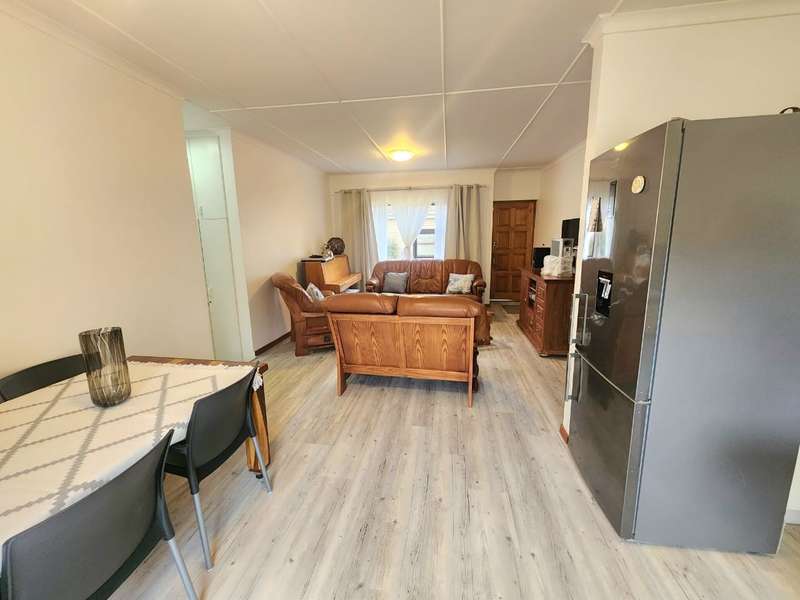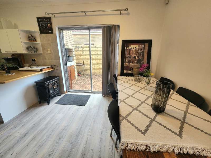 Exclusive Mandate! This well-kept, newly renovated, and low-maintenance townhouse is perfectly positioned in the heart of Jeffreys Bay, within a secure and popular complex. Step inside to a spacious open-plan lounge and dining area that flows seamlessly into a modern kitchen, complete with a breakfast nook and gas stove top. The kitchen opens to an enclosed dry yard featuring an extra basin and access to the outside. The dining area leads through sliding doors to a private patio with a built-in braai, overlooking a fully walled back garden—perfect for entertaining and pet-friendly (with permission). Down the passage are three bedrooms and two full bathrooms, including a main ensuite. All bedrooms come fitted with built-in cupboards, offering ample storage space. A double garage with automated doors provides additional built-in cupboards and direct access into the kitchen for your convenience. Centrally located, this sought-after complex lies directly opposite the bowling club, offering a secure and vibrant lifestyle close to all amenities. This is a rare opportunity not to be missed!