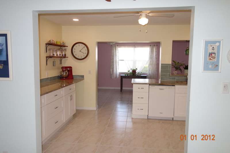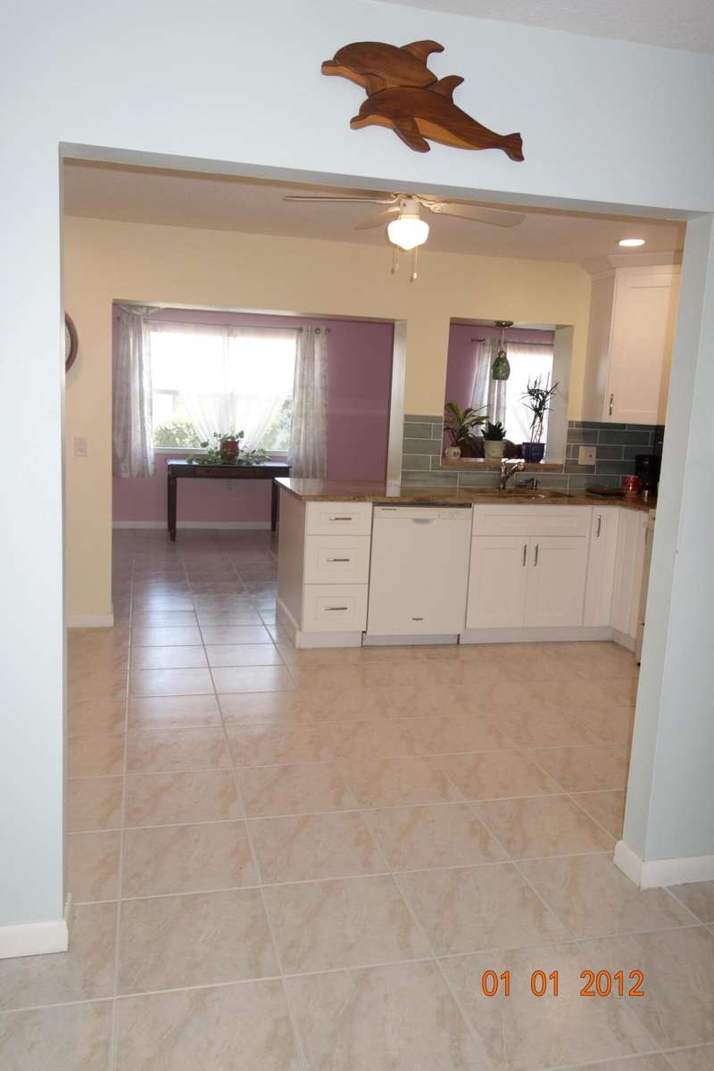 Lovely 2/2 that is light and bright, and lovingly maintained. This home has an open floor plan and large bonus room/den. Some attractive features include tile throughout, impact windows and doors including new garage door (2024), remodeled kitchen has soft close doors and drawers. Bathrooms are updated with a deep soaker tub in one, and a second hot water heater to service the bathroom. Washer/Dryer is inside. Exterior has a double driveway and a larger spacious rear yard. Low monthly fees include exterior maintenance and lawn care, golf, tennis, 3 clubhouses with pool and recreation activities for all. The HOA has a schedule of painting the exterior. Location is wonderful, close to shopping, beaches, and I95. Nothing to do here but move in! All sizes are approximate