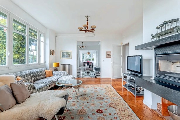 Bathed in light thanks to its large bay windows, this residence has retained all the charm of its era, with a monumental staircase that elegantly connects the two levels and organizes the different living spaces.