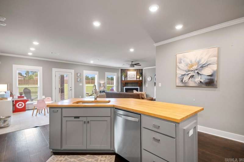 Seller offering $3500 to buyer for closing costs! An open concept home with storage galore! The big lots in this subdivision offer a bit of privacy, while maintaining a neighborly feeling. The spacious living/dining/kitchen area is the heart of this home. Kitchen features a large pantry, extra broom closet, quartz counters on surrounds, and a butcher-block island. Large primary suite is big enough for a sitting area, and it features dual sinks, large tub, water closet, separate shower, walk-in closet and a large bonus closet for storage. Both bathrooms have quartz counters. Extra floored space in the attic. LOTS of storage throughout! Fully fenced back yard, with covered rear patio is great for kids, pets or entertaining. This gorgeous home sits on almost an acre. Country living only minutes to the interstate and town. Agents, PLEASE read remarks!