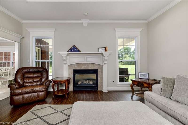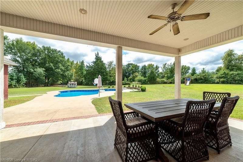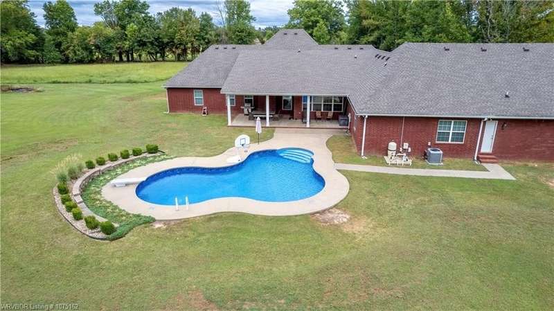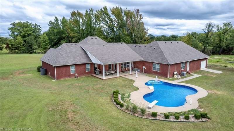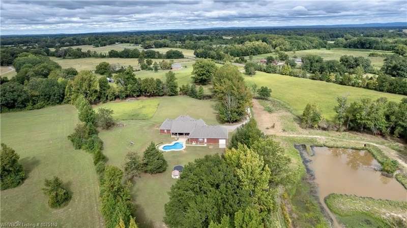 Discover this beautifully crafted Justin Green-built home, offering the perfect blend of comfort, style, and privacy on +/-14 serene acres in Lavaca. With 6 bedrooms, 5 bathrooms, and over 4,200 sq. ft. of living space, this 2005 custom build has room for everyone. Inside, the split floor plan highlights quality finishes throughout, including solid wood cabinetry, built-ins, and Corian counters. The gourmet kitchen is complete with Energy Star appliances, a pantry, and a casual dining nook, while the home office and versatile attic space add function and flexibility. Retreat outdoors to enjoy a saltwater in-ground diving pool, two peaceful ponds (one stocked for fishing), and plenty of open space to entertain or simply relax. The oversized 3–4 car garage provides abundant storage for vehicles, hobbies, and more. Just 20 minutes from Fort Smith, this property combines the best of country living with convenient city access. From the spacious bedrooms and walk-in closets to the private outdoor amenities, this estate is designed for both everyday living and unforgettable gatherings.