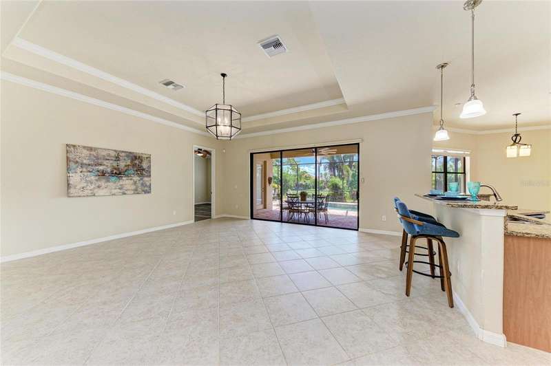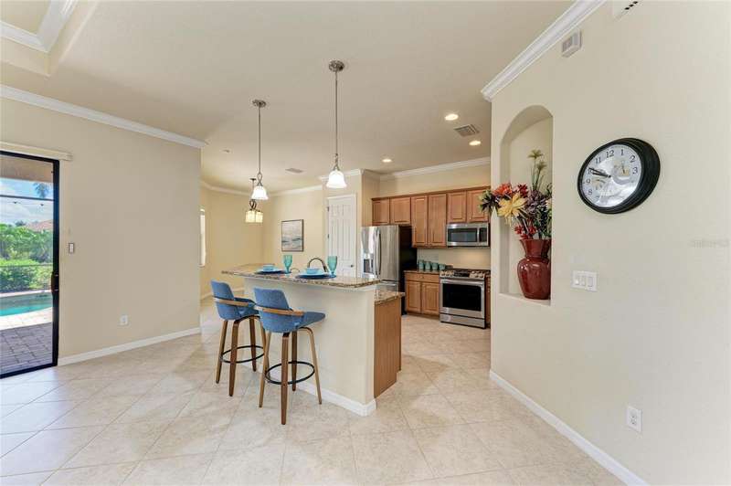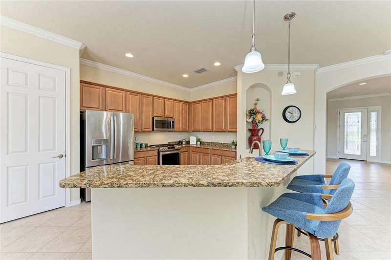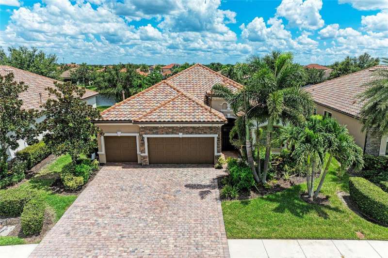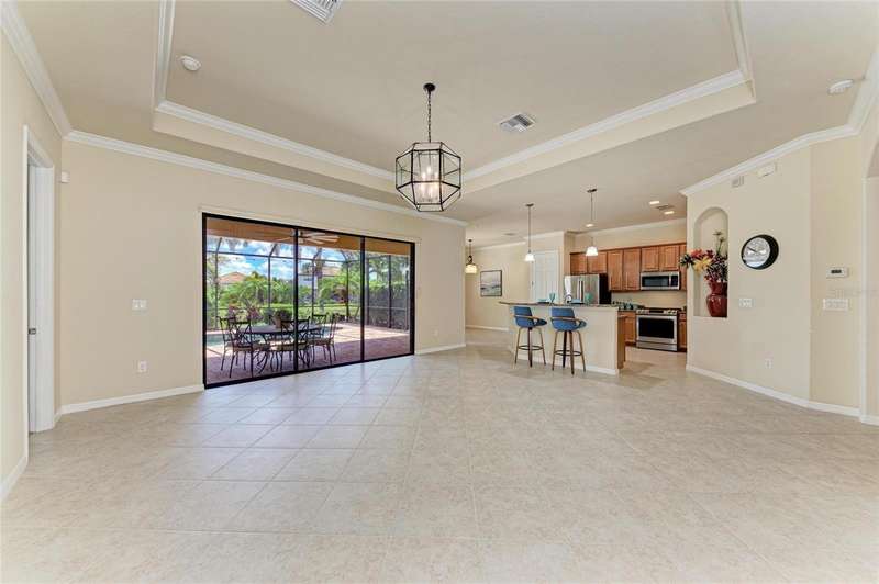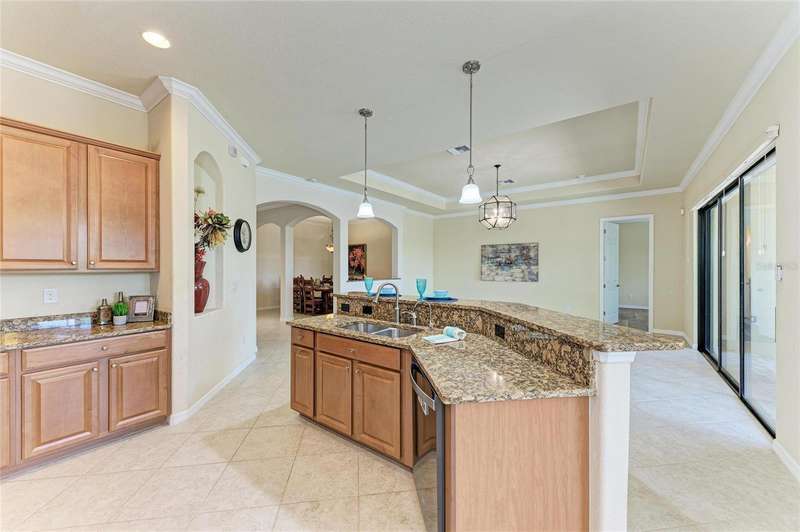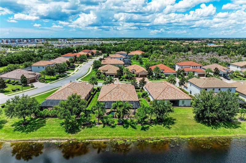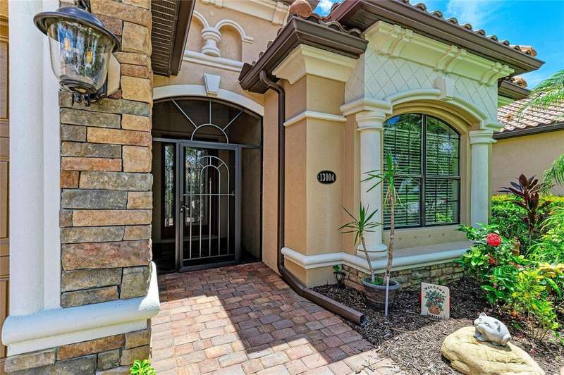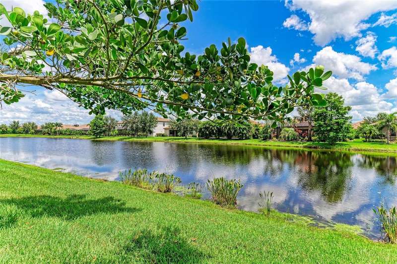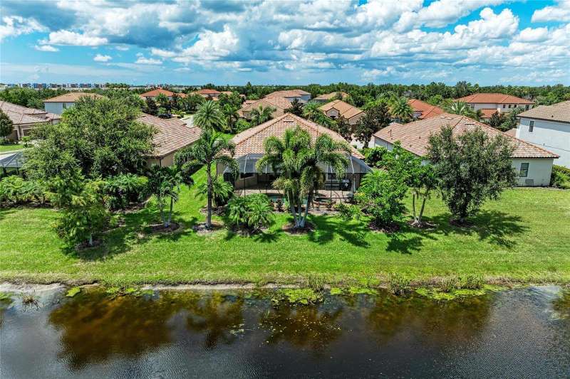 Under contract-accepting backup offers. Experience the best of Florida living in this sought-after Princeton floor plan, featuring 4 bedrooms, 2 baths, 2,244 sq. ft., and a 3-car garage—plus a heated pool and spa—set on a tranquil water-view homesite with stunning outdoor lighting. Step inside to a bright, open layout where the kitchen flows seamlessly into the living room—ideal for hosting friends and family. The living area impresses with tray ceilings, recessed lighting, and fully pocketing sliding glass doors that open to an expansive lanai, complete with a sparkling heated pool, spa, and generous entertaining space. The primary suite is a private retreat with a tray ceiling, room for a king-sized bed and sitting area, and direct lanai access. Its spa-like bath offers dual vanities, a soaking tub, a Roman shower, and an oversized walk-in closet with custom shelving. Three additional bedrooms provide versatility for guests, a home office, or hobbies, while an open dining room or additional sitting area adds even more options for entertaining or relaxing. Elegant finishes are found throughout, including tray ceilings, crown molding, 8-foot doors, 5-inch baseboards, extended tile in the main living areas, and rich laminate flooring in the bedrooms. Practical upgrades include a full laundry room with cabinetry, a paver driveway and lanai, and ground maintenance included in the HOA for true ease of living. Bridgewater at Lakewood Ranch is a gated, maintenance-free community of just 275 single-family homes—no townhomes or condos—offering manicured landscaping, walking paths, a park, playground, and gazebo overlooking a scenic lake. Low HOA fees cover lawn care, reserves, and common area upkeep, so you can spend more time enjoying world-class golf, top-rated schools (including Lakewood Ranch Preparatory Academy), the UTC Mall, dining, shopping, and nearby white-sand Gulf beaches. With quick access to I-75, Sarasota, Tampa, and St. Petersburg are just a short drive away. Move-in ready and brimming with upgrades, this home blends refined design with relaxed elegance in Florida’s #1 master-planned community.
