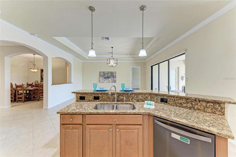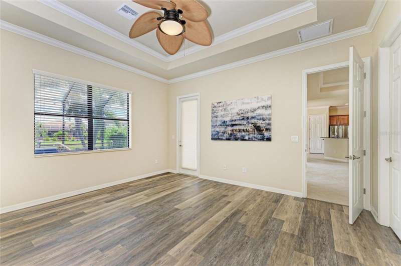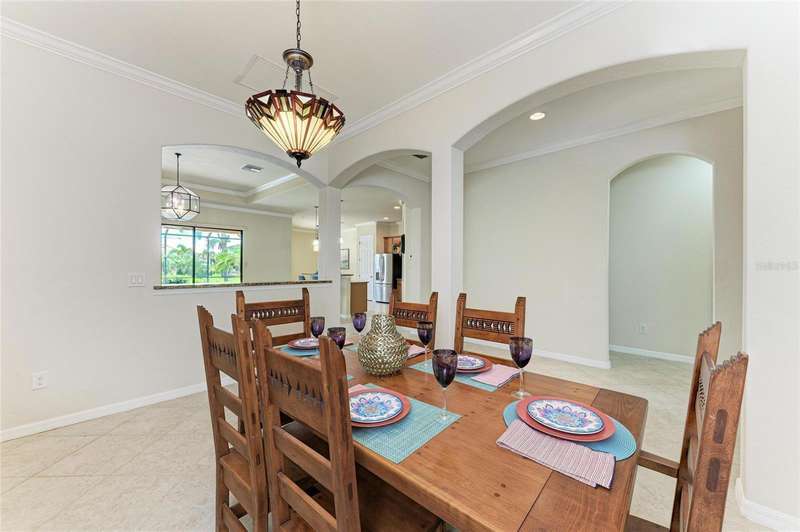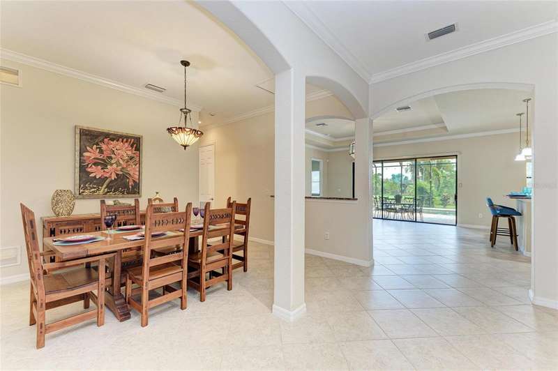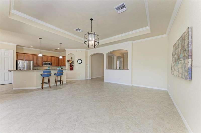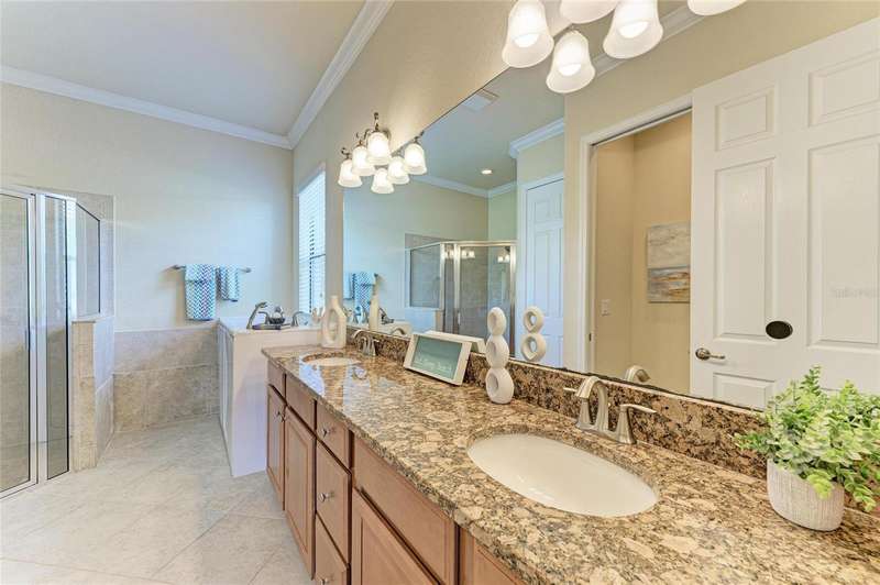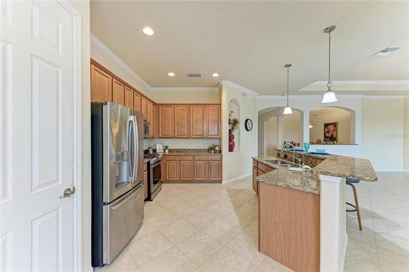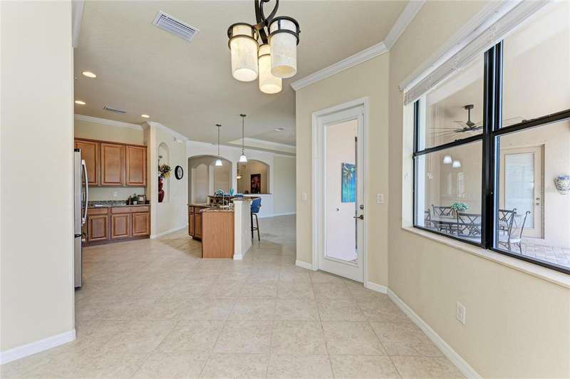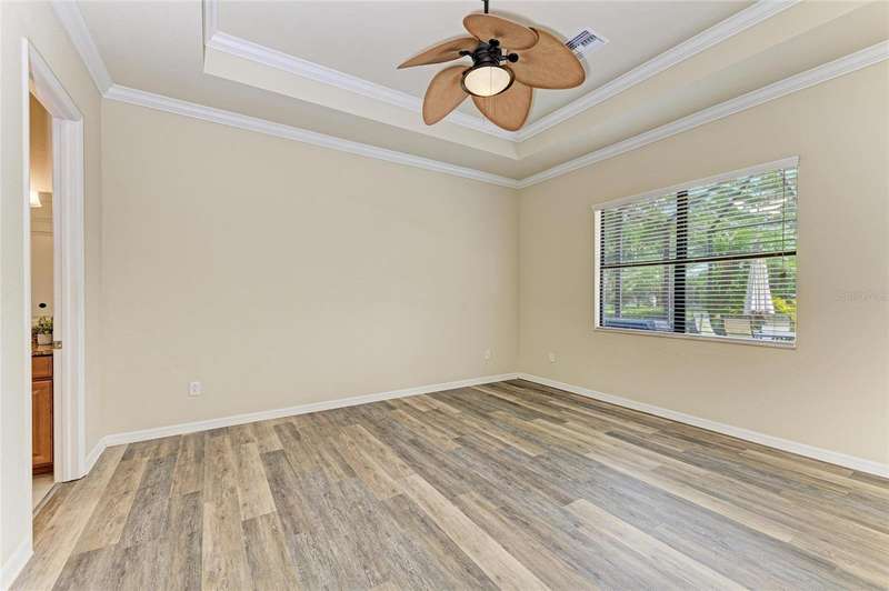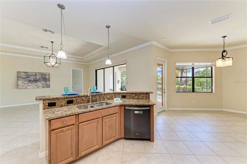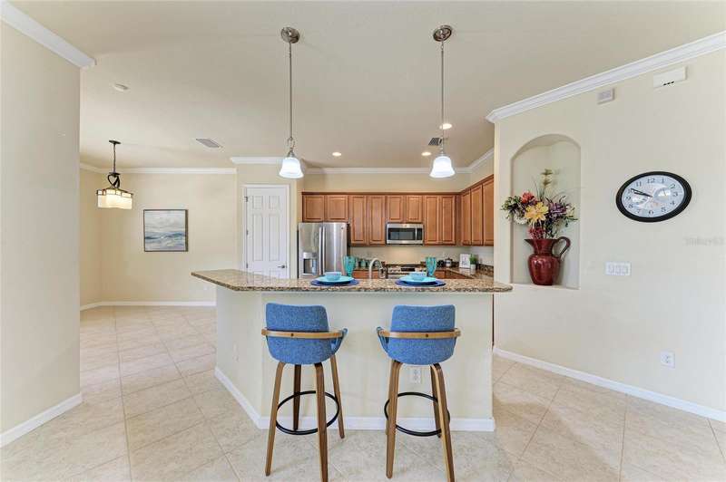 Under contract-accepting backup offers. Experience the best of Florida living in this sought-after Princeton floor plan, featuring 4 bedrooms, 2 baths, 2,244 sq. ft., and a 3-car garage—plus a heated pool and spa—set on a tranquil water-view homesite with stunning outdoor lighting. Step inside to a bright, open layout where the kitchen flows seamlessly into the living room—ideal for hosting friends and family. The living area impresses with tray ceilings, recessed lighting, and fully pocketing sliding glass doors that open to an expansive lanai, complete with a sparkling heated pool, spa, and generous entertaining space. The primary suite is a private retreat with a tray ceiling, room for a king-sized bed and sitting area, and direct lanai access. Its spa-like bath offers dual vanities, a soaking tub, a Roman shower, and an oversized walk-in closet with custom shelving. Three additional bedrooms provide versatility for guests, a home office, or hobbies, while an open dining room or additional sitting area adds even more options for entertaining or relaxing. Elegant finishes are found throughout, including tray ceilings, crown molding, 8-foot doors, 5-inch baseboards, extended tile in the main living areas, and rich laminate flooring in the bedrooms. Practical upgrades include a full laundry room with cabinetry, a paver driveway and lanai, and ground maintenance included in the HOA for true ease of living. Bridgewater at Lakewood Ranch is a gated, maintenance-free community of just 275 single-family homes—no townhomes or condos—offering manicured landscaping, walking paths, a park, playground, and gazebo overlooking a scenic lake. Low HOA fees cover lawn care, reserves, and common area upkeep, so you can spend more time enjoying world-class golf, top-rated schools (including Lakewood Ranch Preparatory Academy), the UTC Mall, dining, shopping, and nearby white-sand Gulf beaches. With quick access to I-75, Sarasota, Tampa, and St. Petersburg are just a short drive away. Move-in ready and brimming with upgrades, this home blends refined design with relaxed elegance in Florida’s #1 master-planned community.