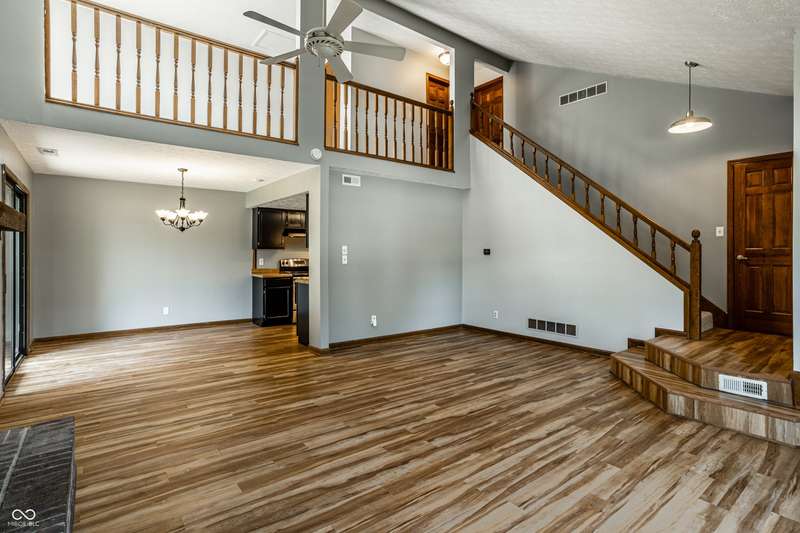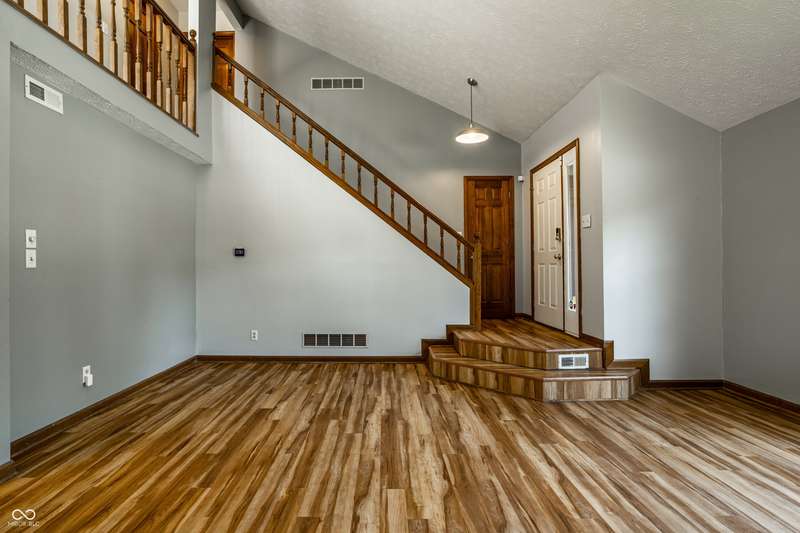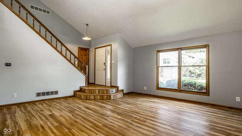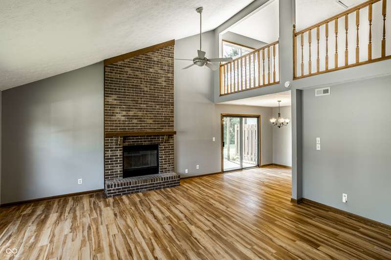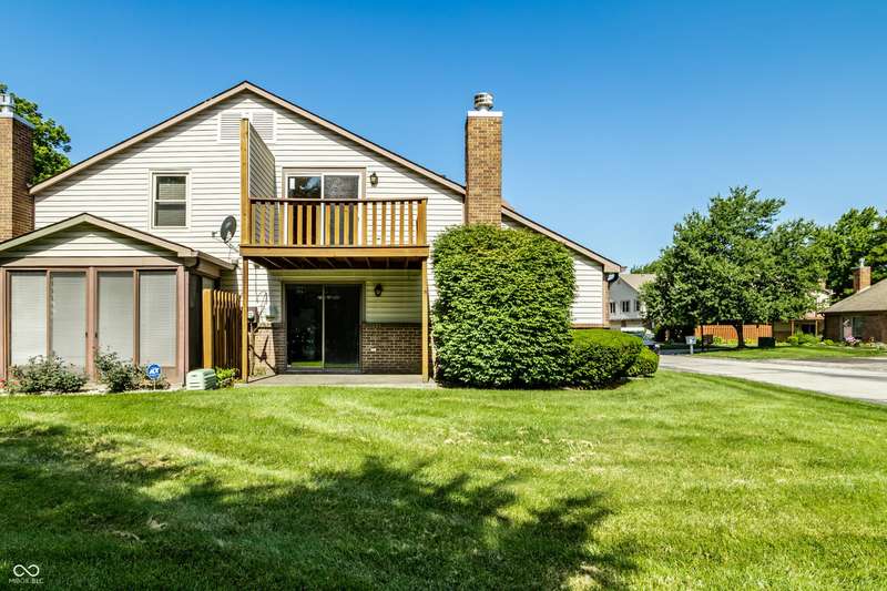 Step inside & you're greeted by an inviting entry with laminated hardwoods leading into the spacious great room, where cathedral ceilings & a wood-burning fireplace create a bright, airy atmosphere. The open layout flows seamlessly into the updated galley kitchen, with ample cabinet space & a cozy breakfast nook with an outdoor covered patio. A convenient 1/2 bath & laundry closet are located off the kitchen, near the 1-car garage entry. Upstairs, the private primary suite features elegant laminated hardwoods, a large walk-in closet, & an updated bath with a walk-in shower & double sinks. The versatile loft doubles as a 2nd bedroom, with a private deck perfect for enjoying the outdoors. Updates include new carpet, HVAC, and a water heater. Located just minutes from Ascension St. Vincent, Daubenspeck Community Nature Park, Rusty Bucket, Trader Joe's, and Costco, this condo offers the perfect blend of comfort & convenience. With an HOA that covers exterior maintenance, lawn care, and snow removal, you can enjoy a worry-free lifestyle.