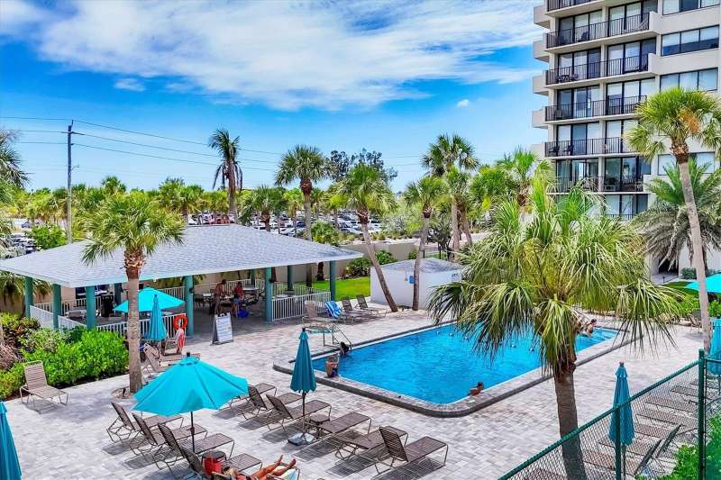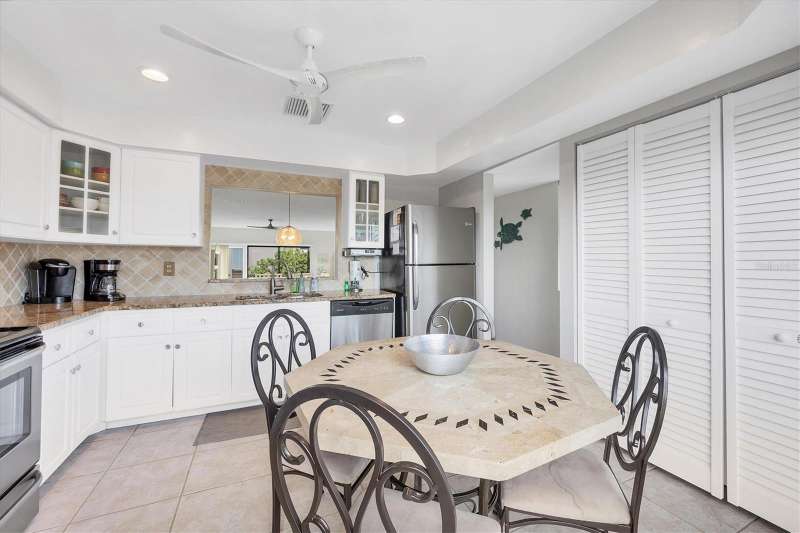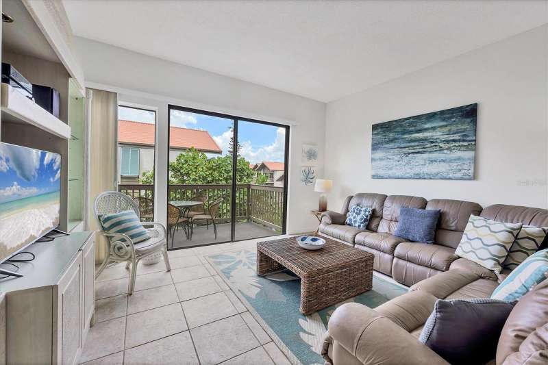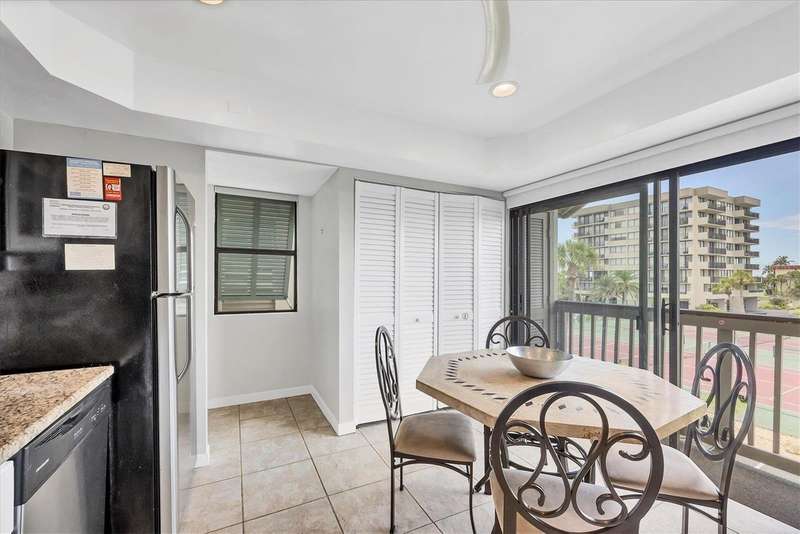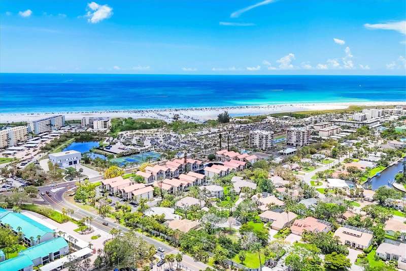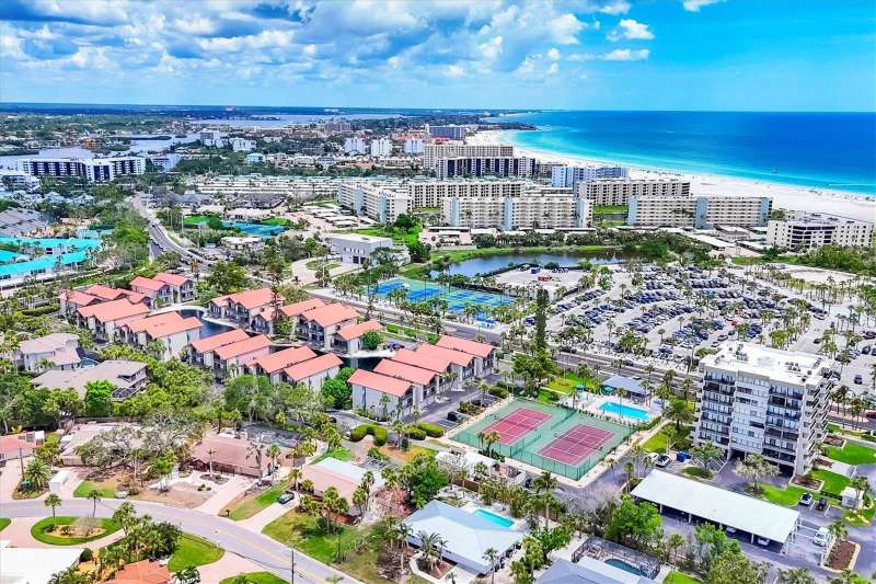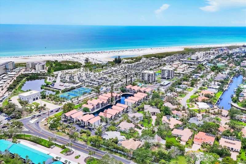 Discover this wonderful beach retreat and investment opportunity! Perfectly located in one of the most desirable locations in the community and just across the street from the soft, powdery sands of Siesta Key Public Beach ranked # 1 in the USA. This true split plan 2 -bedroom, 2-bath condo at Our House at the Beach offers the ideal setup for coastal living and rental potential. As you step inside the townhouse, you are greeted with high ceilings and bright open spaces. The eat-in kitchen is filled with natural light and connects seamlessly to the dining and living areas which open onto a spacious balcony for enjoying the gulf breezes and spectacular sunsets or winding down after a day at the beach. primary suite features a newly renovated bathroom with a walk-in shower, shaker-style vanity, generous closet space, and a private dressing area. This turnkey unit is sold fully furnished, including some fresh new pieces recently added by the owners. Currently used as an active rental on Airbnb and the rental community website. Weekly rentals are allowed and there is an on-site rental office which makes managing guests simple and convenient. The community offers resort style amenities including a heated swimming pool, two tennis courts, a pavilion with grilling stations. Your own private one-car garage with extra storage ensures there is no beach parking stress! Just load up your cart and head across the street to enjoy Siesta Key Beach, sand volleyball, pickleball & tennis, and Sunday Sunset Drum Circle. When you're ready to explore the island, there is easy access to the free Siesta Key trolley. You can explore the excellent local restaurants, bars, ice cream shops, boutiques, and grocery store which are only a short ride away. Whether you're looking for a beach getaway, an excellent income producing vacation rental, or a coastal home, this turnkey condo delivers the ultimate in comfort, convenience, and laid-back island lifestyle. Don’t miss your chance to own a piece of paradise on Siesta Key.