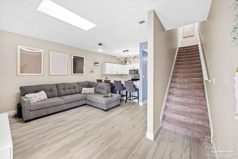 WELCOME HOME! This beautiful two-story townhome offers a perfect blend of style, comfort, and convenience with about $20,000 worth of updates including KITCHEN, BATHROOMS, FLOORING, COUNTERTOPS, FIXTURES, INTERIOR PAINT, EPOXY FLOORING IN GARAGE, TURF IN BACKYARD. The floor plan features an open concept living area on the first floor, and three well-appointed bedrooms, with one conveniently located on the first level and two more upstairs. Enjoy the luxury of two full bathrooms ensuring utmost convenience for you and your guests. The lower level of this home showcases sleek and easy-to-maintain tile flooring, creating a modern and clean atmosphere throughout. The open kitchen/living area is perfect for both everyday living and entertaining. You'll find ample counter space and an additional breakfast bar, making meal preparation a breeze. This townhome offers a one-car garage for your convenience, along with two additional parking spots in the driveway. Step outside to your fenced back patio, complete with a storage room. It's the ideal spot for enjoying outdoor grilling, gardening, or simply relaxing in your private oasis. SCHEDULE YOUR SHOWING TODAY!
