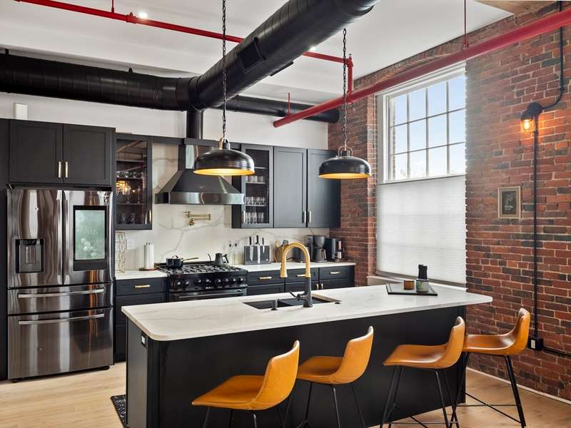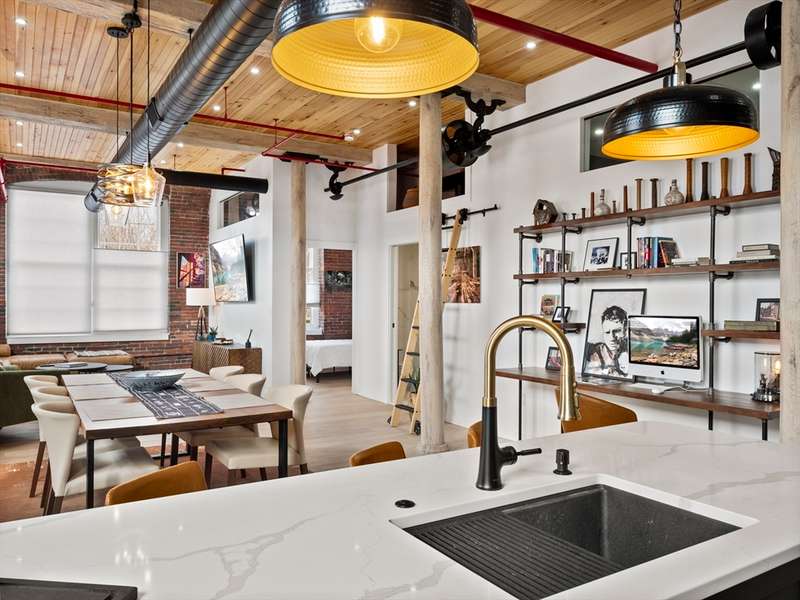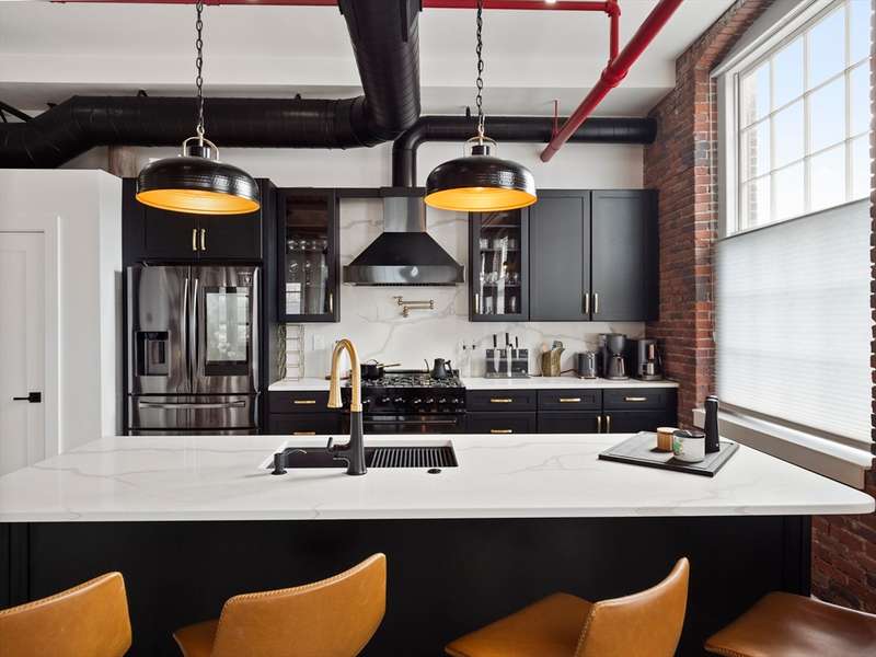 SHOWING FOR BACK UP and WELCOME BACK UP OFFERS. BUYER HAS HOME SALE CONTINGENCY. Step into this sleek and spacious 2-bed, 2-bath condo that blends industrial charm with modern luxury. Soaring ceilings and oversized windows flood the open-concept living space with natural light, while exposed brick and beams add just the right amount of character. The kitchen? A total chef s dream Calcutta quartz countertops, high-end appliances, and stylish cabinetry make it the heart of the home (and a serious conversation starter when you're entertaining). Both bedrooms are designed for comfort and style, and the primary suite takes it to the next level with a spa-like bathroom featuring an oversized glass shower and freestanding soaking tub your personal retreat after a long day. Live, work, and play all in one place this unit sits in the Kitson Business Center, perfect for anyone looking for a dynamic live/work setup.