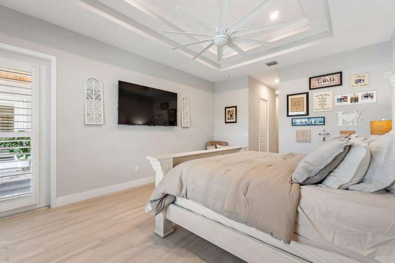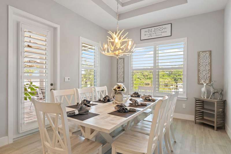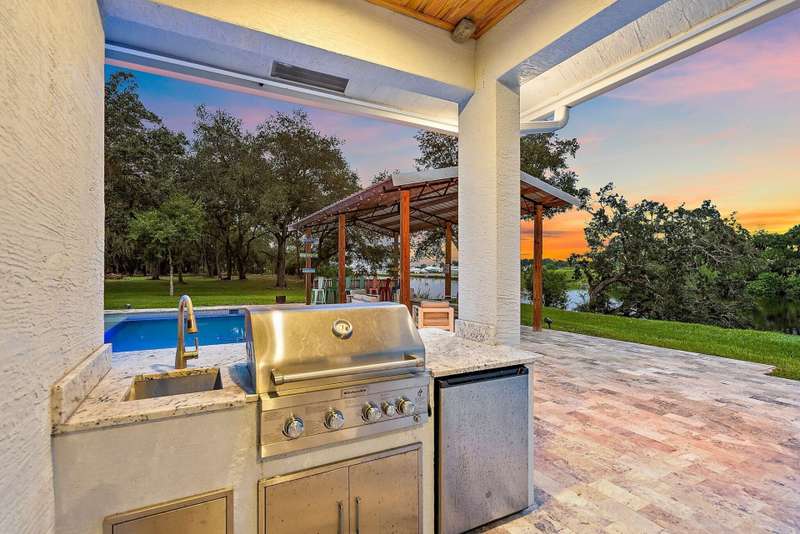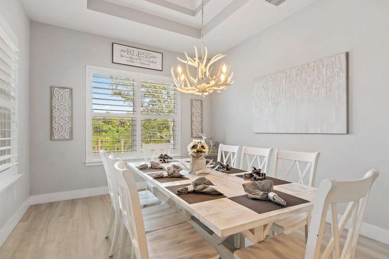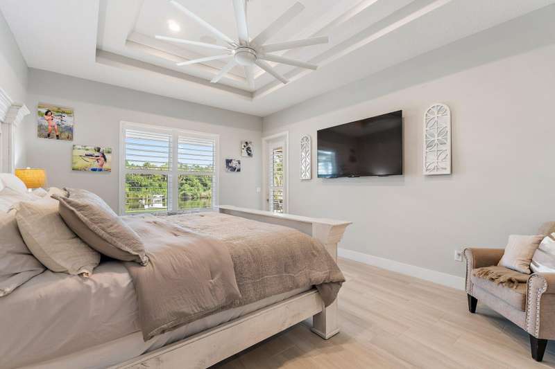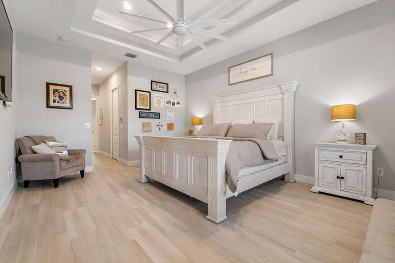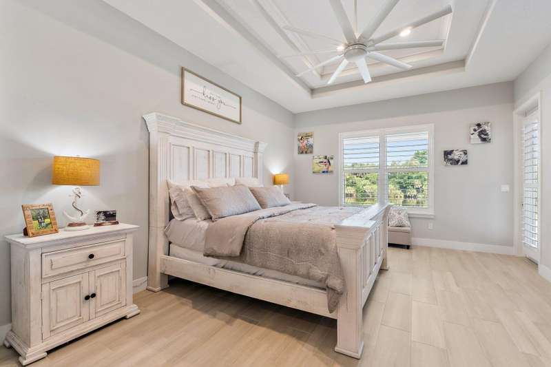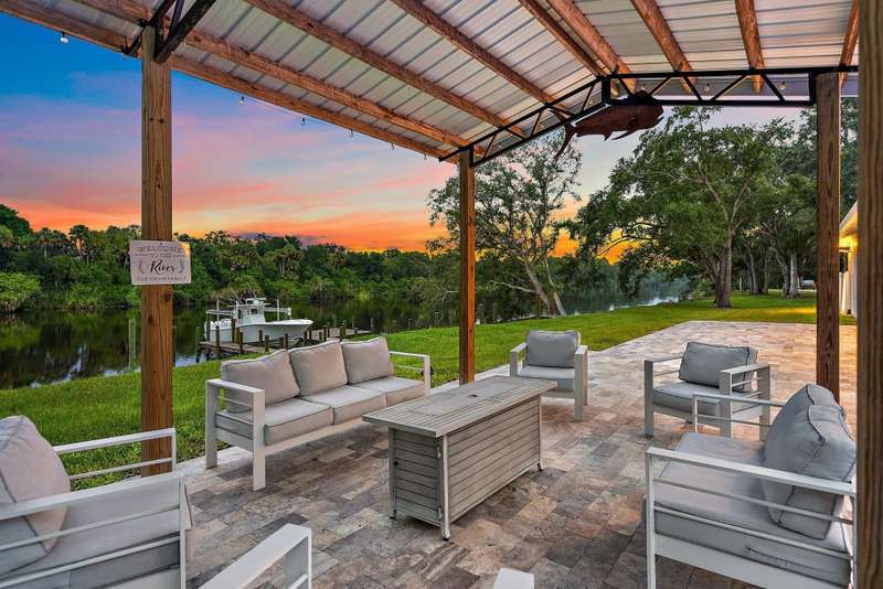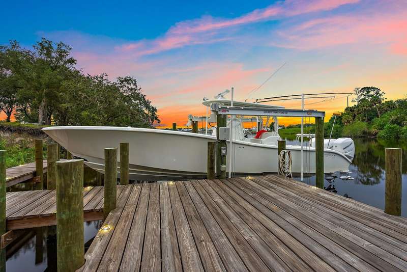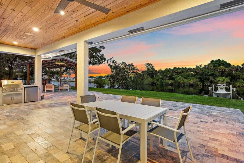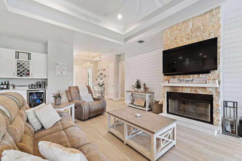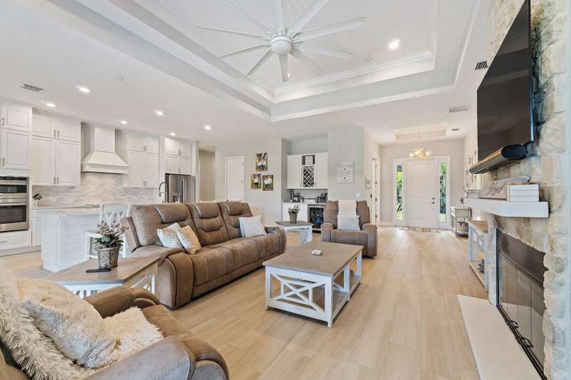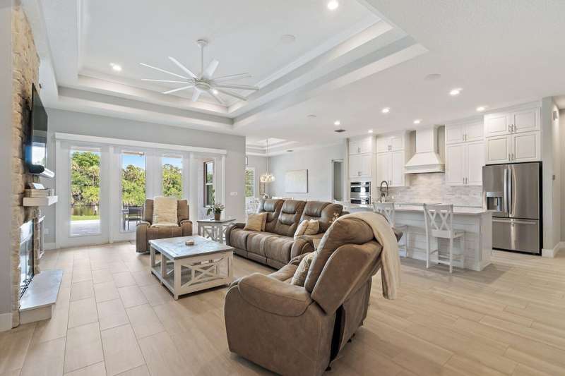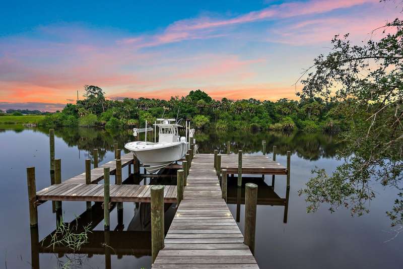 Welcome to your private waterfront retreat on the St. Lucie River. This newly constructed, CBS-built residence in Indiantown, Florida offers the perfect blend of luxury, serenity, and recreation. With 2,833 square feet under air (4,088 total), the home is thoughtfully designed with four bedrooms, three baths, and exquisite finishes including wood-look tile flooring, plantation shutters, impact windows and doors, a metal roof, and soaring 12-foot coffered ceilings beneath a 10-foot beam roof. The chefs kitchen is a showpiece, featuring a seating island, wet bar, and walk-in pantry, complemented by a formal dining room for entertaining. Retreat to the spacious master suite, where a glamorous spa-like bath and custom built-in closets provide everyday indulgence.