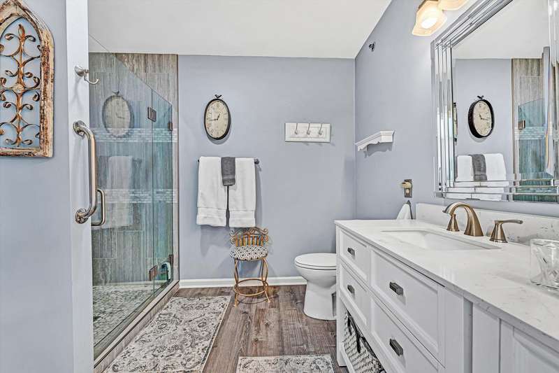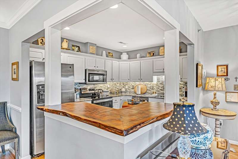 Enjoy an abundance of natural light along with breathtaking sunrises and sunsets from this gorgeous 2BD/2BA end-unit condominium. Featuring all new flooring throughout, this home offers an open-concept kitchen with granite countertops, stainless steel appliances, and a custom-crafted walnut counter. The primary suite includes a luxury tiled walk-in shower with grab bars, a new double vanity, updated flooring, and modern lighting. Every closet--including the pantry--has been customized with organizers, making this home truly move-in ready. Experience maintenance-free living with a sense of security and community. Additional perks include a private storage unit in the garage and a designated parking space (#25).