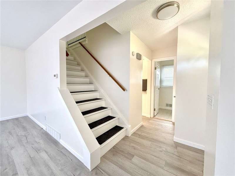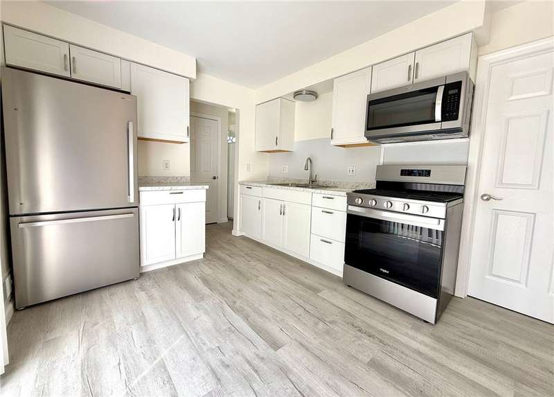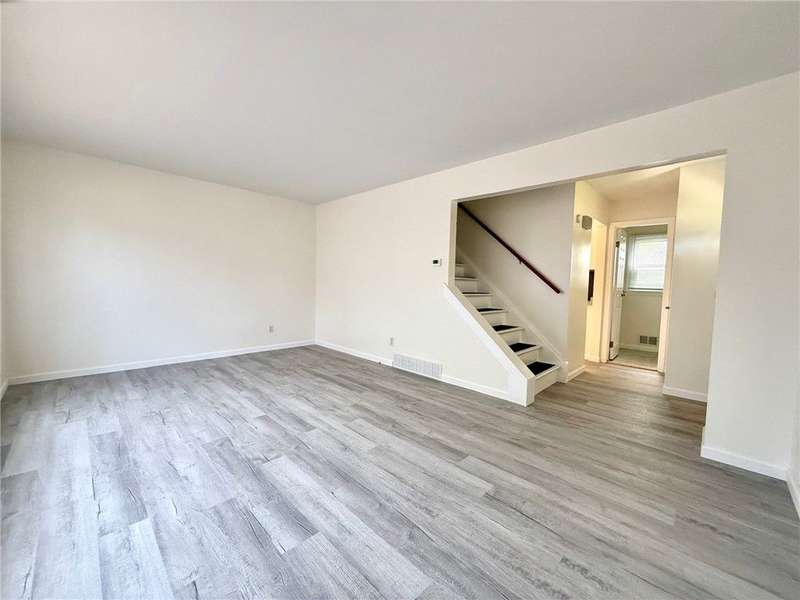 Move right in to this beautifully updated 2 bedroom, 1 1/2 bath townhouse style apartment*This home has been thoughtfully refreshed from top to bottom with all new flooring, brand new kitchen featuring stainless steel appliances, and modernized bathrooms*Eat in kitchen features a slider to a private patio area, perfect for grilling*Enjoy the practicality of in-unit laundry in the basement, spacious bedrooms with ample closet space, and a comfortable layout perfect for everyday living*Situated close to dining, entertainment, shopping and bowling alleys, this location combines convenience and comfort in one*Off street parking for one car*