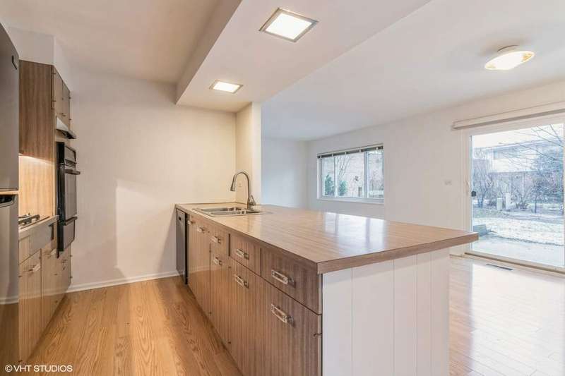 Charming split-level townhome in Carriage Hill. Original hardwood flooring throughout in excellent condition. Walk through the landscaped front yard into your spacious living room on the main level. 2 bedrooms on the upper level with great western light and extra large closet space. Lower level is home to the kitchen, family/dining area and a powder room with laundry. Tons of additional extra storage available in crawl space. Owner completed lots of updates in 2024 including adding a new refrigerator, dishwasher, washer, dryer, hot water heater, installed new windows in both bedrooms, family room and patio door. In 2025 owner added new kitchen cabinets and freshly painted throughout, new toilet in main bath, new light fixtures in powder room and family room, and new furnace. Conveniently located a short distance to the train, shopping and restaurants in downtown Glenview, the library and surrounded with lovely walking paths. No pets and minimum credit score 650- FIRM. Direct all inquiries to co-list.