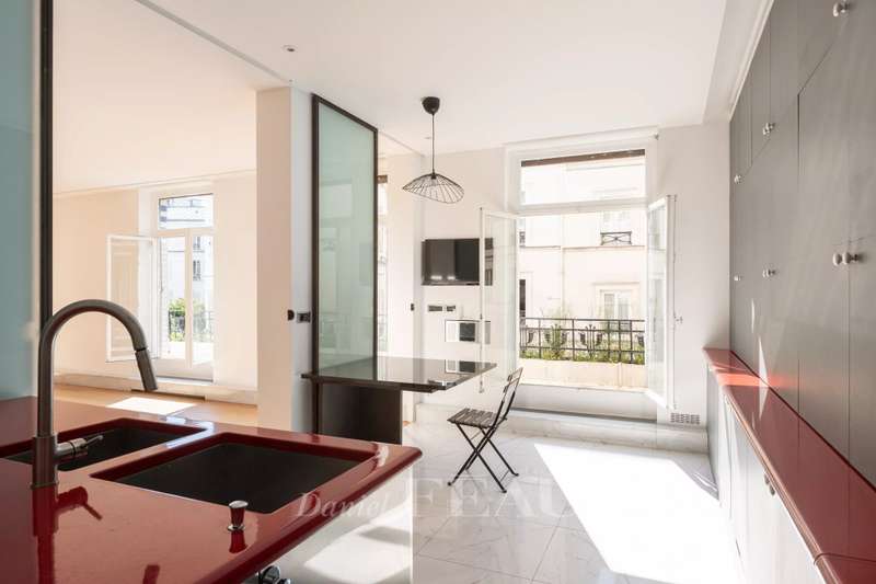 This 309 sqm apartment is on the second floor of an iconic 1930s building with a lift located by the shops and schools in the capital’s rue Vavin. In very good condition and featuring high ceilings, it includes an entrance hall, a triple living/reception room bathed in sunshine and opening onto a continuous balcony, a spacious kitchen with dining facilities, a master suite with a bathroom and dressing room, two further bedrooms and a shower room. The bedrooms overlook a peaceful courtyard. With a cellar.