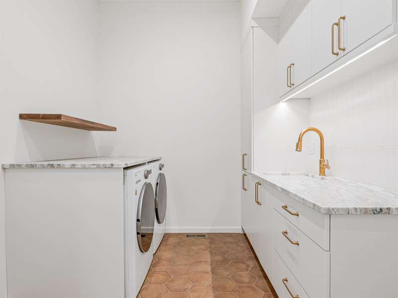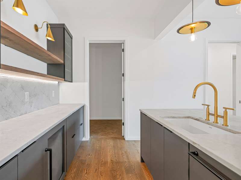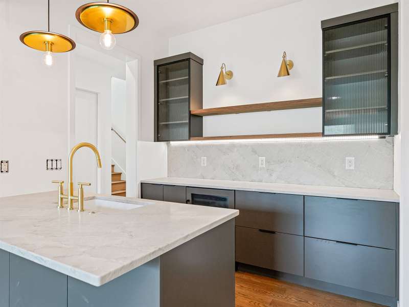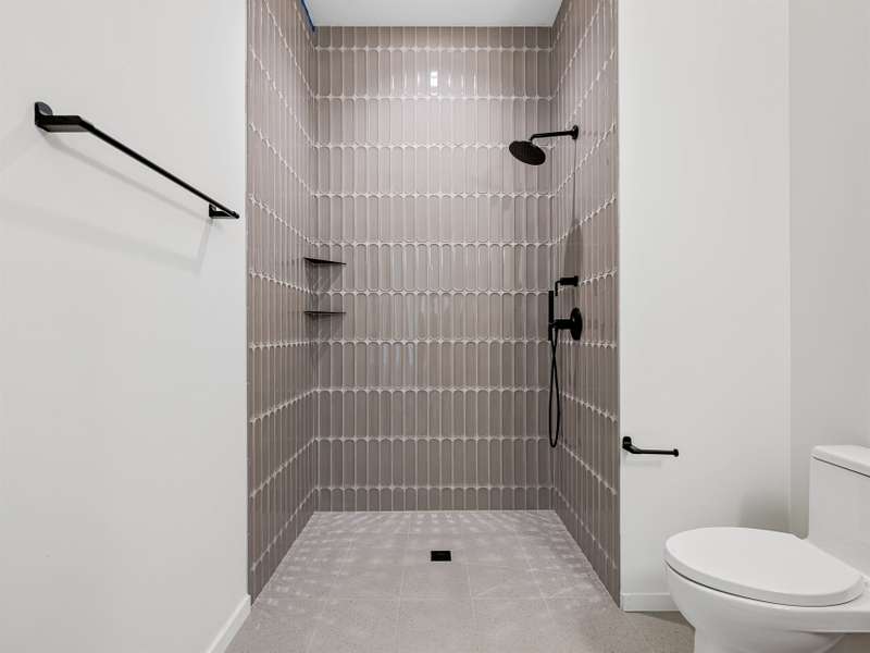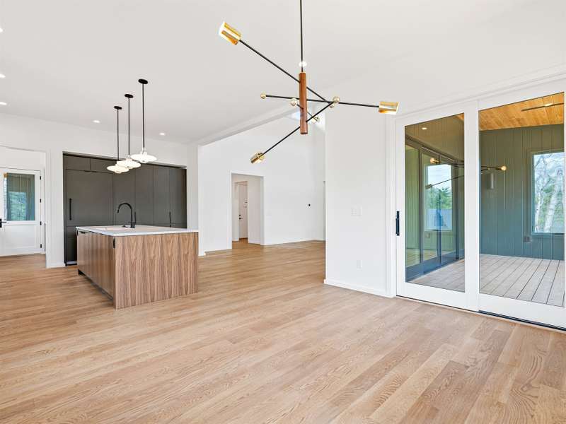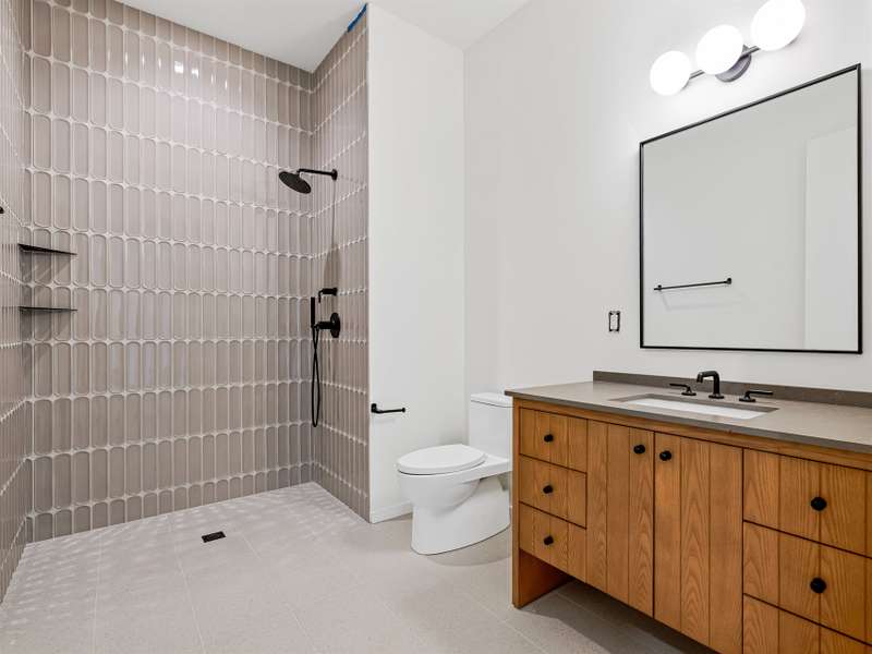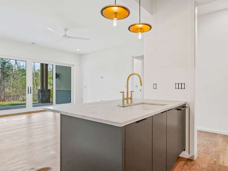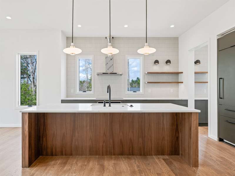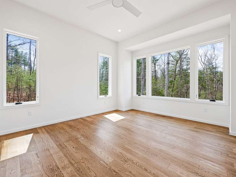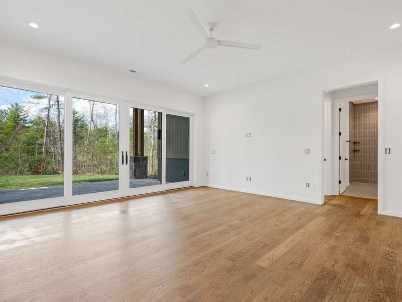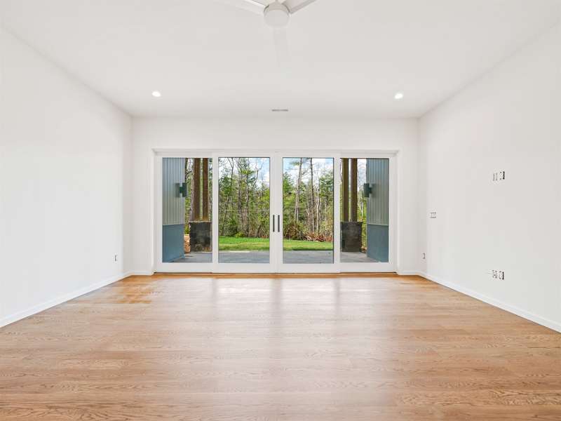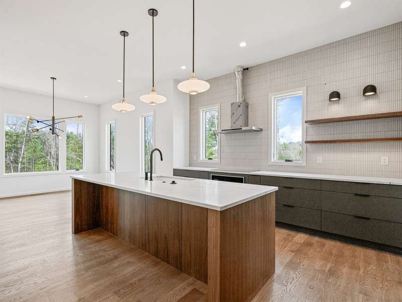 Construction completed on this contemporary new build with sleek mosaic stone and James Hardie Artisan V-groove vertical siding, a stone foundation and topped with a standing seam metal roof. A steel frame and glass panel front door invites you into a hall leading to the main open spaces with a light-filled office on the right. Ultimate sleek kitchen with island, walk in pantry and GE Monogram appliances. 5" select white oak flooring and tiled bathrooms throughout. Owners suite on the main level with a comfortable walk in closet and separate tub and shower. Gather comfortably on the front or back porch, in the downstairs living room with wet bar and a wine cellar or outdoor patio. This site backs up to woods near the Blue Ridge Parkway for extensive wooded privacy. Enjoy miles of trails, parks, fitness center, saline pool, tennis, pickleball, bocci, 24/7 security and three gated entrances.