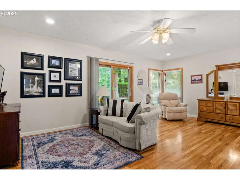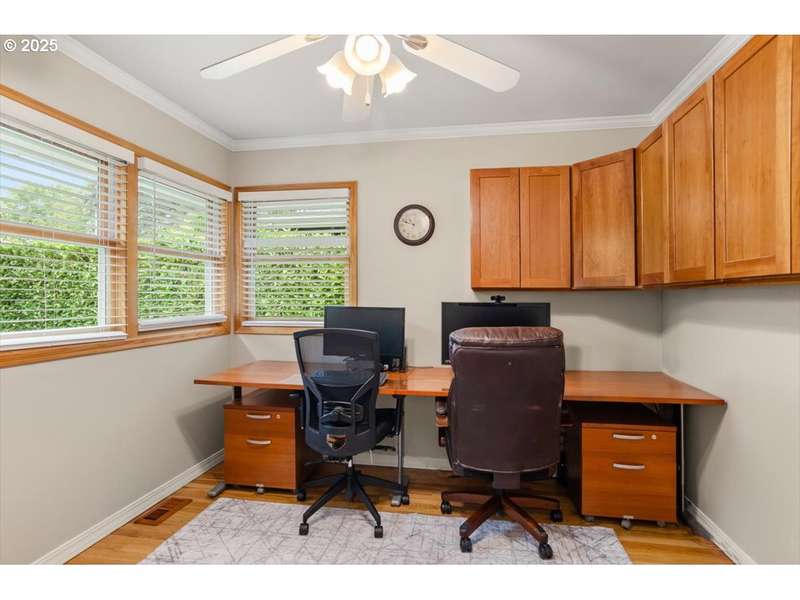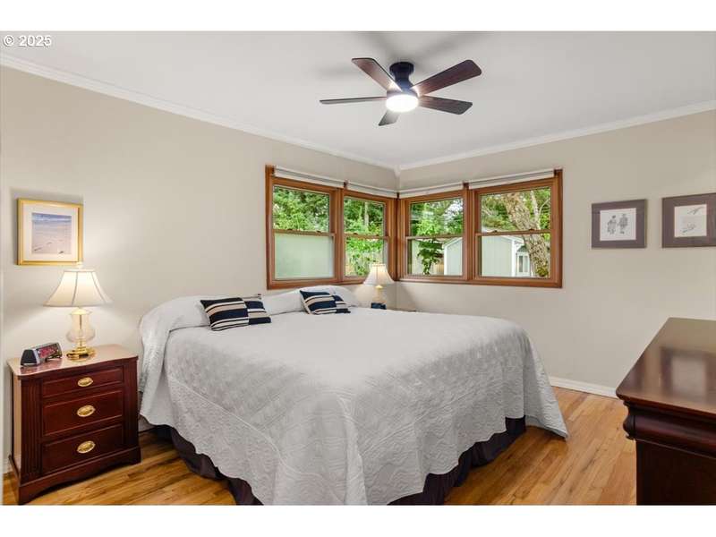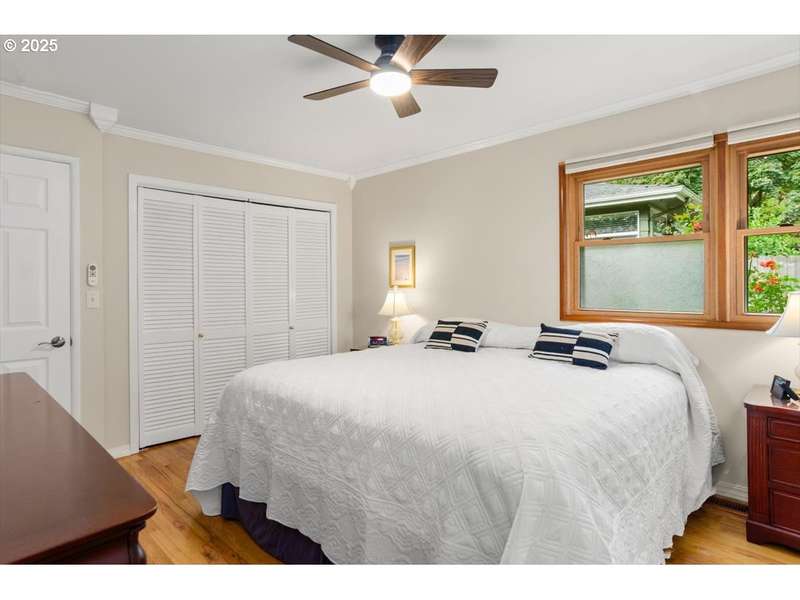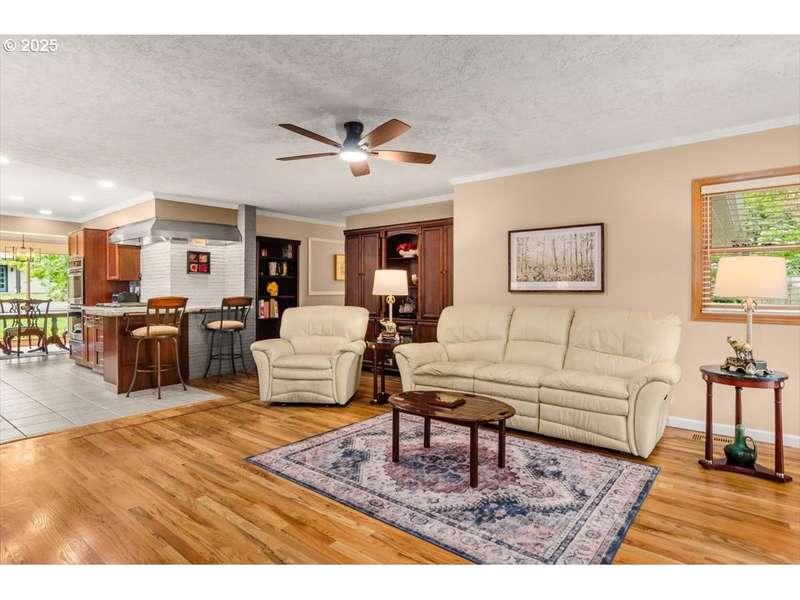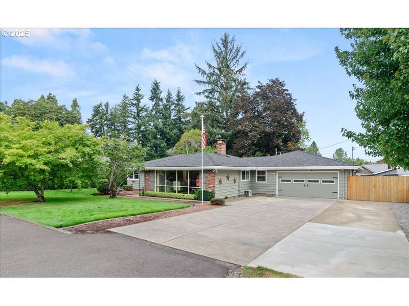 Discover timeless Mid-Century Modern style with one-level living and over 2,400 square feet of comfort, including separate living or guest quarters offering an incredible opportunity for multi-generational living with a kitchenette, bathroom with double sinks and walk-in shower, backyard access, and private exterior entrance. The home showcases hardwood floors, built-ins, original tile, crown molding, and french doors. Lovingly cared for and thoughtfully improved, updates include a high-efficiency gas furnace and central A/C (2023), roof (2018), exterior paint (2017), hot water tank, electrical panel, and most windows replaced. The stunning kitchen boasts granite countertops, double ovens, newer appliances including a 5-burner gas cooktop, refreshed cabinetry, pantry, eating bar, and tile flooring. A spacious living room with a 2-sided gas fireplace flows seamlessly into the dining room with floor-to-ceiling windows and abundant natural light, while a cozy family room off the kitchen offers slider access to the backyard. The large .31-acre lot provides privacy with a fenced backyard, patio, three sheds, and a level lawn perfect for entertaining, kids, and pets, plus a long driveway with plenty of parking space and room for a 38’ RV or boat. Appliances included, move-in ready convenience! Located on a quiet dead-end street and situated in unincorporated Washington County with lower property taxes! Ideally located within walking distance of Red Tail Golf Course, Harman Swim Center and Park and local schools, with easy access to Washington Square Mall, Highway 99, 217, shopping, restaurants, and all the daily necessities. Schedule your tour today and make this special home your own!