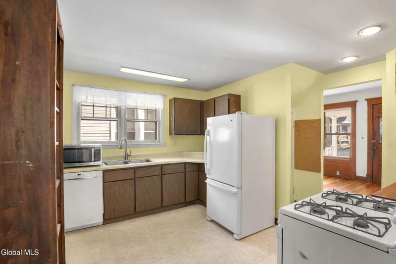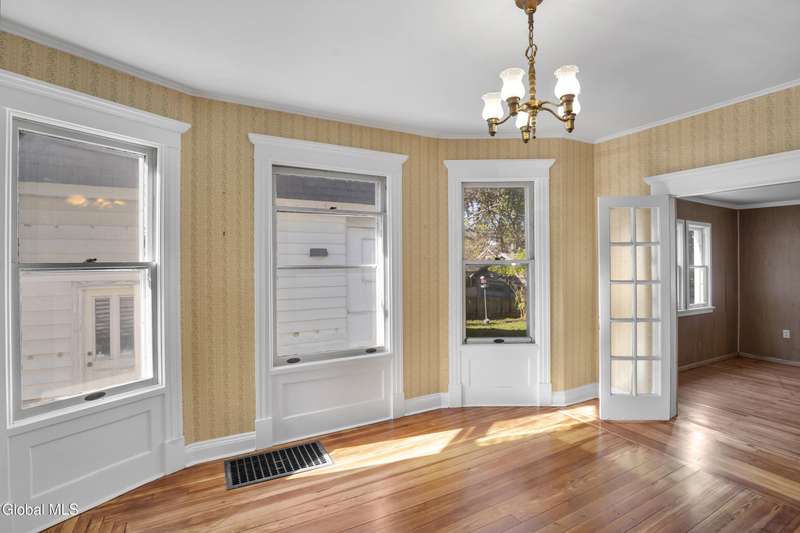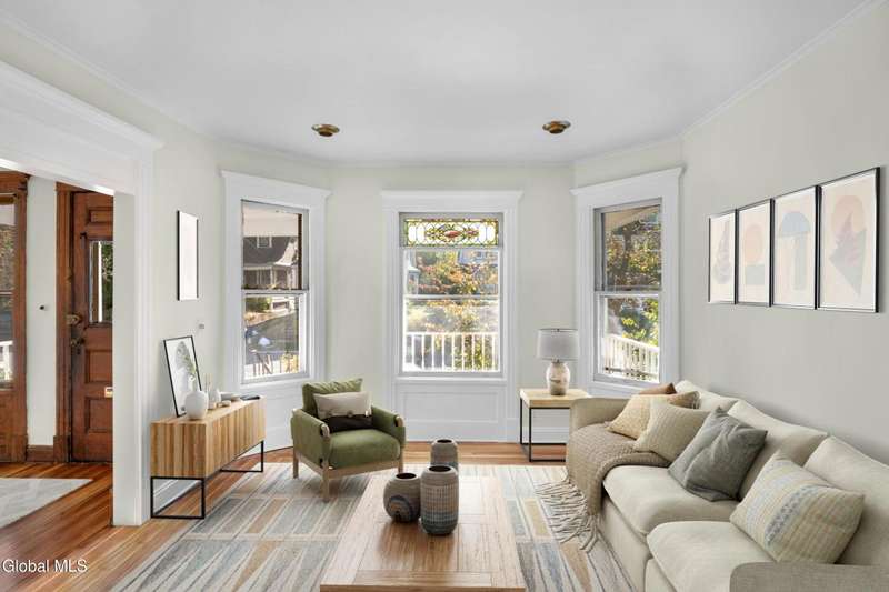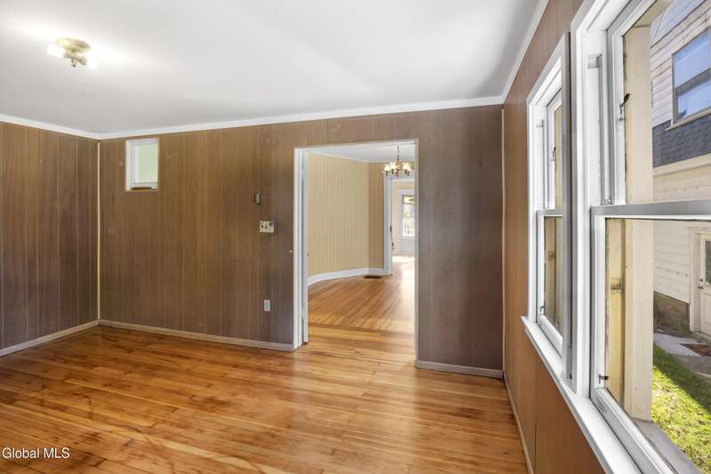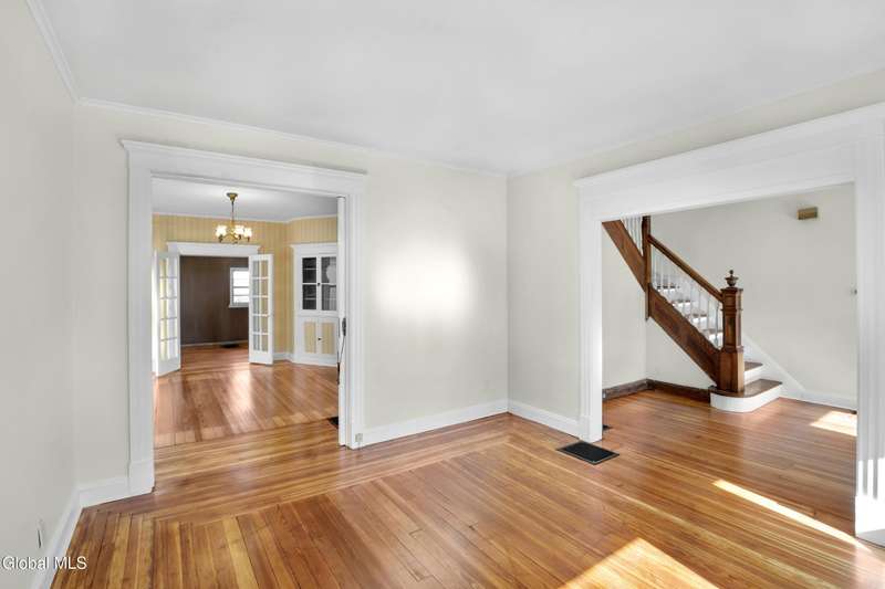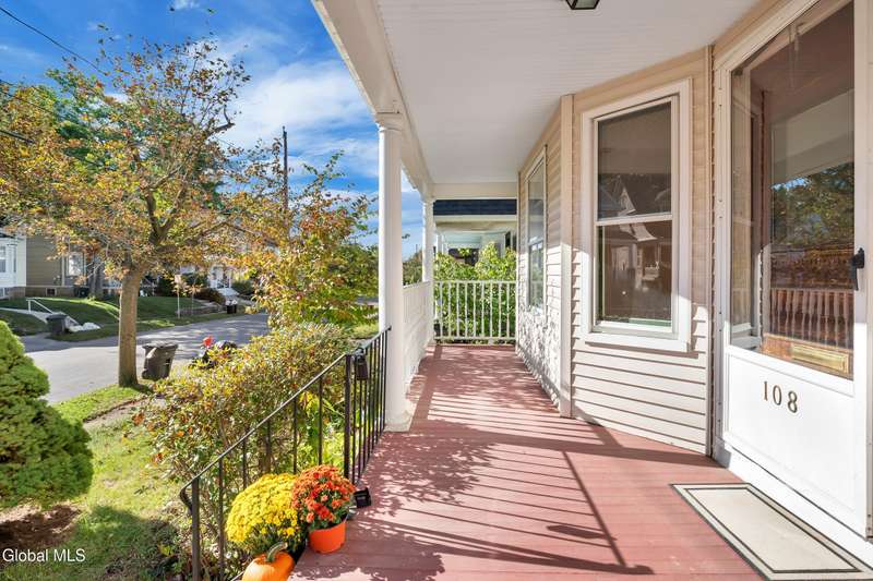Seller is offering a $5,000 credit at closing toward home improvements. Charming, Large Colonial with Flexible Space in Schenectady. Welcome to this inviting 4-bedroom, 1.5-bath Colonial offering 1,837 sq ft of versatile living space. The front foyer welcomes you into a sunny living room with charming pocket doors that open to the formal dining room. Beyond the dining area sits a large bonus room-ideal for a fifth bedroom, family room, home office, or whatever your lifestyle needs. Freshly refinished hardwood floors flow throughout the first level which includes a convenient half bath. New paint throughout the house! Head upstairs to find four roomy bedrooms and a full bathroom. The full walk-up attic and large basement offer plenty of storage plus room to expand. Step outside to the welcoming front sitting porch or BBQ on the back deck (durable Trex decking) overlooking the backyard. The property includes a one-car garage (as-is), and recent updates include the back roof over the study (2014), a brand-new garage roof (2025) new back deck (2021) and a new high-efficiency furnace (2017). A large, comfortable, well-maintained Colonial home with smart layout and practical updates. Schedule your showing today!