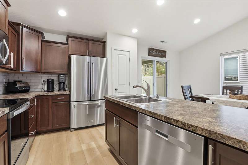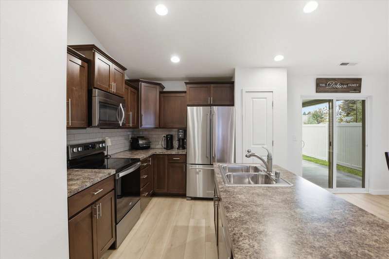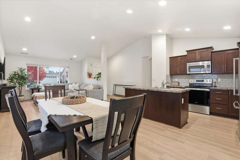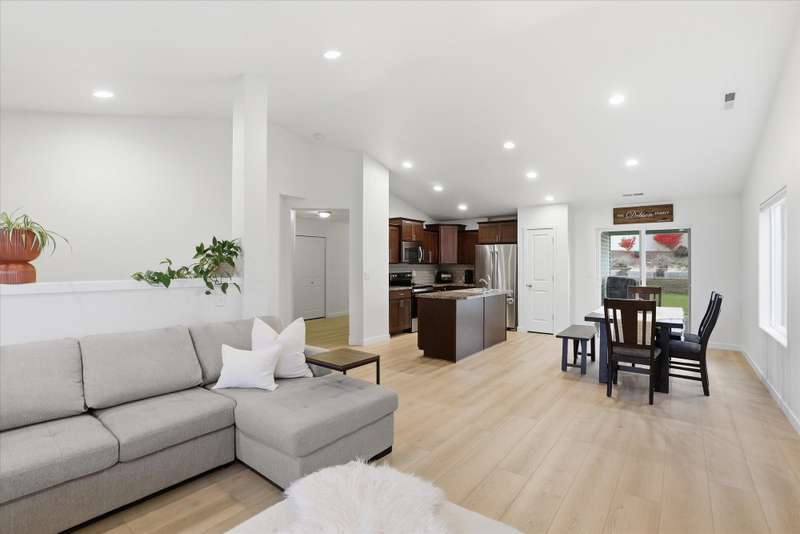 Don’t miss this rare opportunity to own a turn-key rancher in the highly sought-after River District! Just steps from Orchard Park and Centennial Trail access, this 3-bedroom, 2-bath home blends comfort and practicality in every detail. Enjoy vaulted ceilings, covered front and back patios, and an oversized 2-car garage. Professionally landscaped and beautifully updated with new LVP flooring, fresh interior paint, and a new trim package throughout—this home is truly move-in ready!