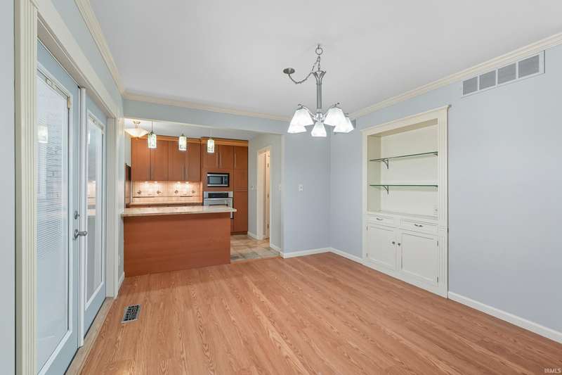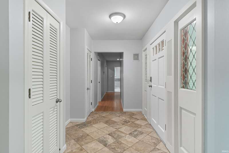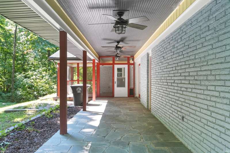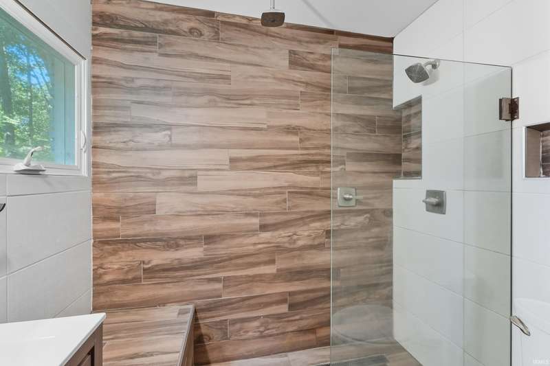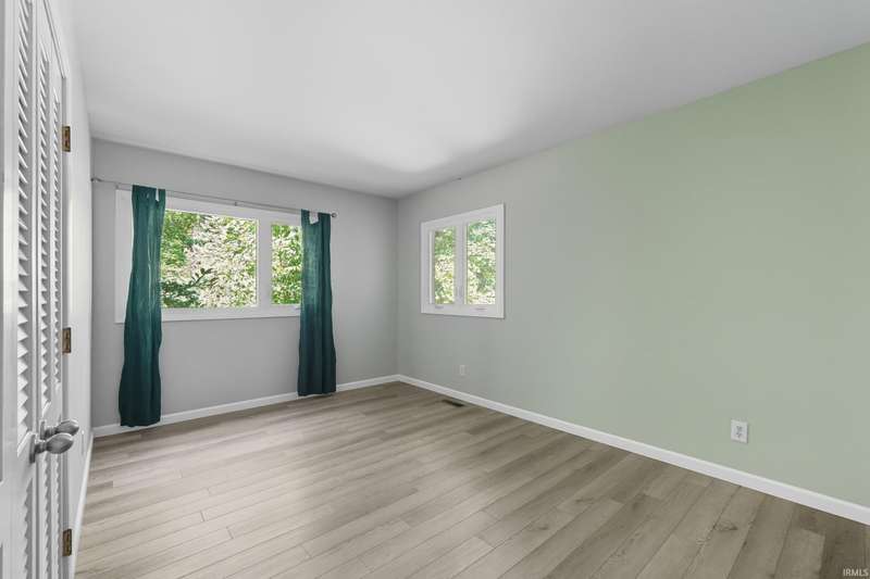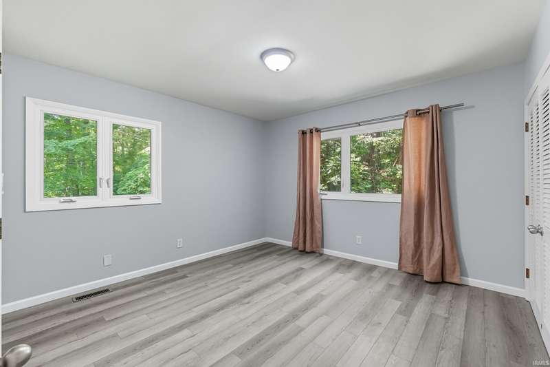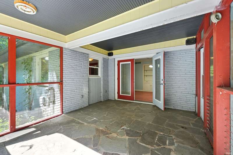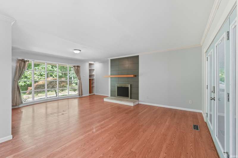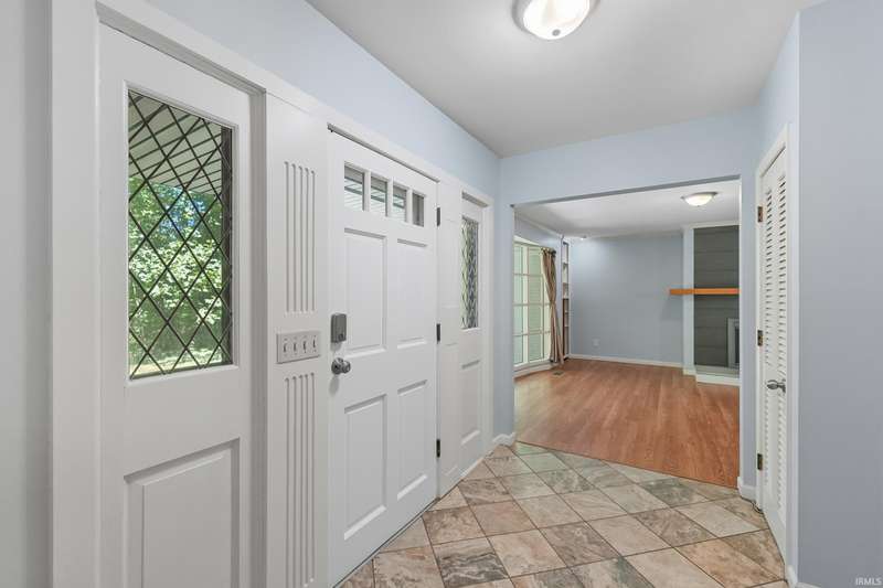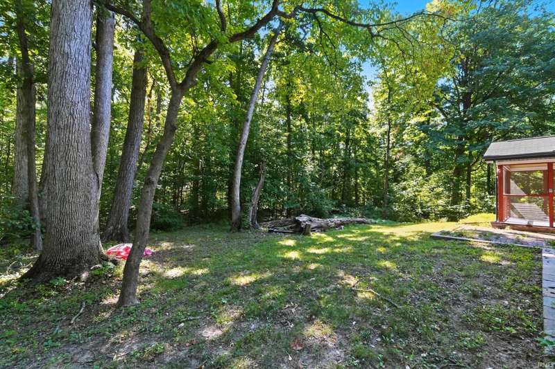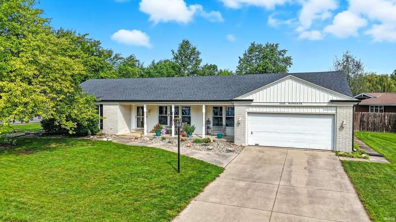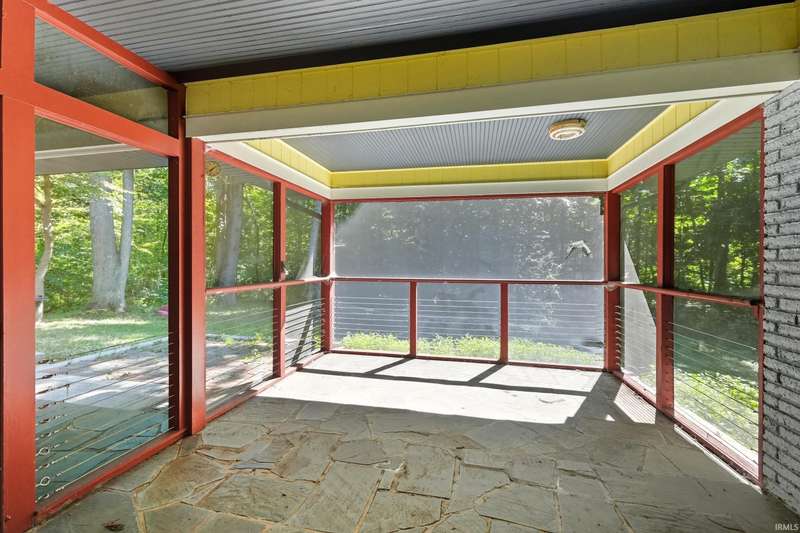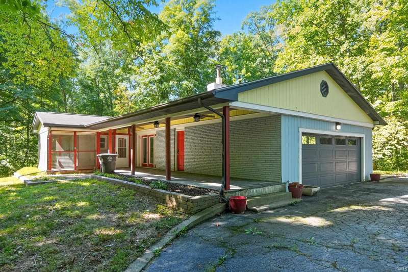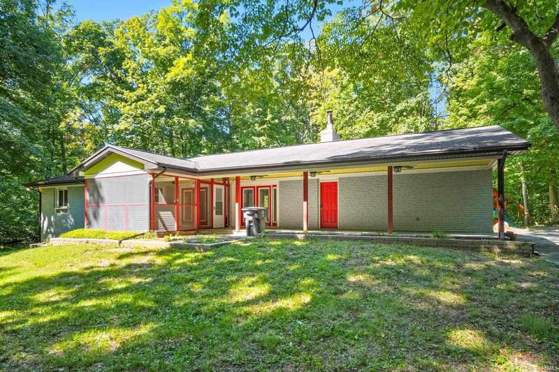 Tucked away on a 1.8-acre densely wooded lot, this mid-century modern–styled ranch offers the perfect blend of privacy and convenience within Southwest Allen County Schools. Just minutes from Lutheran Hospital, the home feels like a secluded retreat surrounded by nature. The open living areas feature large windows that frame beautiful wooded views, built-in details, and a semi-open floor plan with hard surface flooring throughout the main level. The home includes three bedrooms—one a master suite with updated bathrooms—plus a partially finished basement with an additional living room, bonus room, and generous storage space. Enjoy the outdoors from the wrap-around porch and multiple seating areas overlooking the trees. A two-car garage and circular driveway provide ample parking and convenience.