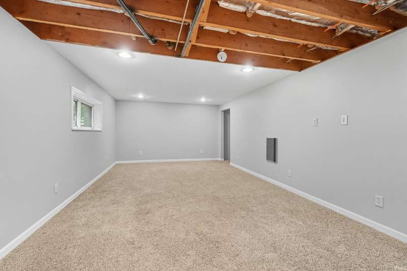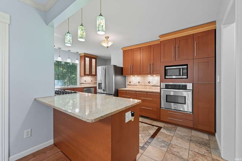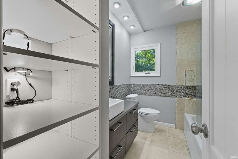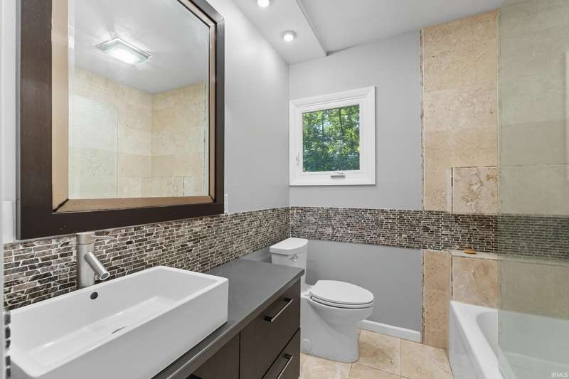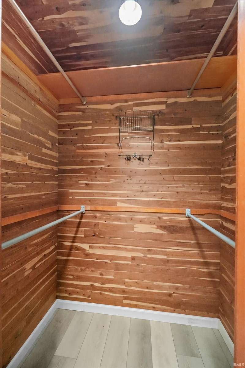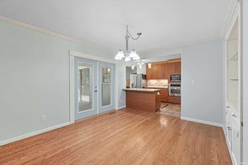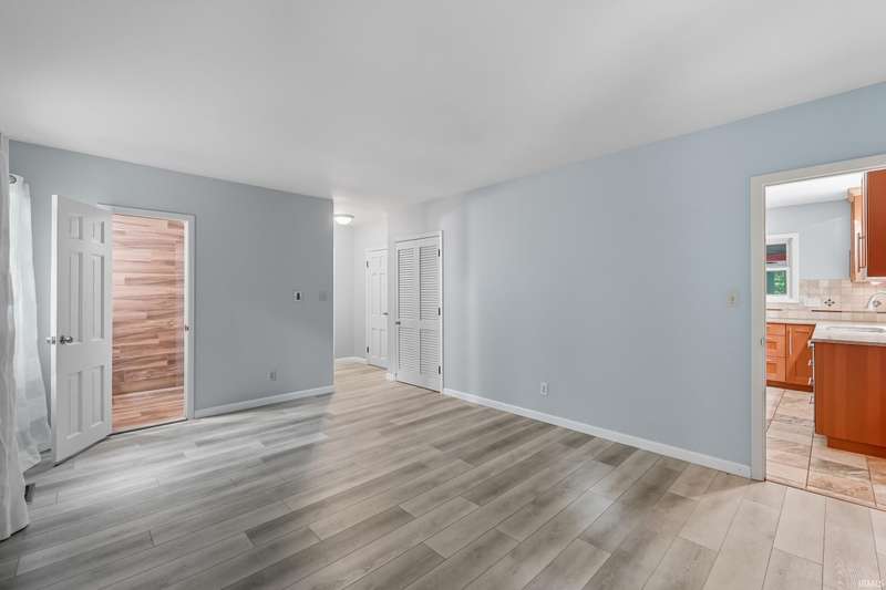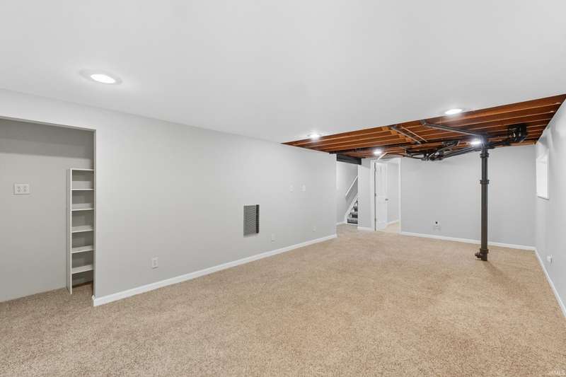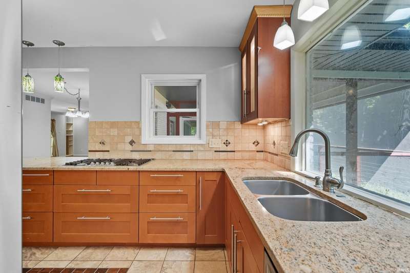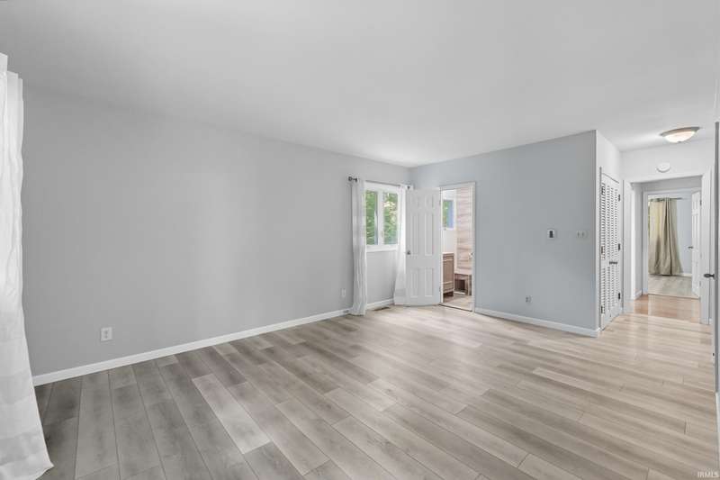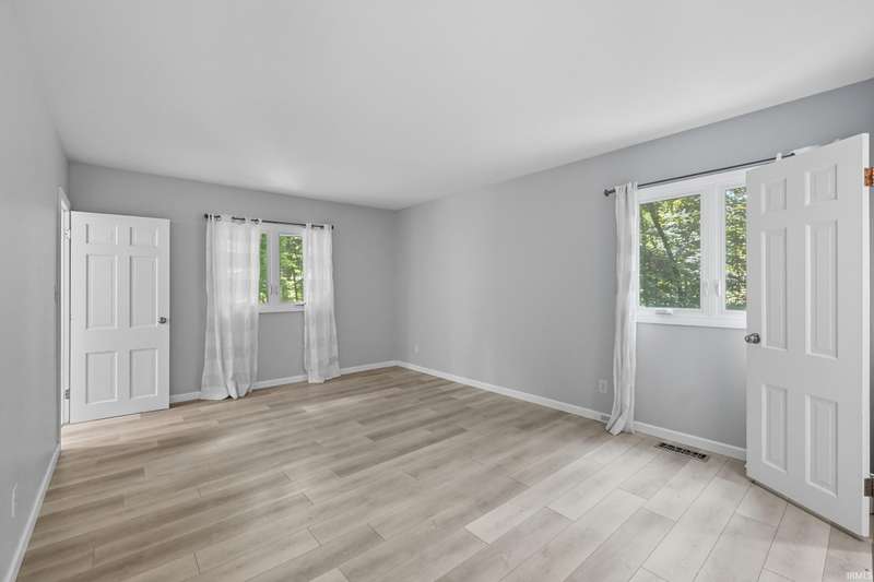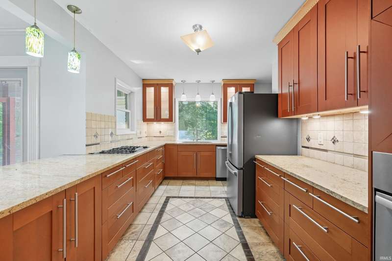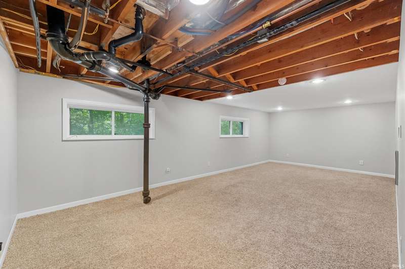 Tucked away on a 1.8-acre densely wooded lot, this mid-century modern–styled ranch offers the perfect blend of privacy and convenience within Southwest Allen County Schools. Just minutes from Lutheran Hospital, the home feels like a secluded retreat surrounded by nature. The open living areas feature large windows that frame beautiful wooded views, built-in details, and a semi-open floor plan with hard surface flooring throughout the main level. The home includes three bedrooms—one a master suite with updated bathrooms—plus a partially finished basement with an additional living room, bonus room, and generous storage space. Enjoy the outdoors from the wrap-around porch and multiple seating areas overlooking the trees. A two-car garage and circular driveway provide ample parking and convenience.
