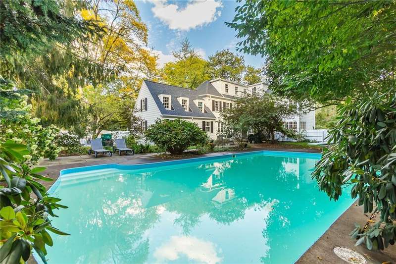 Absolute charmer on beautiful Allens Creek Road! Conveniently located near everything you could ever want or need?just minutes from three golf courses and the expressway, in an award-winning school district. Offering over 3,300 square feet of character blended perfectly with the modern conveniences of today. This gracious home features 5 bedrooms, 3 full baths, generously sized rooms, built-ins, and magazine-worthy trim details. The primary suite opens with a Dutch door to a rooftop balcony overlooking the patio, gardens, and Gunite pool perfect for enjoying your morning coffee. There are two wood-burning fireplaces and round-pegged hardwood floors throughout the first floor. Enjoy entertaining in the spacious dining room adorned with mirrored sconces, brass and glass doorknobs, and charming architectural touches. Storage abounds with a surprising number of closets?including a card table closet in the living room, ironing board closets, and even a whimsical "Harry Potter" closet under the stairs. The third floor offers a perfect private suite for guests, while the screened porch off the dining room is sure to become your favorite afternoon retreat. The lower level includes an entertainment room, fruit room, laundry area, and beautiful beadboard detailing. This home has been meticulously cared for and thoughtfully updated. Recent updates include: exterior painting by Tim McGrath (brush-painted, not sprayed) in 2024, new architectural 50-year shingle tear-off roof and gutter system, new pool pump and high-efficiency pool heater (2021?2022), concrete driveway (2021), high-efficiency smart furnace and A/C (2020), refinished hardwood floors (2019), and a refreshed kitchen with quartz countertops, subway tile backsplash, new sink, faucet, and flooring (2017). Town sq ft is incorrect... Sq ft of 3305 was measured by the last appraiser. Come see this rarely available piece of history for yourself! Delayed negotiations 10/14 at 12:00 PM.