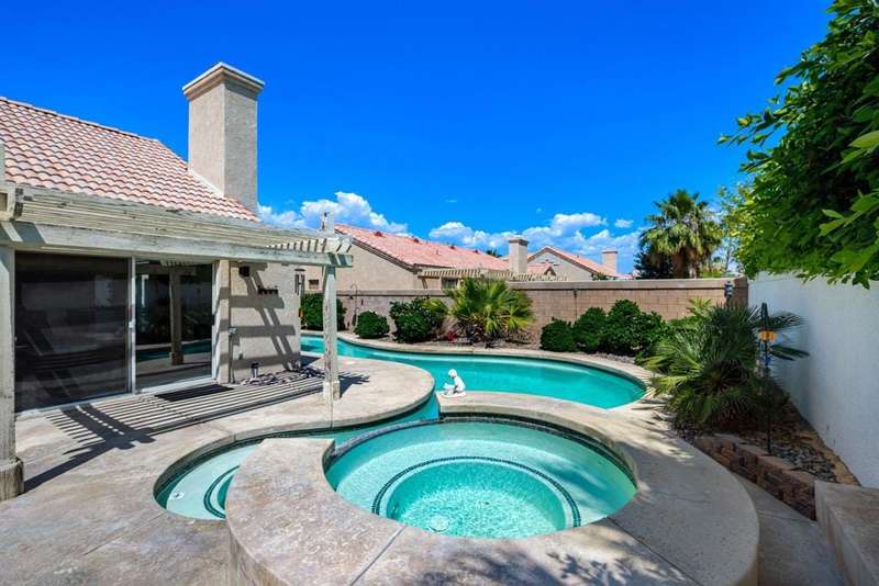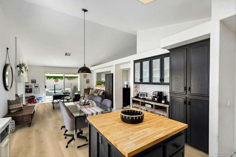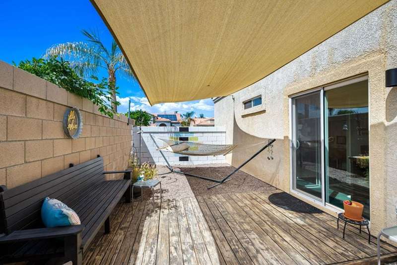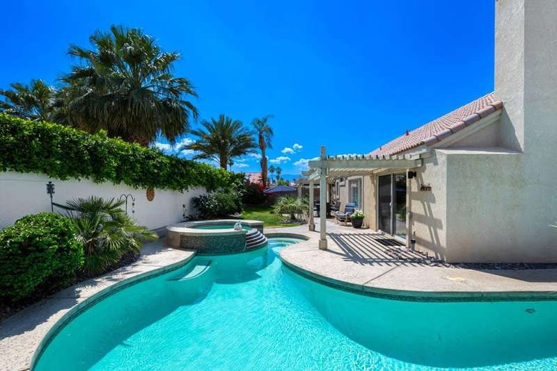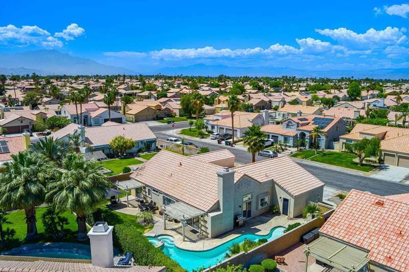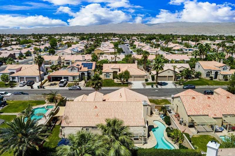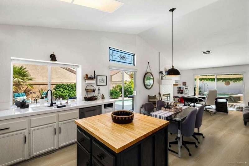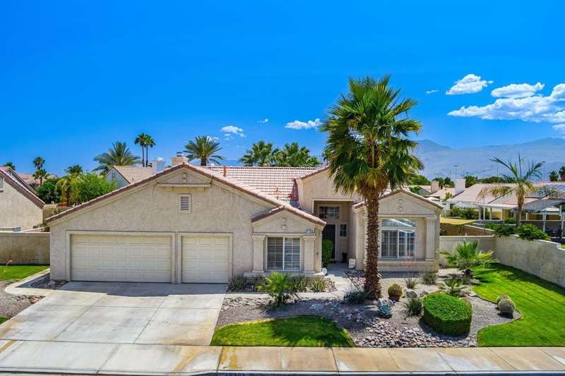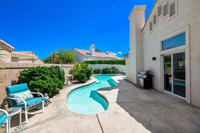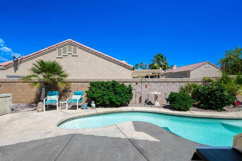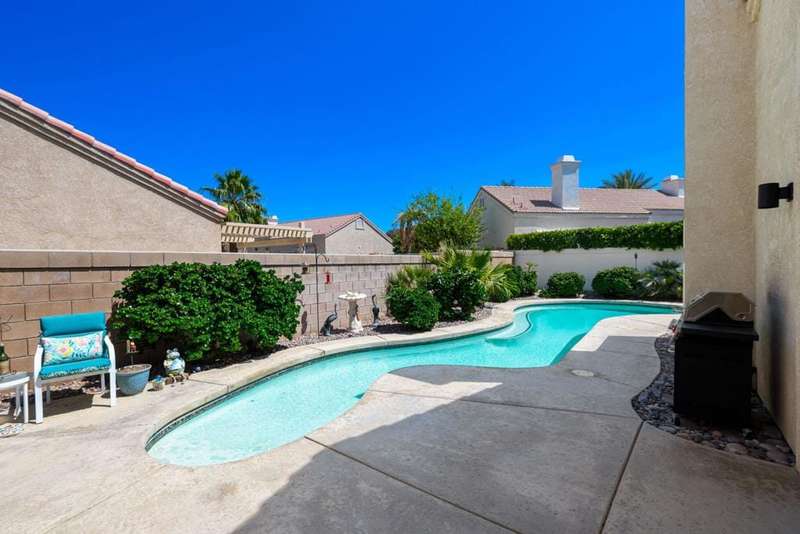 Welcome to your dream home in North La Quinta's sought-after Topaz community! This spacious 4-bedroom, 3-bathroom residence offers 2,060 sq ft of stylish living, featuring a beautifully upgraded kitchen and modernized bathrooms. Enjoy the desert lifestyle in the unique wrap-around pool, perfect for relaxing or entertaining. Situated on a quiet street in the heart of the neighborhood, this home is ideal as a full-time family residence or a serene desert retreat. With Amelia Earhart Elementary, John Glenn Middle, and La Quinta High School just a stone's throw away, this home offers both comfort and convenience in an unbeatable location.