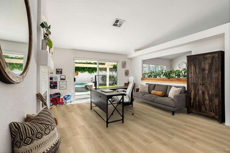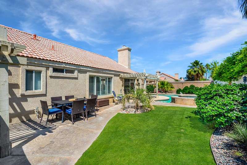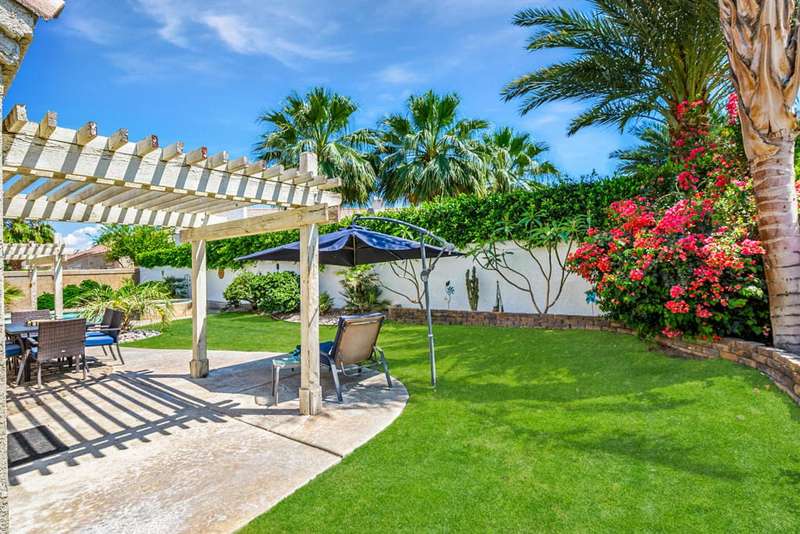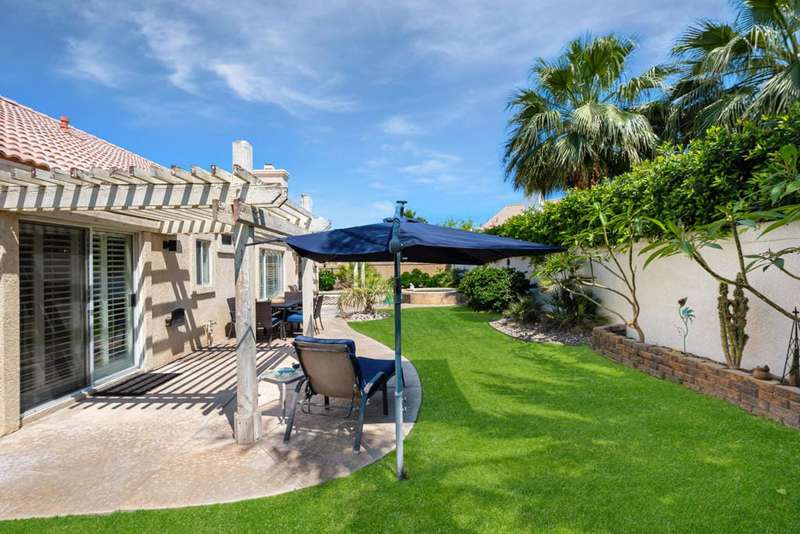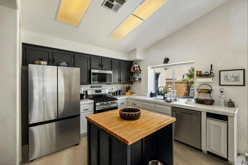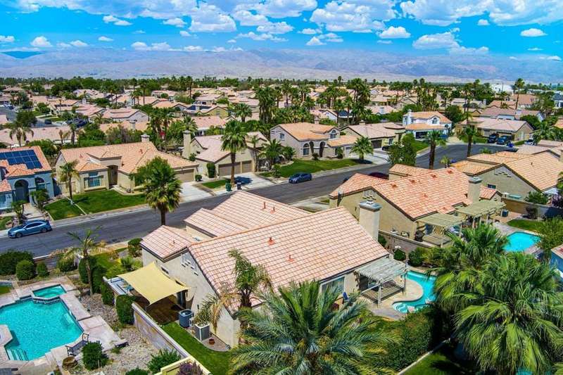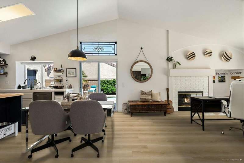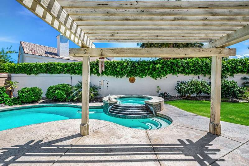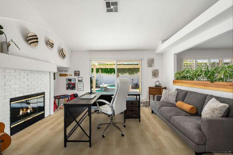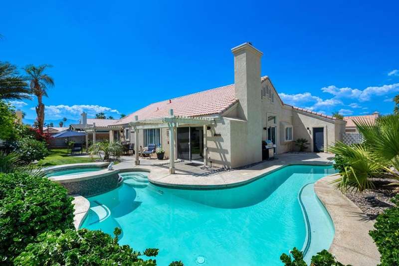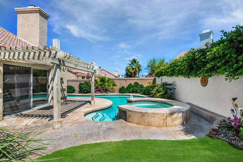 Welcome to your dream home in North La Quinta's sought-after Topaz community! This spacious 4-bedroom, 3-bathroom residence offers 2,060 sq ft of stylish living, featuring a beautifully upgraded kitchen and modernized bathrooms. Enjoy the desert lifestyle in the unique wrap-around pool, perfect for relaxing or entertaining. Situated on a quiet street in the heart of the neighborhood, this home is ideal as a full-time family residence or a serene desert retreat. With Amelia Earhart Elementary, John Glenn Middle, and La Quinta High School just a stone's throw away, this home offers both comfort and convenience in an unbeatable location.