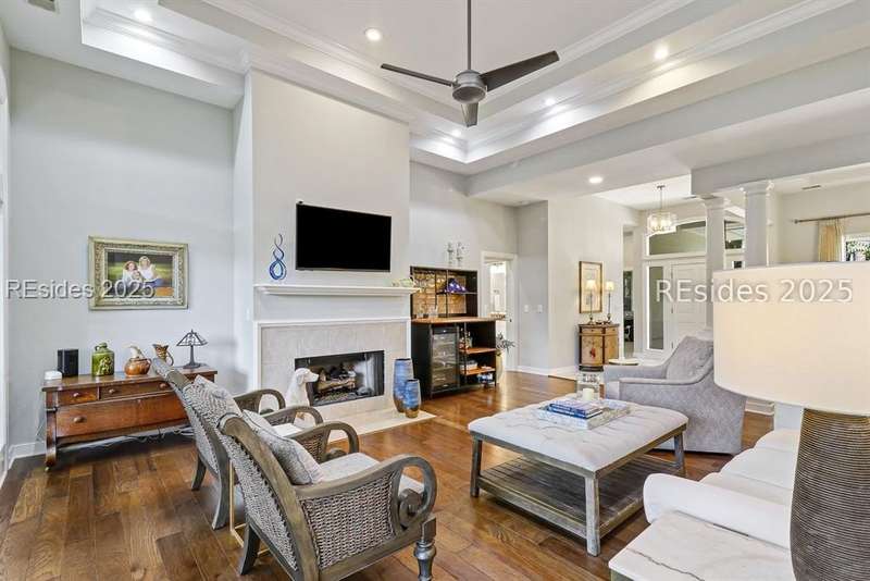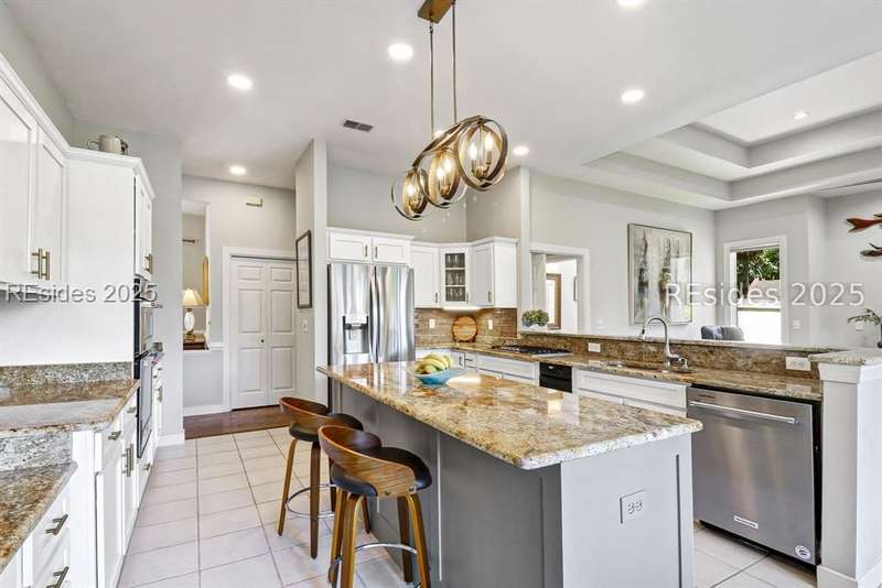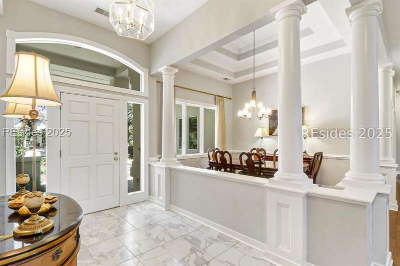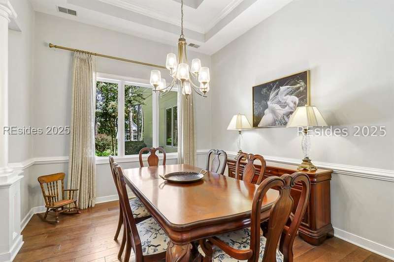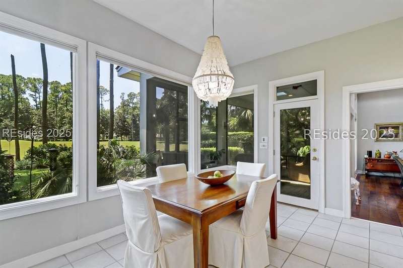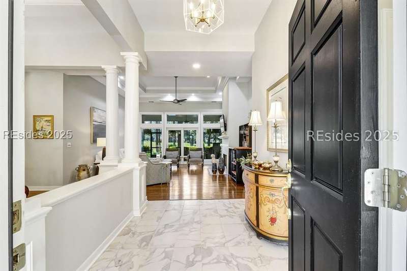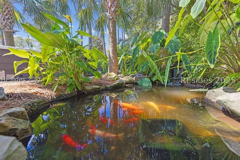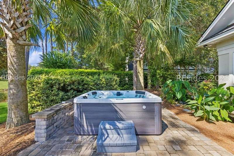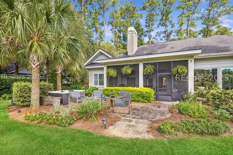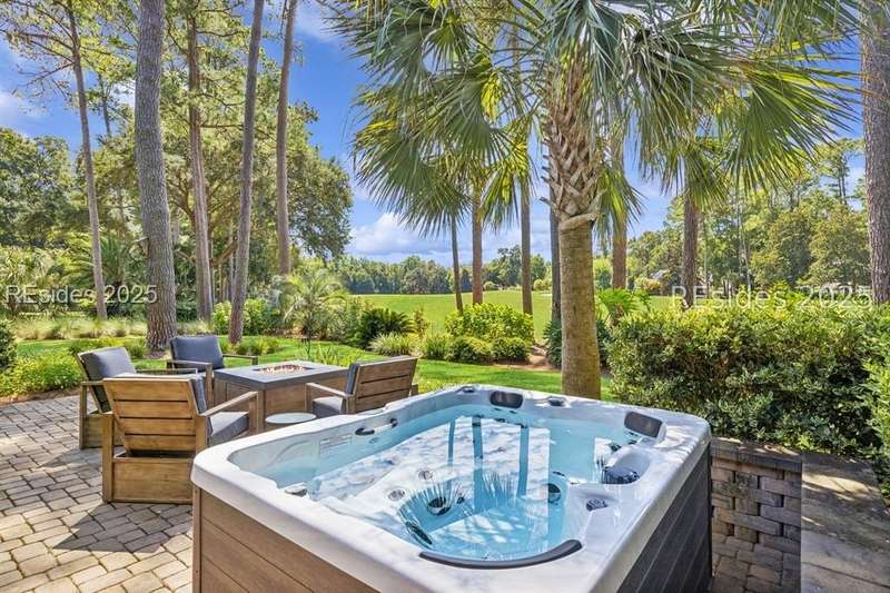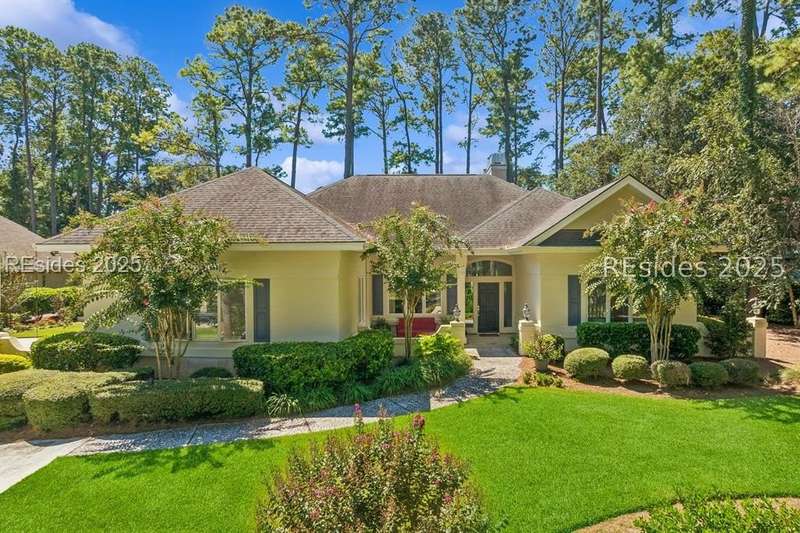 Set on a private, oversized homesite in one of Belfair's most desirable locations, this sun-filled residence offers quiet Lowcountry living with no cart path behind the home. Take in unobstructed views of Belfairs iconic West Course 7th hole from your screened porch or backyard oasis, featuring lush landscaping, paver patio, spa/hot tub, koi pond, and room for a pool. Inside, the open-concept design showcases hardwood floors and a beautifully appointed kitchen with gas range, double ovens, and a new refrigerator. The spacious family and breakfast rooms are framed by sweeping golf views, while dramatic accent lighting enhances both casual and formal gatherings. Additional highlights include a new HVAC system (Dec. 2024), a private well for irrigation, and thoughtful upgrades throughout. Offering a rare combination of privacy, views, and location, this Belfair retreat captures the very best of Lowcountry living.