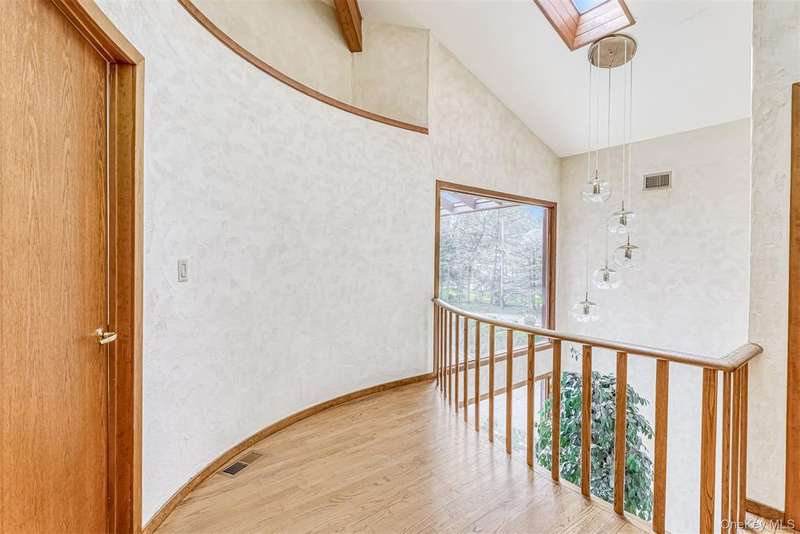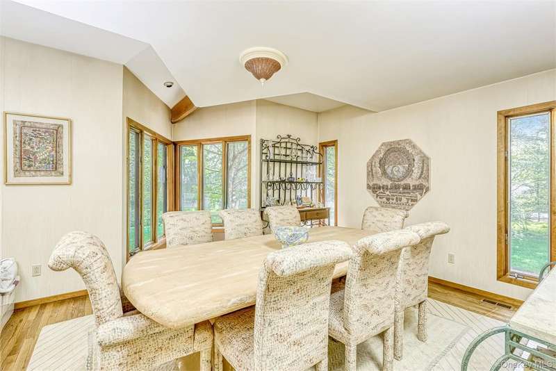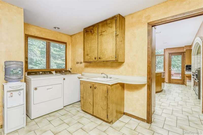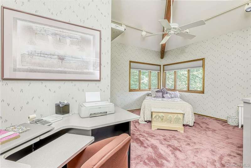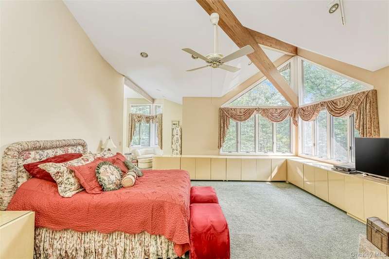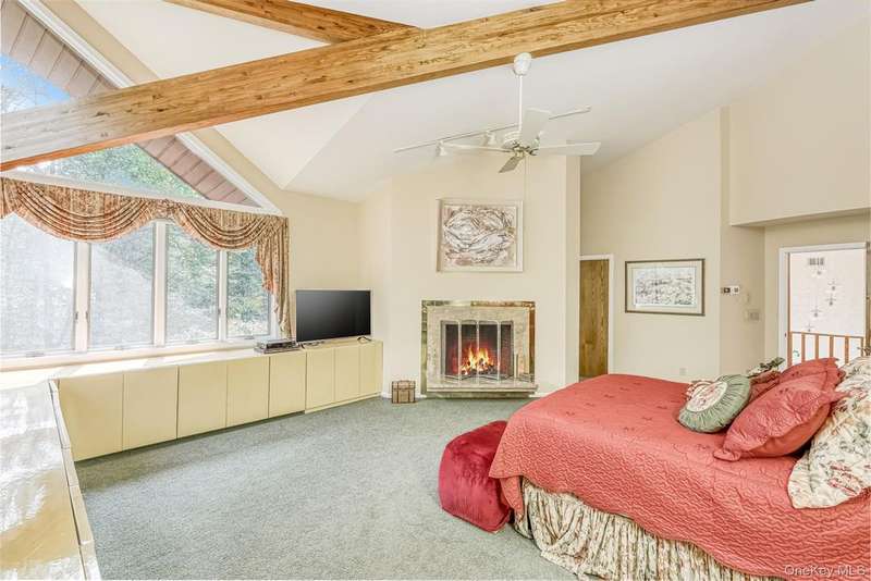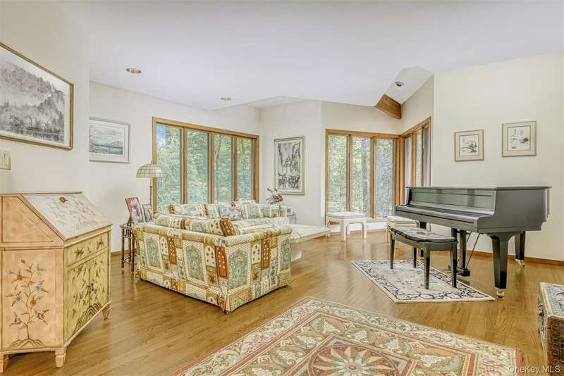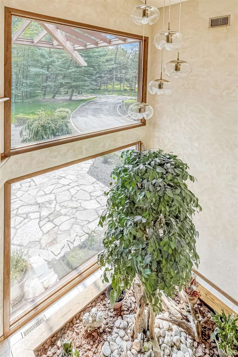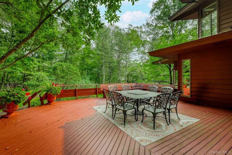 Stunning Mid-Century Modern Masterpiece ? Inspired by the iconic style of Frank Lloyd Wright, this home showcases timeless horizontal lines, an open floor plan, and seamless integration with the natural surroundings. Set on 1.84 acres of park-like property with a beautiful pond, this private retreat is located in the heart of New City with easy access to the Palisades Parkway. The dramatic sun-filled entry opens to 5 bedrooms and 4 baths, including an expansive primary suite with gas fireplace, spa-like bath with steam shower, and Jacuzzi tub. Walls of windows flood the chef's kitchen, breakfast area, and butler's pantry with light, framing serene backyard views. Enjoy multiple fireplaces?including one in the living room and a woodburning stove in the basement?plus a finished walk-out lower level featuring a home gym, billiard room, bedroom, full bath, cedar closet, storage room and private patio. Outdoor living is elevated with a wraparound deck, circular driveway, whole-house generator, and 2-car garage. Come visit and thoroughly enjoy this absolutely gorgeous home!