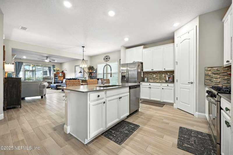 PRICE REDUCTION!!WELCOME TO YOUR DREAM HOME in one of Jacksonville's most desirable gated communities This impeccably maintained home combines privacy, security with thoughtful upgrades throughout. A brick paver entry & lush landscaping create a beautiful first impression. Inside, warm tones & abundant natural light highlight the gray wood-look tile flooring, offering both modern style & easy-care living. The spacious gourmet kitchen features white cabinetry, a center island with bar seating, under-cabinet lighting, stainless steel appliances & a GAS range - perfect for both everyday living & entertaining. The open concept family room flows seamlessly to the screened & fenced backyard. The split floor plan provides privacy for guests, while the oversized primary suite includes a spa-like bath with double sinks, a garden tub & a separate shower. Two additional bedrooms are equally inviting. Red Hawk is an intimate community of just 144 homes with a gated entrance, pool, playground & resident's club. Ideally located near the Intracoastal West, St. John's Town Center, beaches, I-295 & shopping. Additional highlights: TERMITE BOND WITH B&B EXTERMINATING, detailed improvements list available in Documents. This home shows like new & has been lovingly cared for. Schedule your showing today!